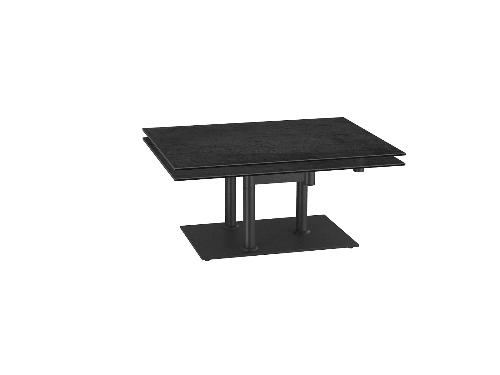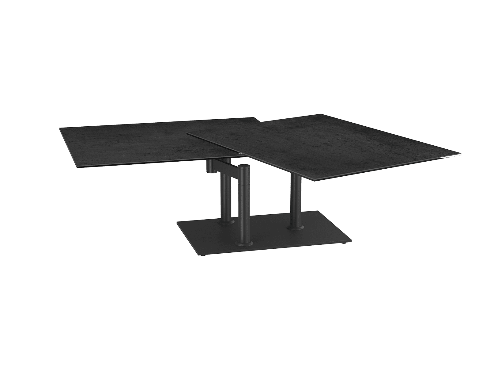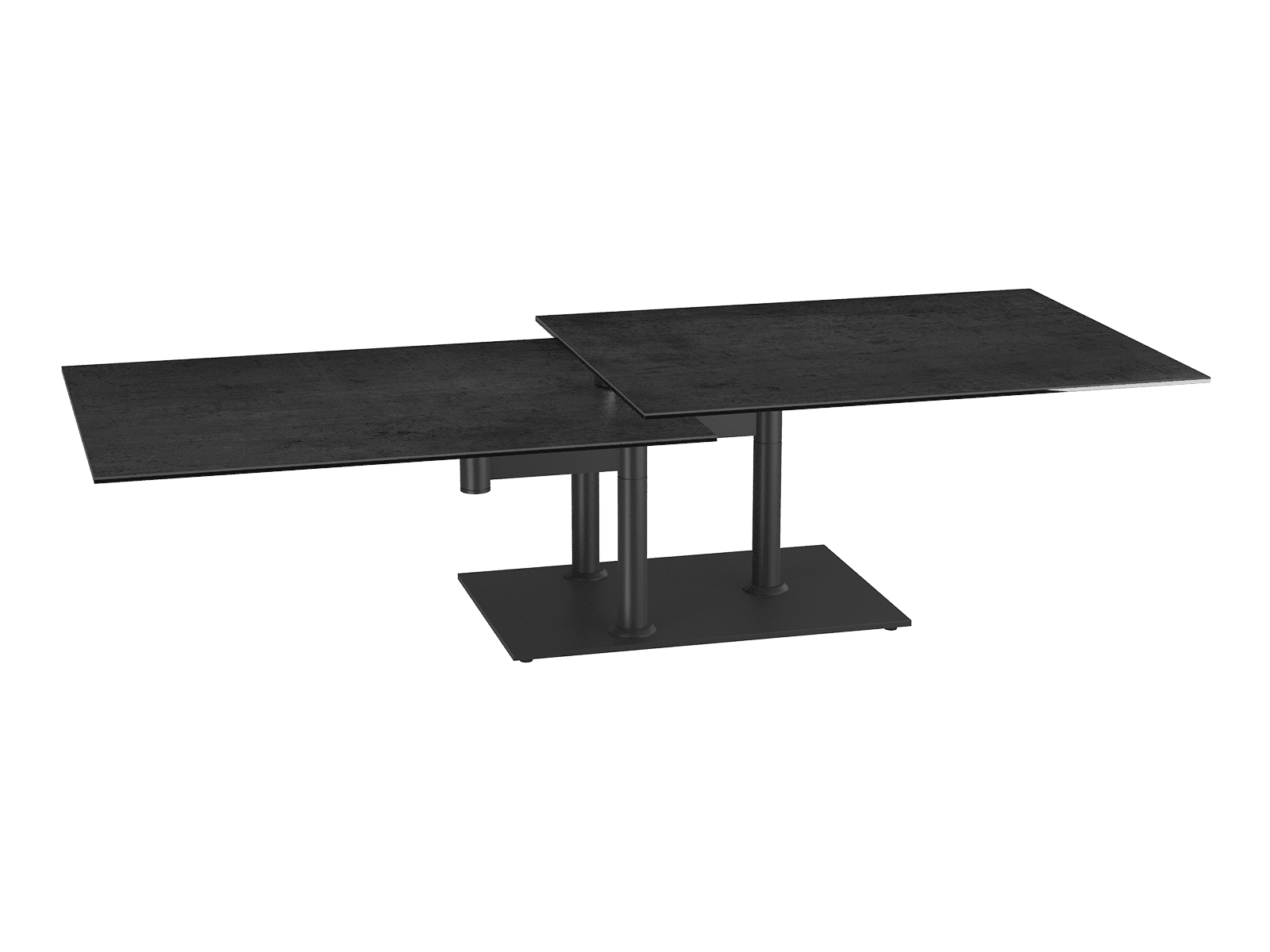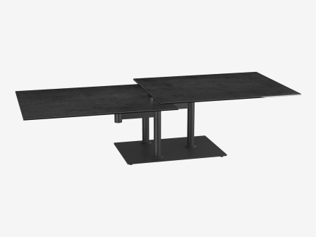 La table basse amovible Opera est originale et moderne grâce à ses deux plateaux en céramique titane. Ses deux plateaux ont un mécanisme synchronisé, ce qui permet une multitude de configurations. La base de cette table Opera est en tôle d'acier épaisse afin de lui conférer une excellente stabilité. Ses plateaux sont en céramique de 3mm collée sur un vitrage de 6mm ce qui renforce la résistance des plateaux aux chocs de la vie quotidienne.