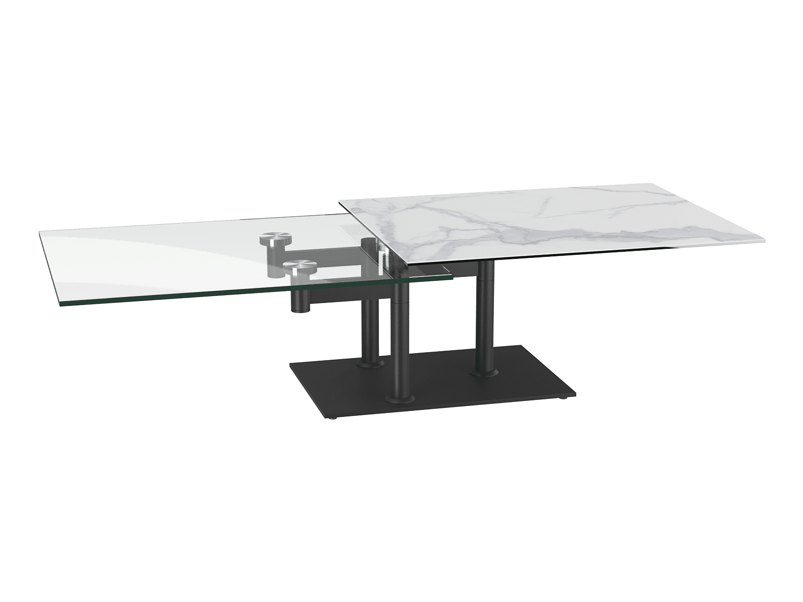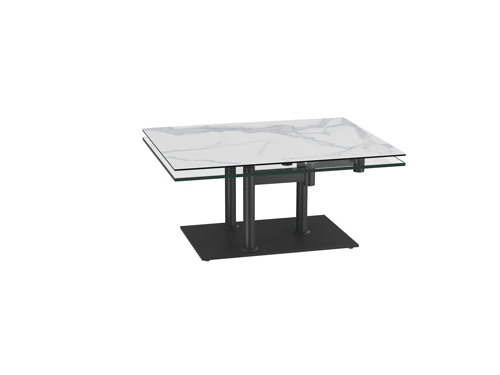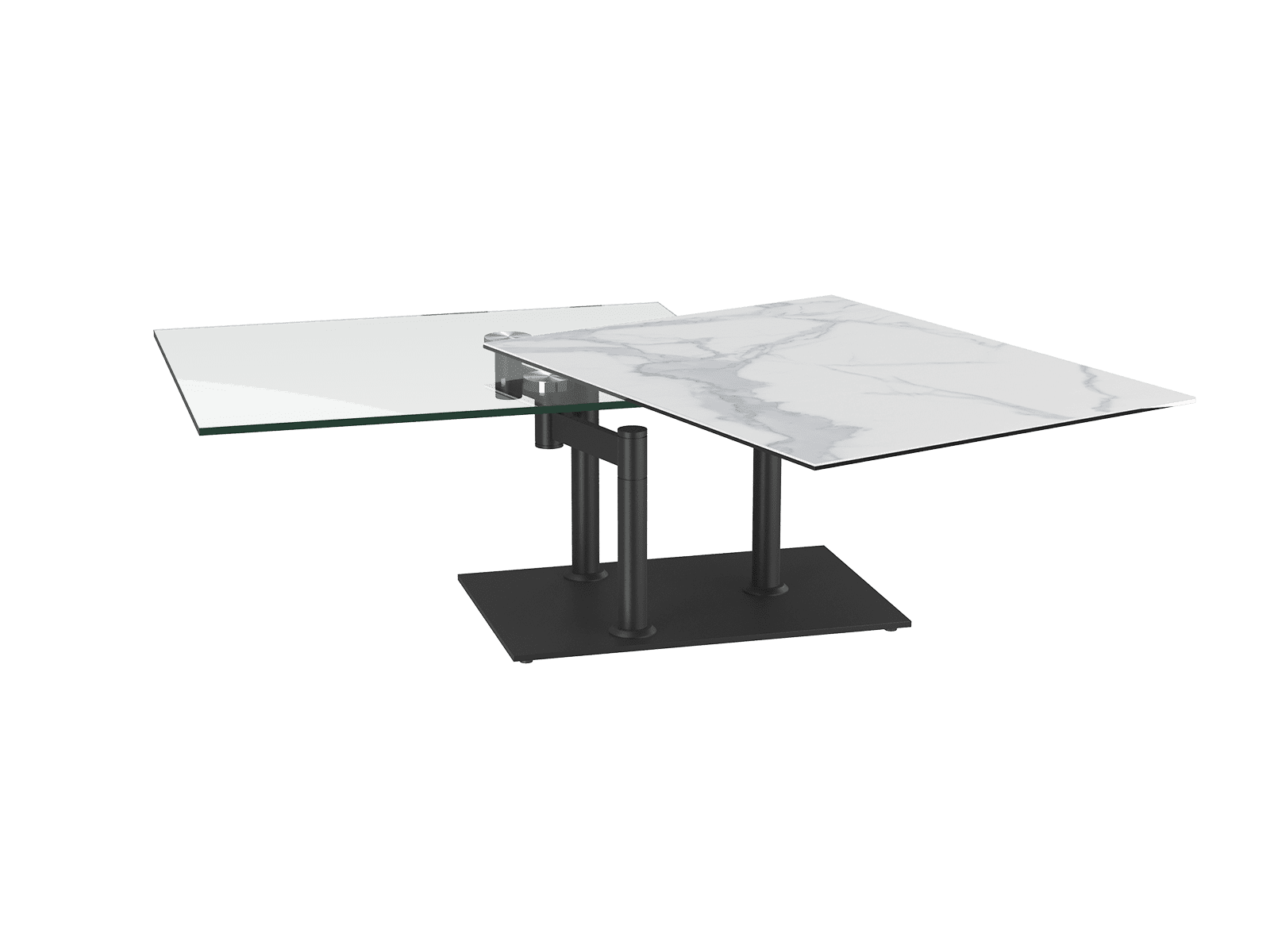 Akante vous propose une table basse avec un design aérien : Opera ! Grâce au mécanisme synchronisé de ses deux plateaux en verre et en céramique marbré mat, Opera permet à ses utilisateurs une multitude de configurations.