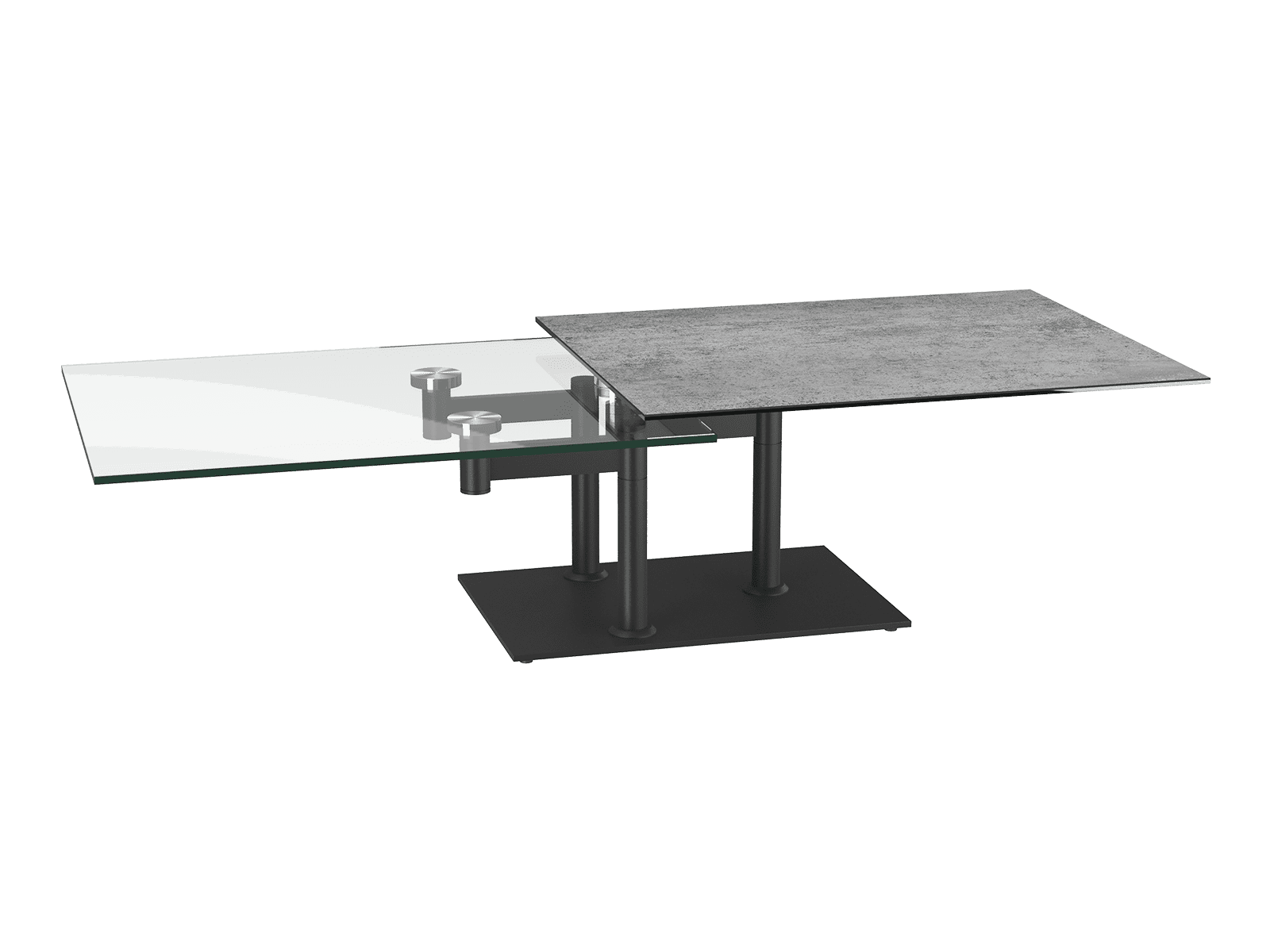 Moderne et fonctionnelle, la table basse Opera en céramique Silver surprendra vos invités par son mécanisme synchronisé qui vous permet d’obtenir la configuration de table que vous souhaitez. Le plateau supérieur est en céramique de 3 mm d’épaisseur et est collé sur un vitrage de 6 mm pour une résistance à toute épreuve. Le plateau inférieur est en verre trempé de 10 mm.