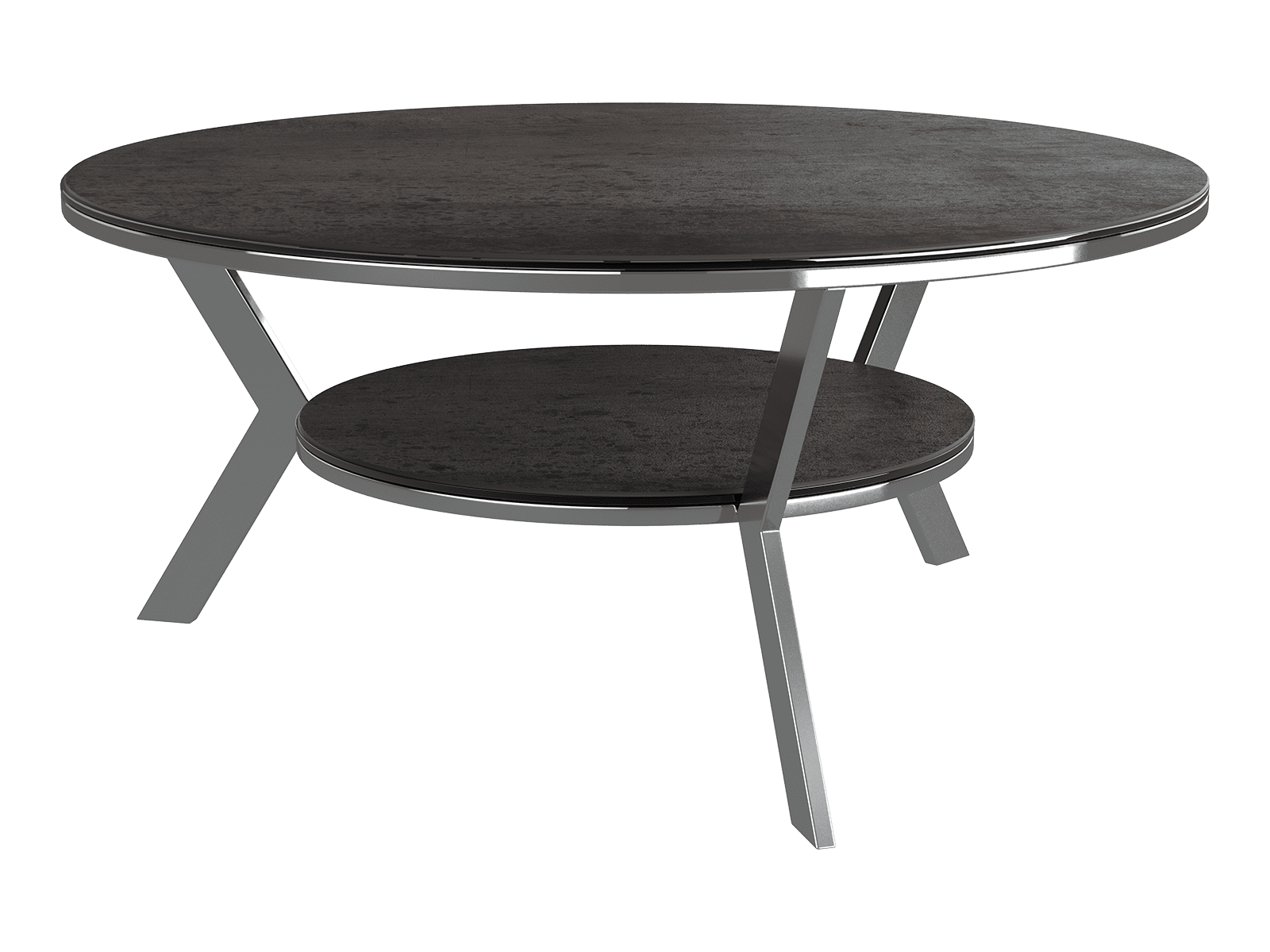 Akante vous propose d'optimiser votre rangement grâce à la table basse Ellipse et ses deux plateaux en céramique acier. Ellipse a une structure ronde de 90 cm en acier inoxydable poli qui lui donne un bel effet miroir et brillant.