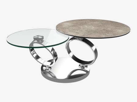 Découvrez la table basse EOLIA en céramique argile et verre. La table basse est articulée avec un mécanisme de rotation synchronisée. Pratique et esthétique sa fonctionnalité répond à vos besoins du quotidien. La base est en acier chromé pour un design chic et épuré. Le plateau supérieur est en céramique argile collé sur un vitrage de 6mm et le plateau inférieur en verre trempé de 10 mm.