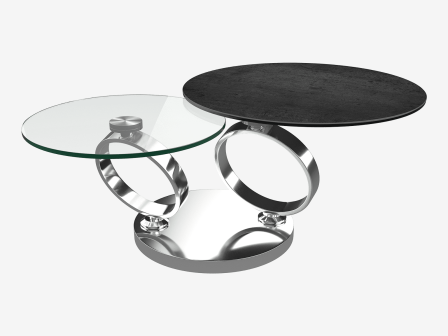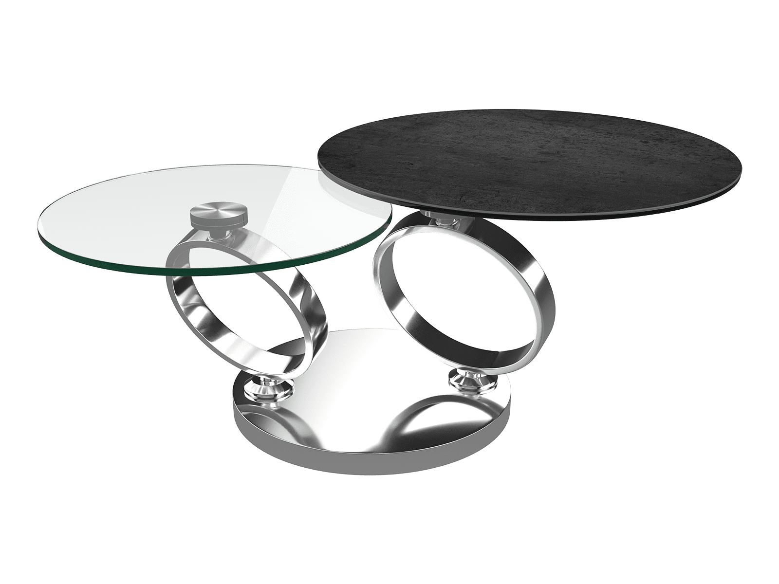 La signature d'Akante : la céramique titane. Découvrez la table basse EOLIA avec son plateau supérieur en céramique titane de 3 mm collé sur un vitrage de 6 mm. Son plateau inférieur est en verre trempé et mesure 10 mm. Les 2 anneaux permettent à la table EOLIA de se déployer de façon synchronisé ce qui vous procure un meuble ànla fois pratique et esthétique.