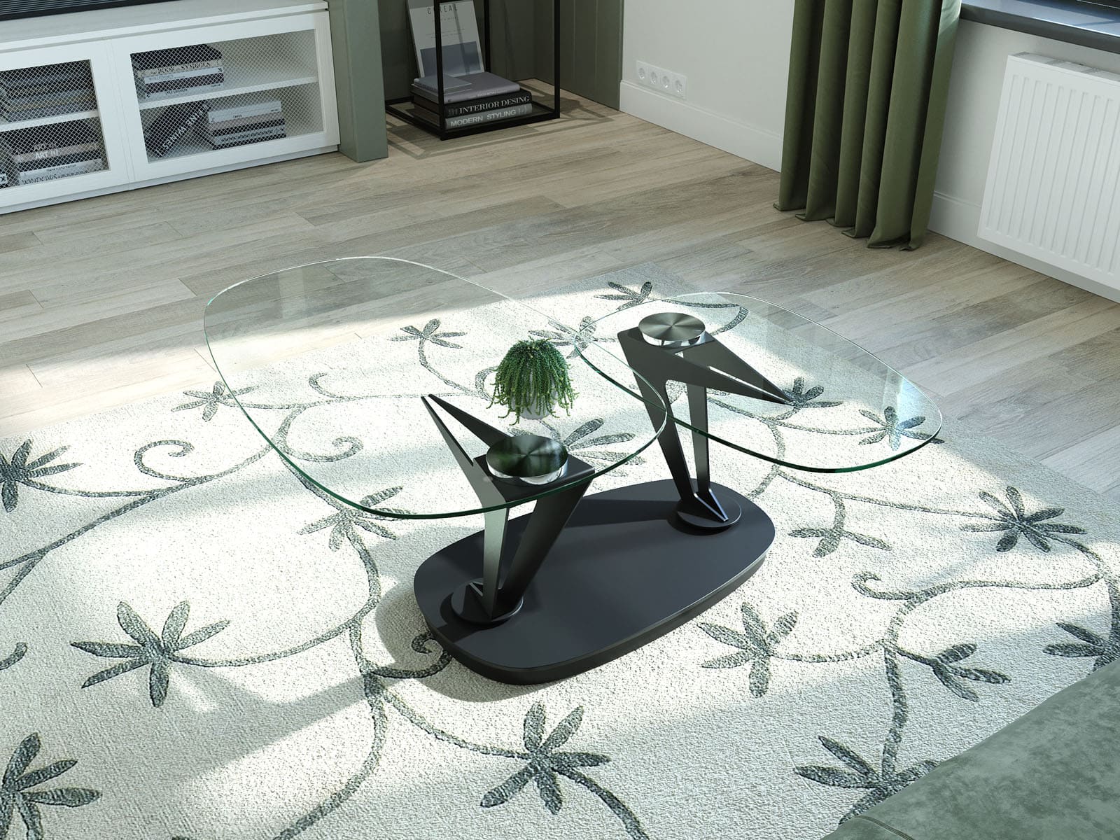 EXCLUSIVITE DU RESEAU CUIR CENTER EN FRANCE. Osiris est aussi ingénieuse que raffinée avec ses deux plateaux rotatifs en verre trempé de 10 mm d’épaisseur. Facile d’entretien, elle partagera merveilleusement votre quotidien grâce à son système synchronisé. Vous pouvez agrandir votre table en faisant pivoter ses plateaux. Vous passerez alors d’une petite table basse de 95 cm à une grande table de salon de 163 cm de longueur. Son piétement ajouré en acier laqué noir mat lui offre autant d’élégance que de design. Osiris habillera parfaitement tout type de décoration contemporaine. Cette table basse existe avec un plateau supérieur en céramique. Les plateaux pivotent à 360°