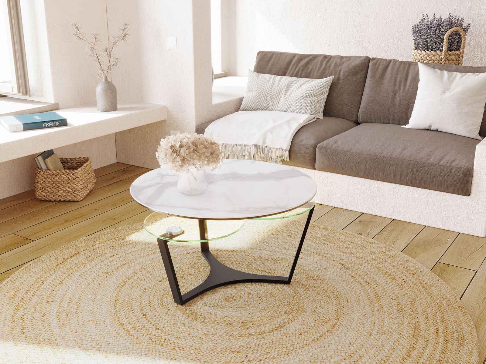 Laissez-vous charmer par cette table basse Safran qui combine la céramique et le verre. Elle dispose de trois plateaux pouvant se déployer pour atteindre une longueur maximale de 115 cm. La céramique marbre de chez AKANTE illuminera votre espace par son blanc. Elle peut s’adapter aux petits comme aux grands espaces grâce à la mobilité des plateaux. Le piétement en acier peinture noire époxy mesure 43 cm de hauteur vous donnant la possibilité de la placer un peu partout selon vos envies.
