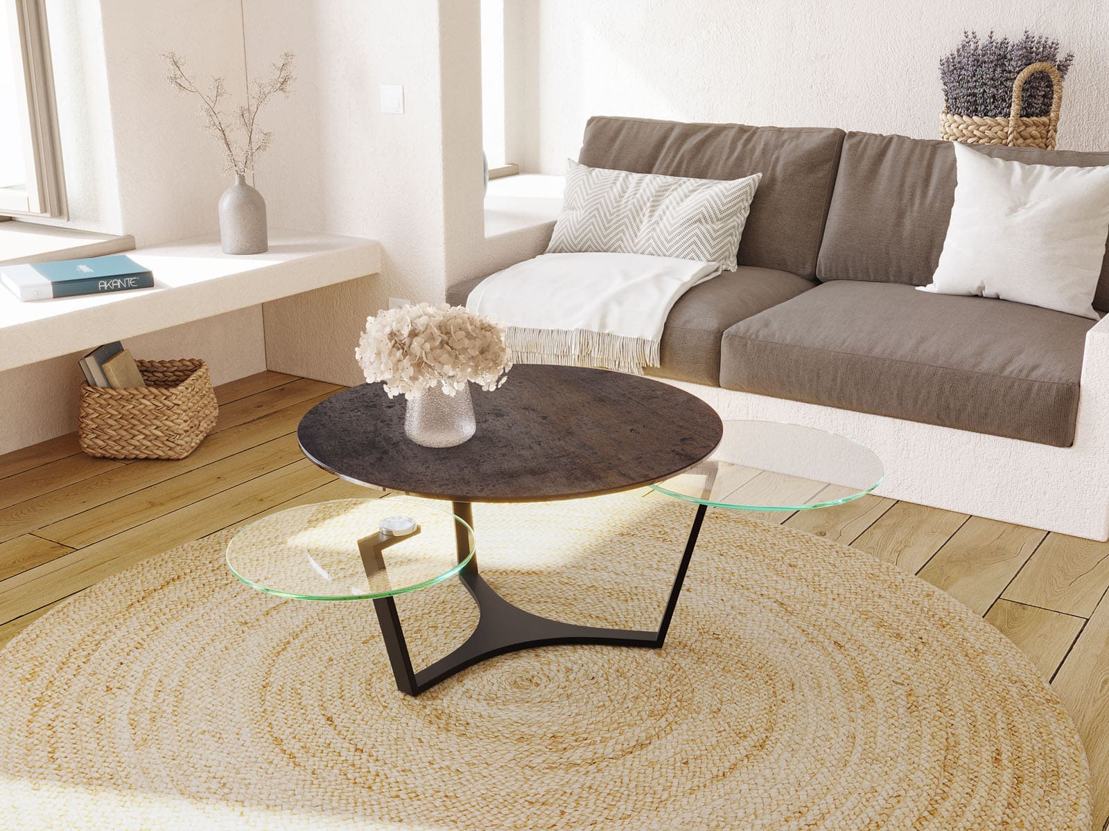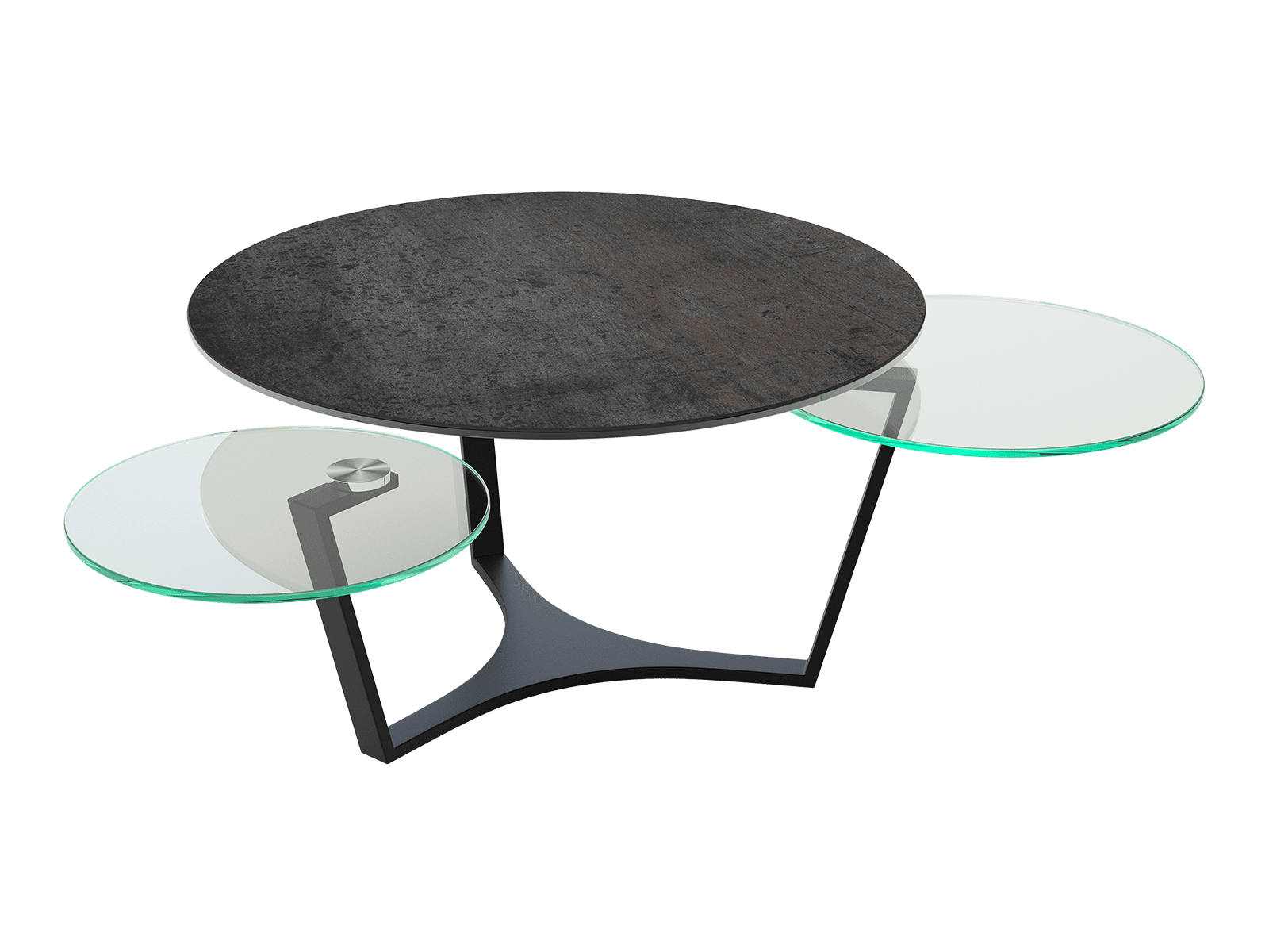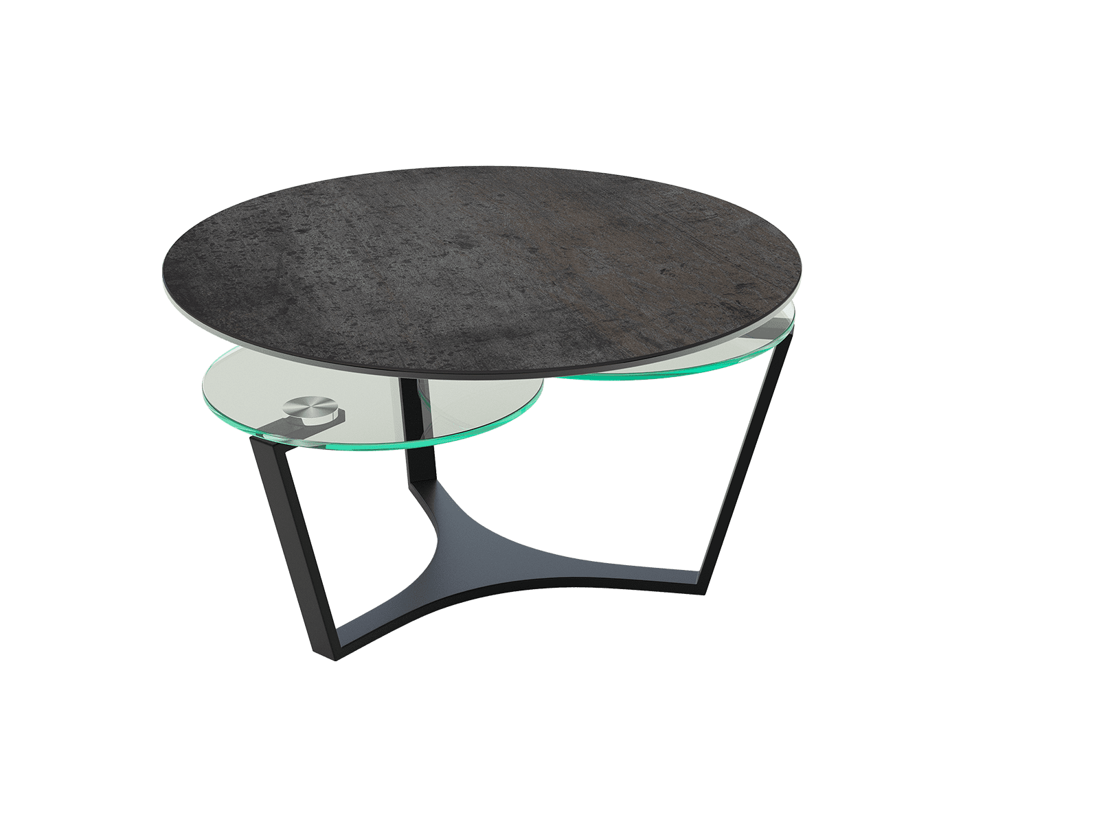 La table basse Safran représente l’élégance et la fonctionnalité à l’état pur. Elle vous propose une combinaison entre un plateau supérieur en céramique et deux petits plateaux inférieurs en verre. La céramique couleur acier mesure 3 mm d'épaisseur collée sur un vitrage de 6 mm. La mobilité des plateaux vous donne la possibilité de changer l’apparence de votre table selon vos envies. Le piétement original en acier peinture noire époxy, mesure 43 cm de hauteur. Il apporte stabilité et esthétisme à la table basse Safran.