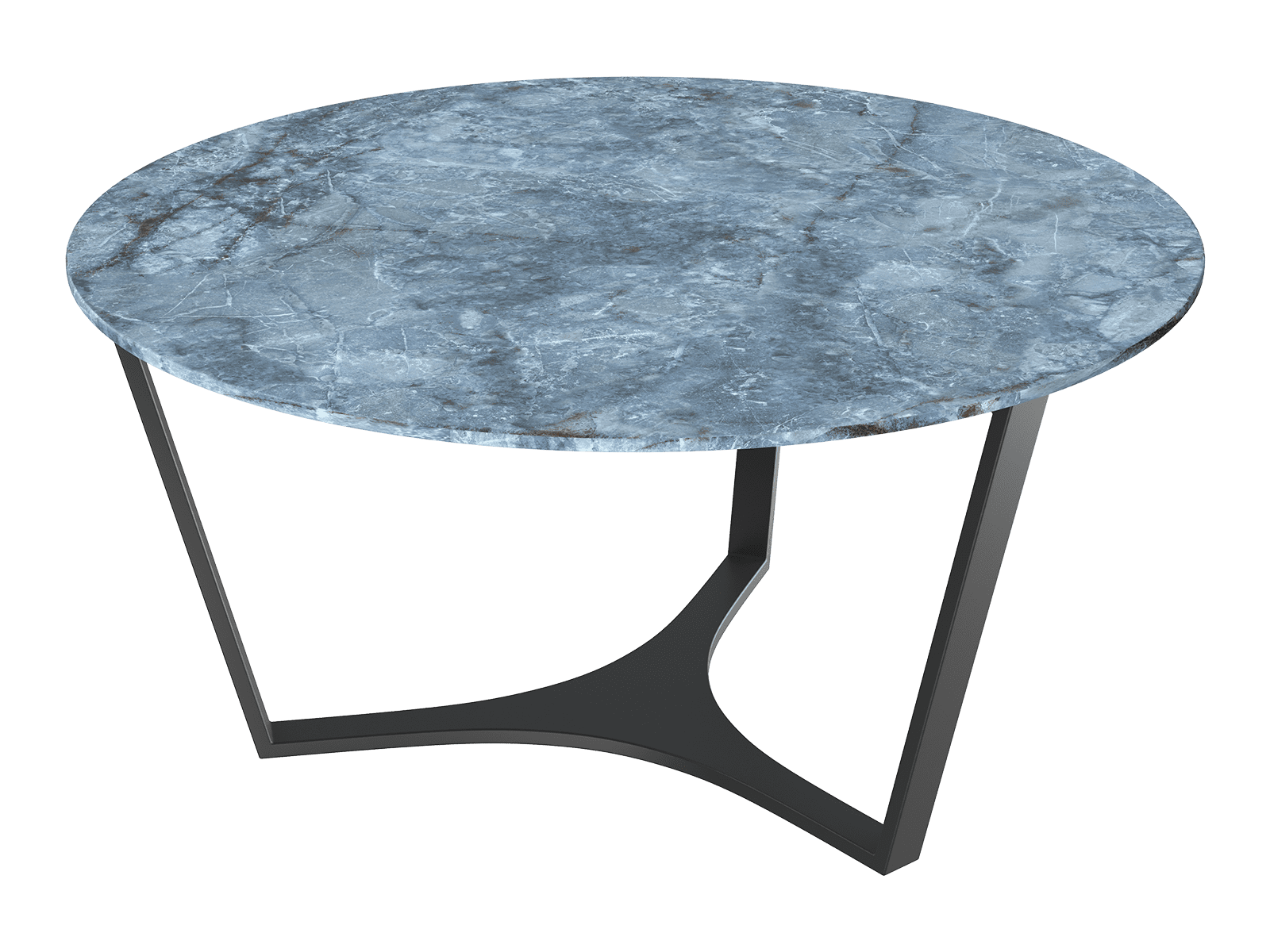 La table Valentina en céramique marbre Onyx bleu marque les esprits avec sa couleur étincelante. Élégante et lumineuse, elle rayonne dans la pièce et habille votre décoration de gaieté. La céramique est pleine masse et mesure 11 mm d’épaisseur. Elle s’accompagne de pieds en acier laqué noir mat, et ses allures rectilignes contrastent avec la rondeur du plateau. Découvrez le bout de canapé de la même gamme pour être assorti à votre table basse.