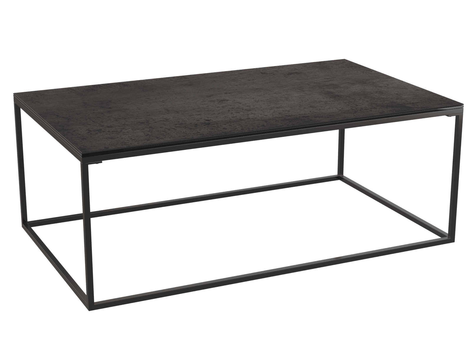 Retrouvez Julia tout en sobriété et élégance, avec son plateau en céramique acier et sa structure de 110 x 65 cm en acier noir époxy.