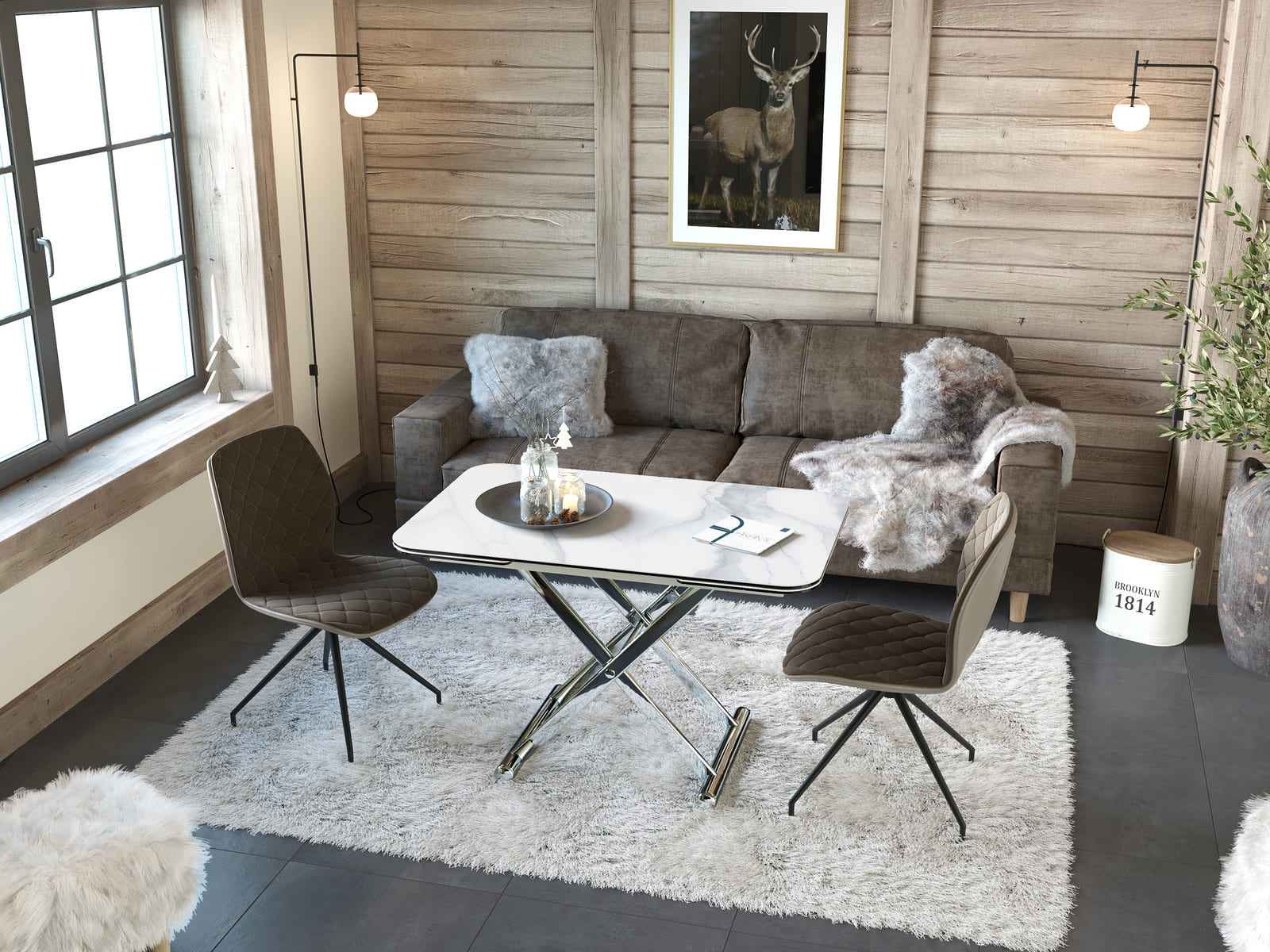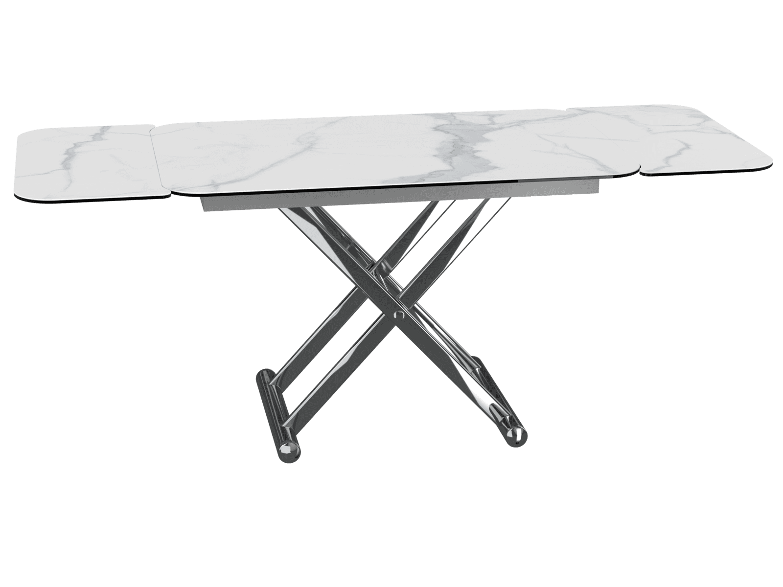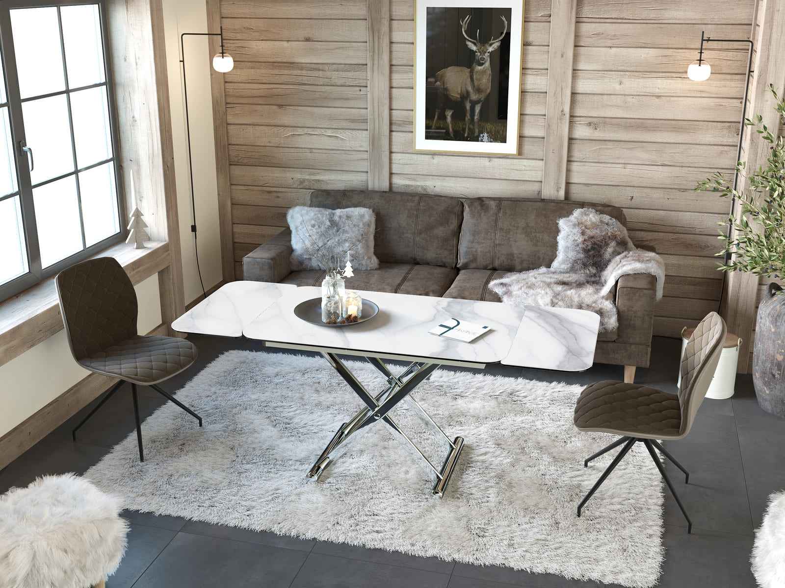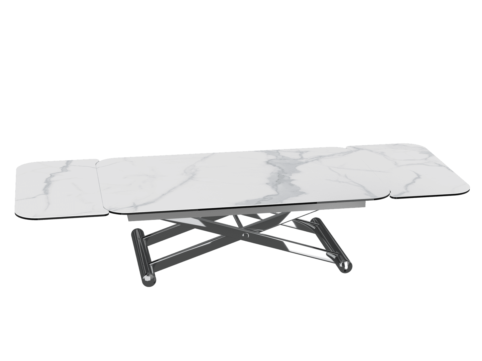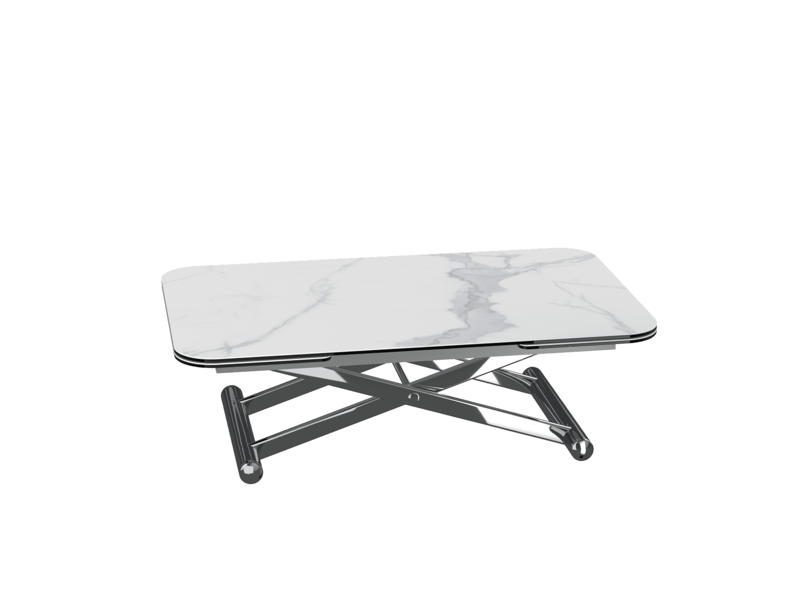 Découvrez la table basse Enora, extensible et relevable. Longue de 120 cm, elle s’allonge à 190 cm une fois ouverte. De plus, elle s’élève jusqu'à 82 cm de hauteur, pouvant ainsi servir de table de repas. Elle dispose également de roulettes ce qui facilitera son utilisation. Son plateau en céramique marbre mat lui prête un style design et décalé. Grâce à son traitement anti-traces de doigt, Enora est très simple à entretenir.