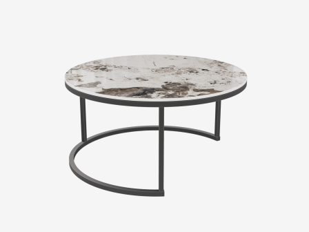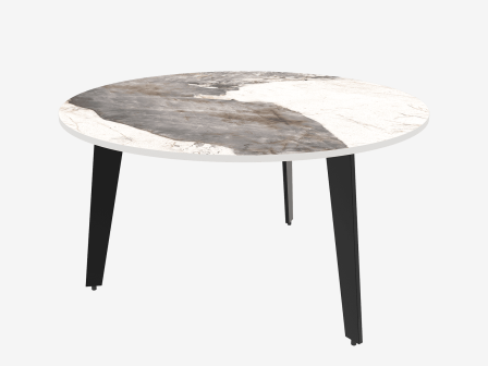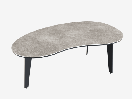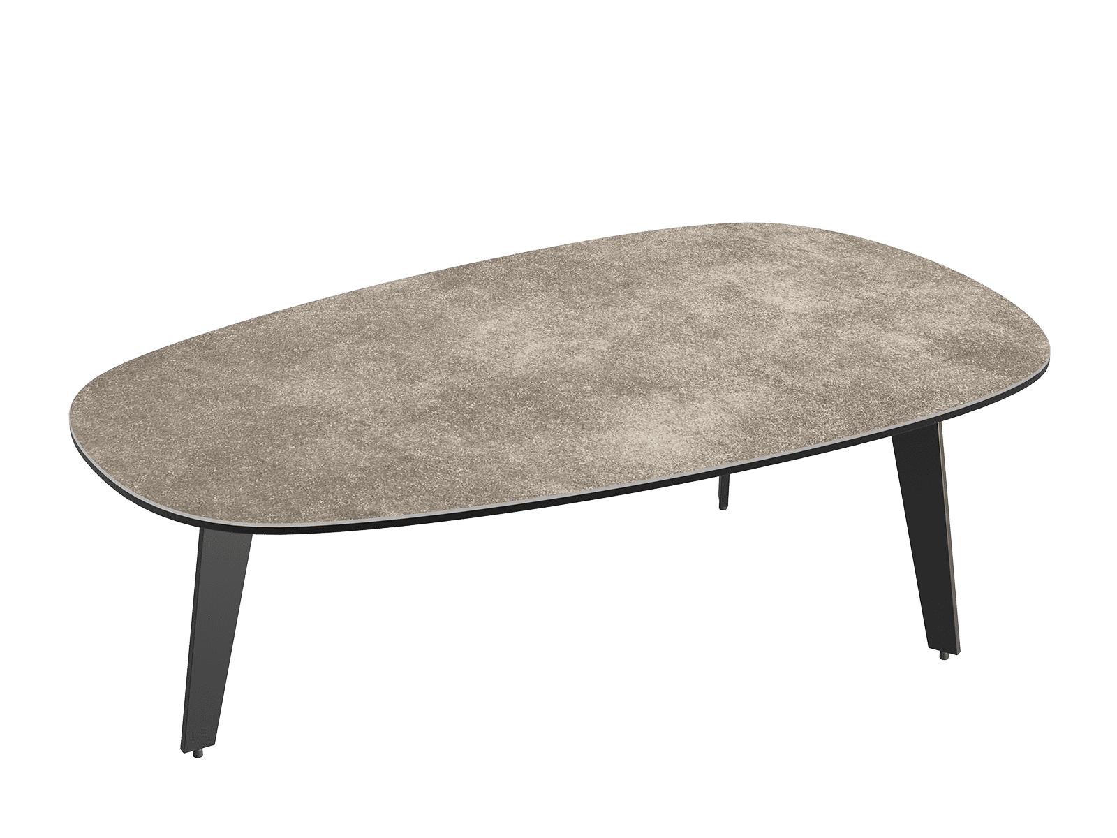 La nouveauté Akante : la table basse Galice. Avec ses allures qui rappellent la table Galet, son plateau est plus grand et permet donc de gagner du volume. Le plateau est en céramique argile de 3 mm et est collée sur un vitrage de 6 mm. Les pieds de la table sont en acier laqué noir mat.