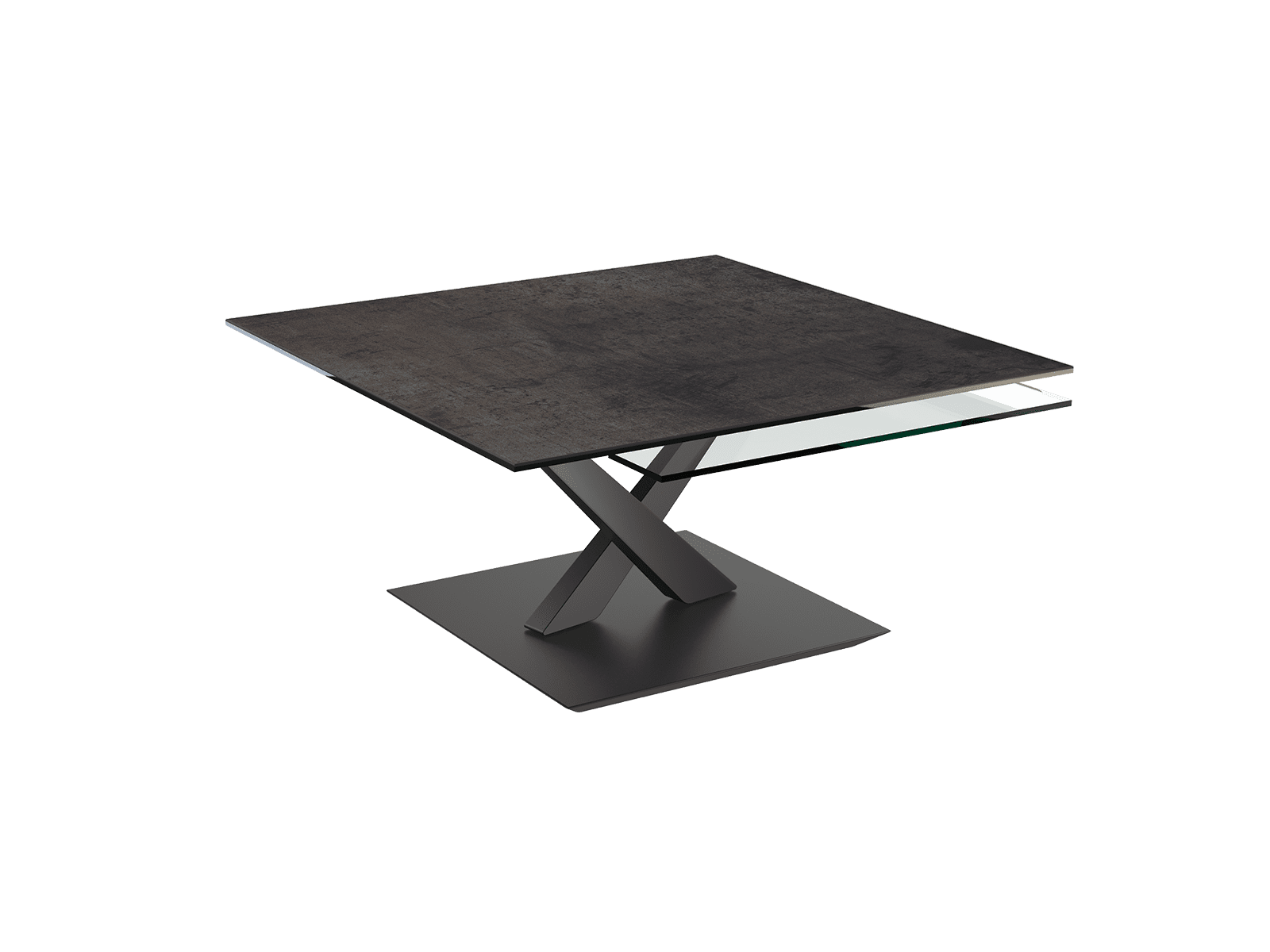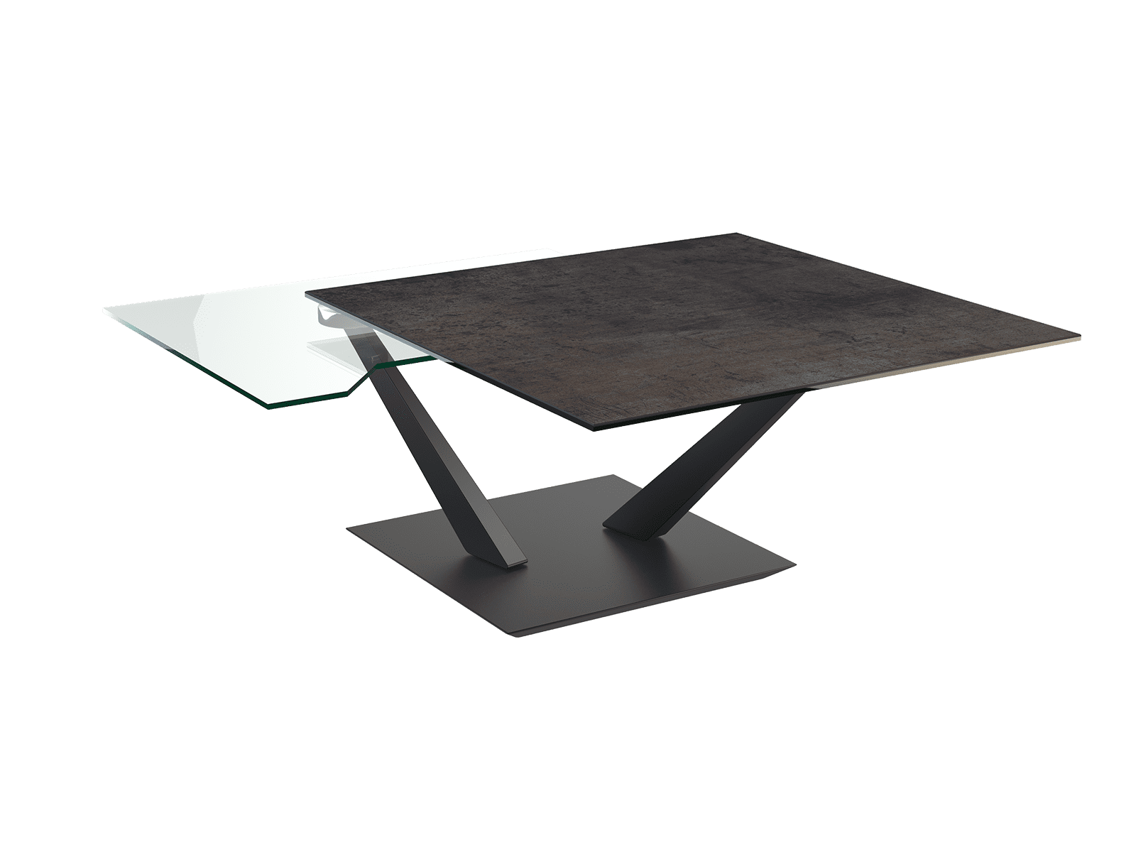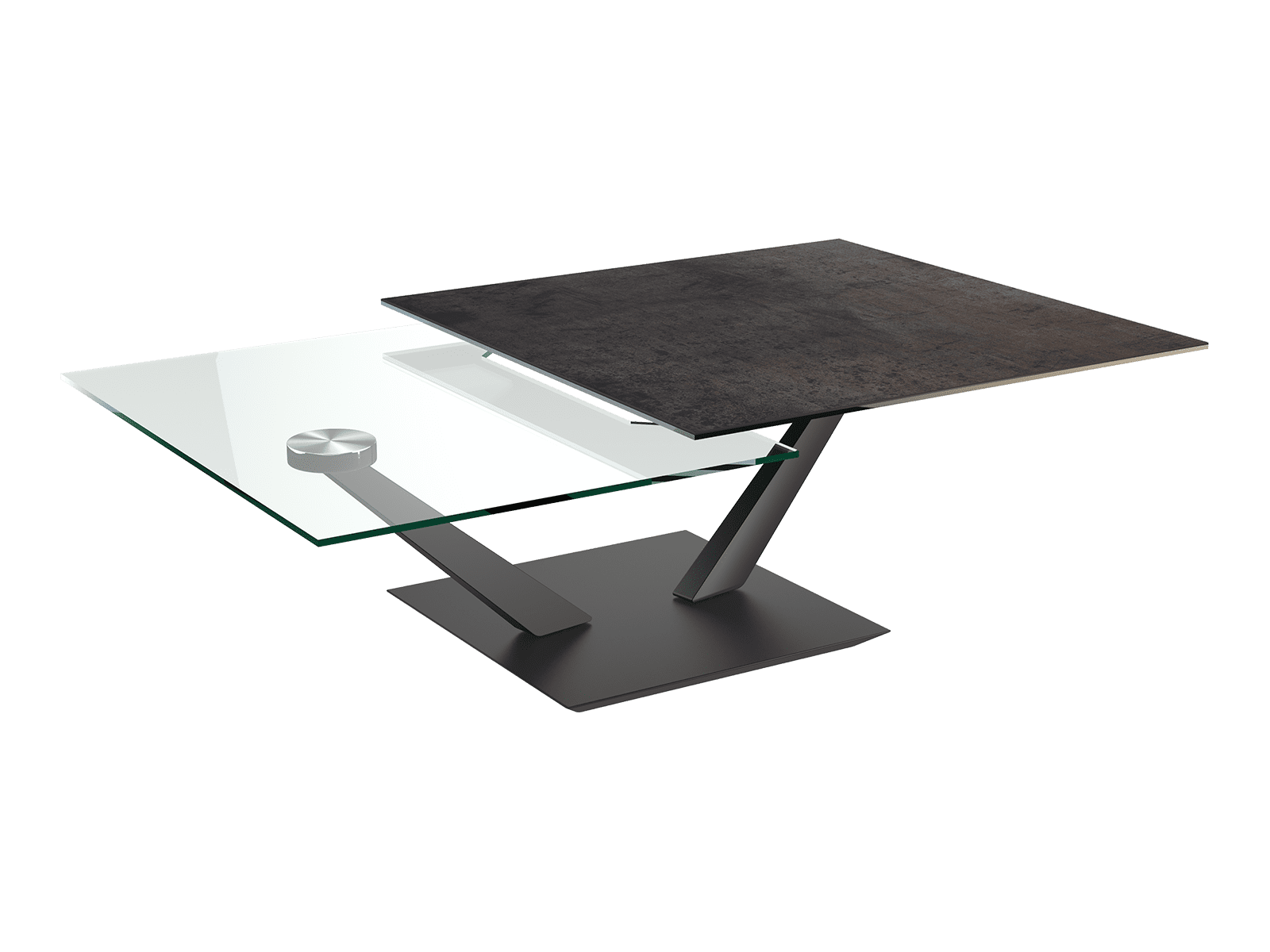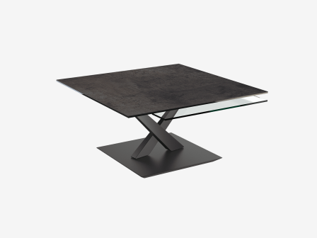 La table basse Granada offrira à votre espace intérieur une touche de modernité. La céramique acier créera une ambiance cosy et conviviale. La céramique fait 3 mm d’épaisseur et est collée sur un vitrage de 6 mm. Son design fonctionnel et polyvalent pourra s’intégrer dans n’importe quel espace de vie. Grâce aux plateaux pivotants permettant à la table basse d’atteindre une longueur de 127 cm, chacun trouvera sa place autour. Mixer le verre et la céramique offre un air actuel. Le piétement est en acier laqué noir et vous permet de personnaliser la disposition des plateaux.