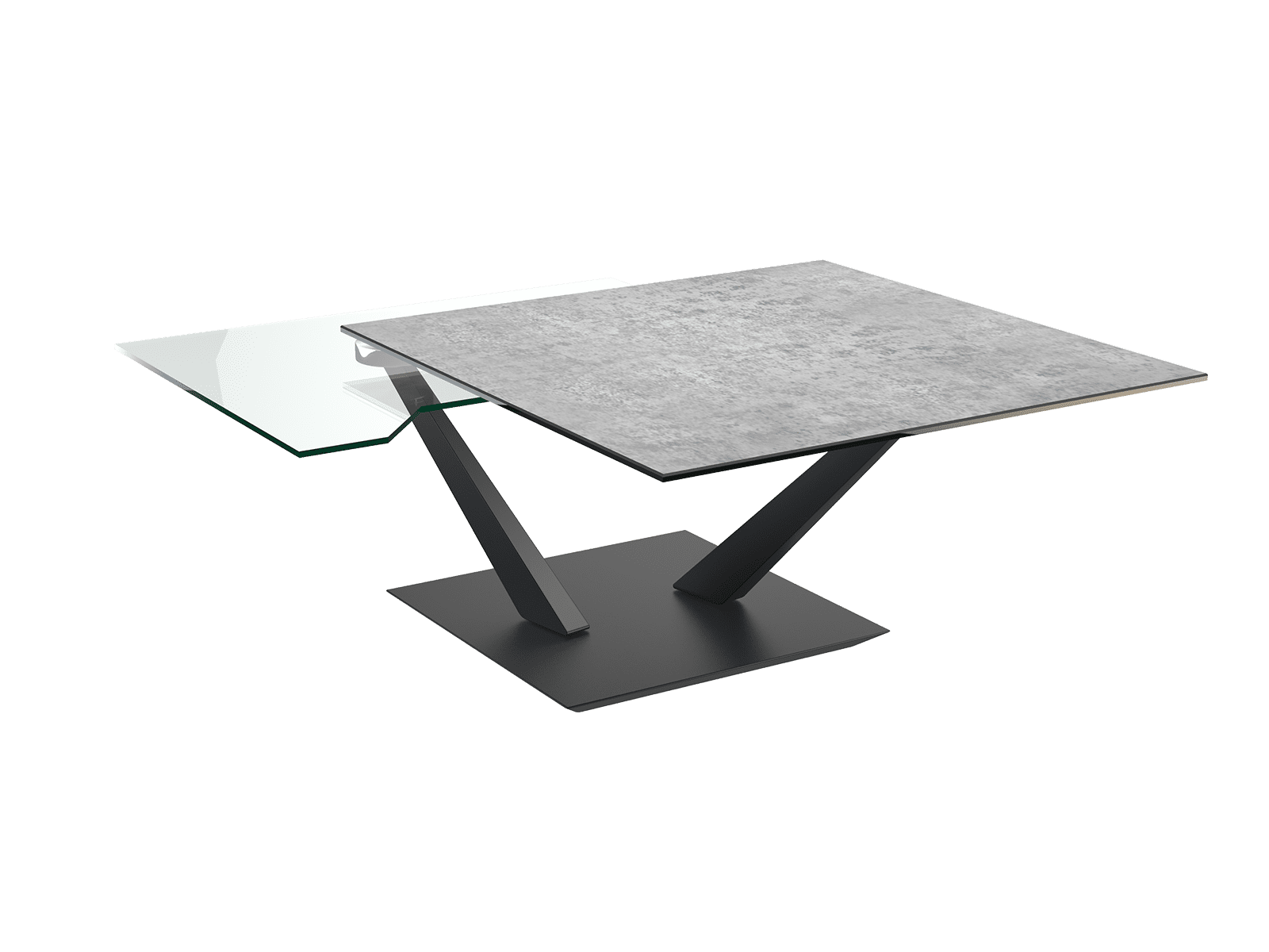 Offrez-vous un meuble au design moderne et pratique. Pas seulement décorative, la table basse Granada est tout aussi fonctionnelle grâce à ses deux plateaux pivotants. Granada mixe les différents matériaux avec un plateau en verre et un autre en céramique qui mesure 3 mm d’épaisseur et est collé sur un vitrage de 6 mm. La mixité apporte de l’originalité et de l’élégance à la table basse Granada. Pour plus de surface, le piétement permet de faire pivoter les plateaux leur permettant d’atteindre 127 cm de longueur. Un atout essentiel pour recevoir aisément vos invités. Le piétement est en acier laqué noir mat et mesure 40 cm de hauteur.
