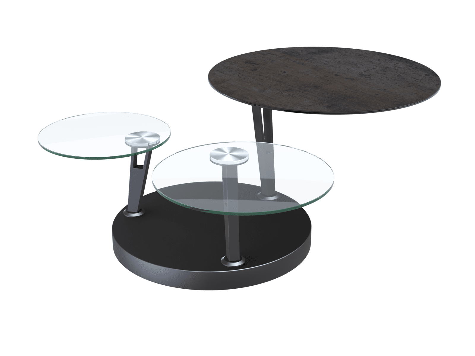 Optez pour une table qui allie parfaitement le verre, l’acier et la céramique. Dahlia, c’est une table basse articulée composée de 3 plateaux : deux en verre trempé de 10 mm d’épaisseur et un plateau supérieur en céramique Acier. Ce dernier est façonné à partir d’une céramique de 3 mm d’épaisseur collée sur un verre de 6 mm. Pratique et chic, cette table vous permet de régler la position des plateaux comme bon vous semble et d’agrandir la longueur de la table qui peut s’étendre jusqu’ 132 cm de diamètre. Vous serez également conquis par le piètement en acier laqué noir mat dont la forme est identique à celle des plateaux.