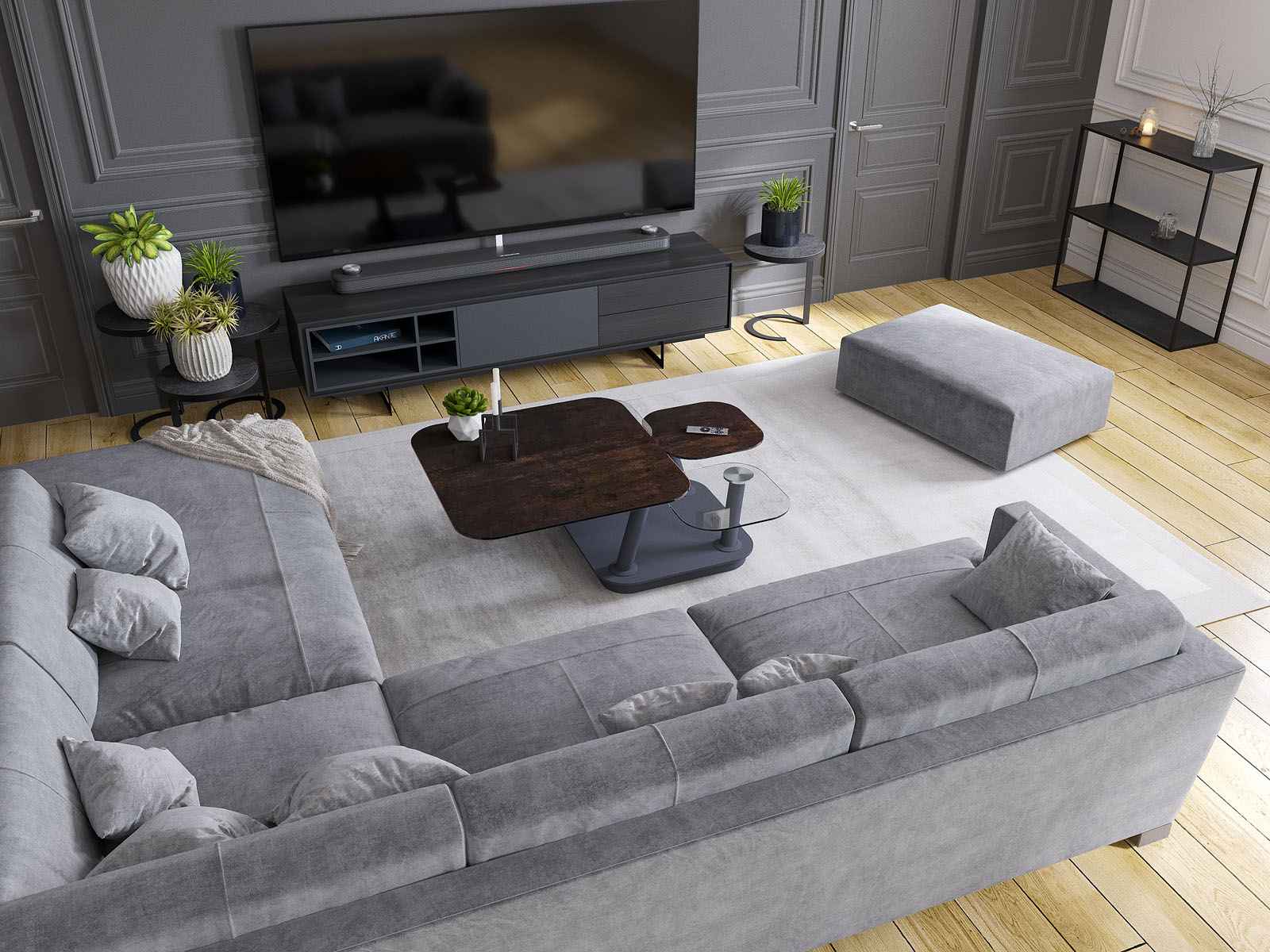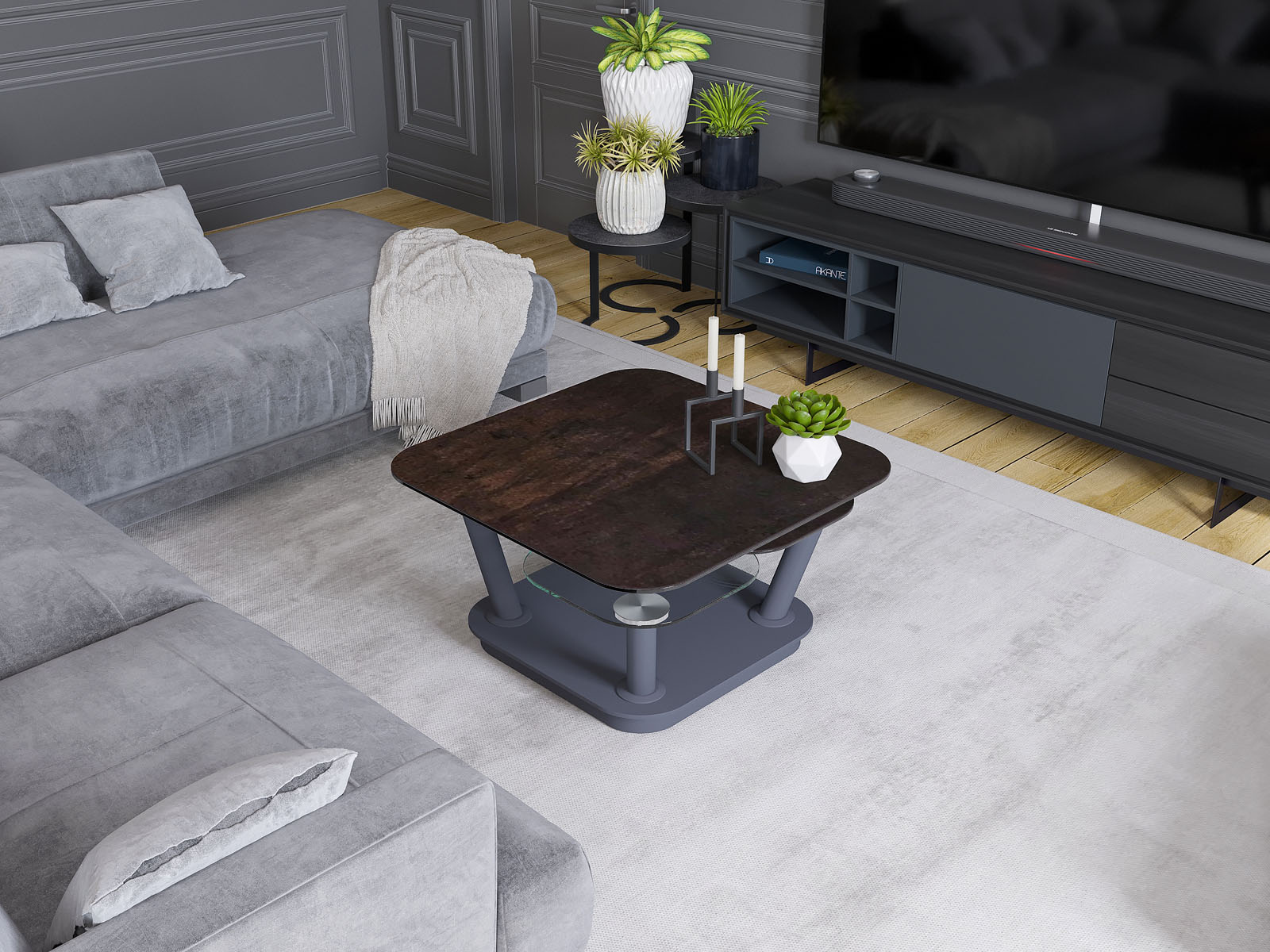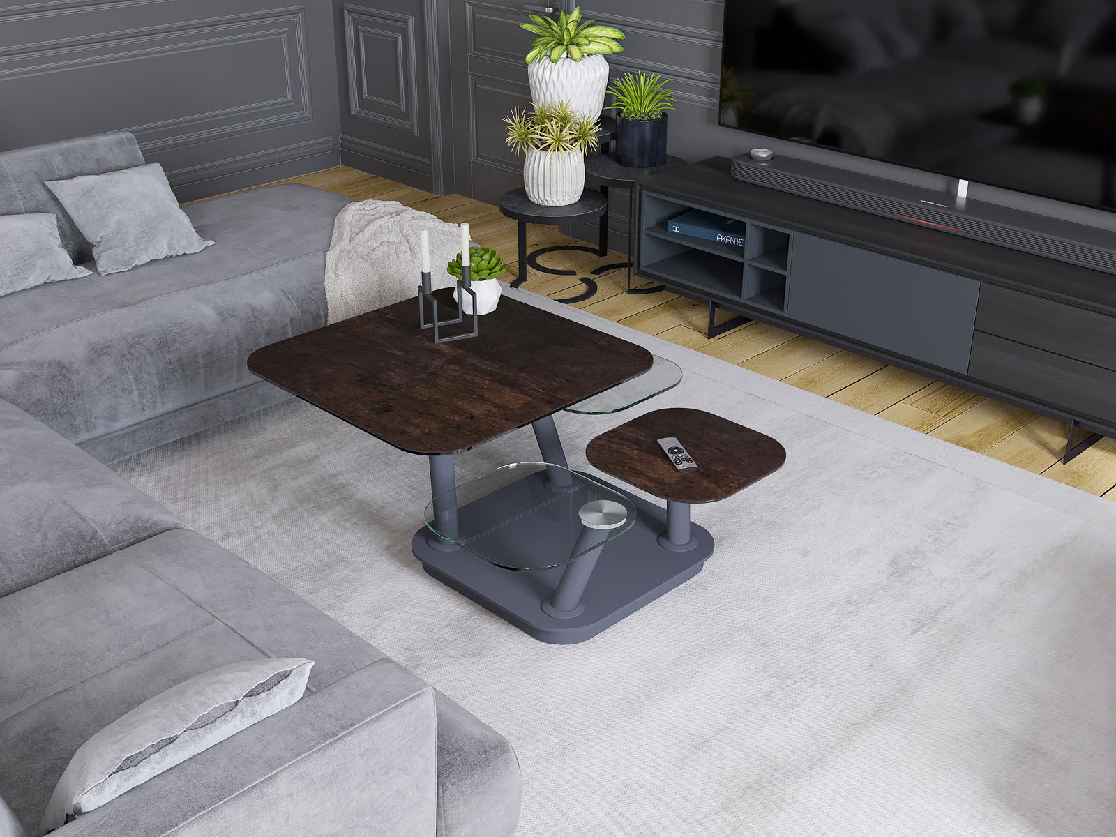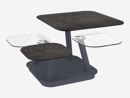 La table QUATTRO est extraordinaire à plusieurs égards. QUATTRO est une table basse avec quatre plateaux pivotants. Ces quatre plateaux se déplacent de manière synchronisée ce qui donne un mouvement d’ensemble impressionnant. La table se déploie avec élégance et ses plateaux pourront impressionner et servir vos convives. Le plateau supérieur est toujours en céramique de 3mm collée sur un vitrage de 6mm. Le plateau inférieur est en verre trempé de 10mm. Les deux plus petits plateaux alternent aussi la céramique et le verre. 4 finitions de plateaux en céramique sont disponibles. Quand aux bras et à la base, 3 finitions sont possibles. Présenté ici avec une base en acier et des bras en gris anthracite. Les plateaux sont en céramique acier.