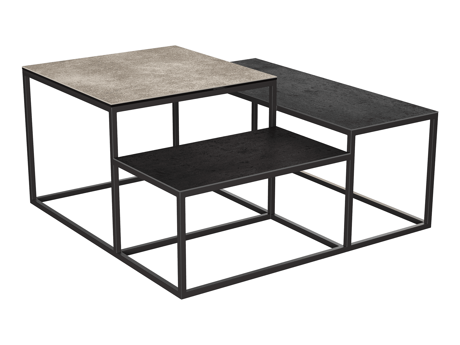 La structure en acier noir de la table basse Brasilia crée une véritable asymétrie grâce à ses trois niveaux, pour un concept contemporain et tendance. Son plateau supérieur en céramique argile donnera de la douceur à votre décoration. Les deux plateaux inférieurs sont en céramique titane.