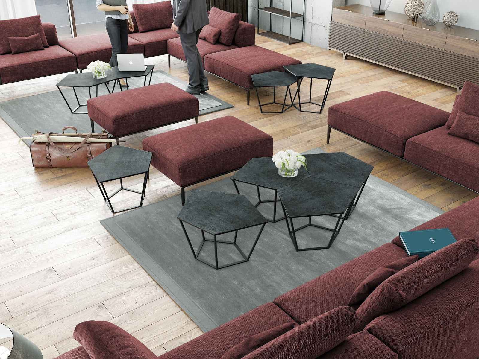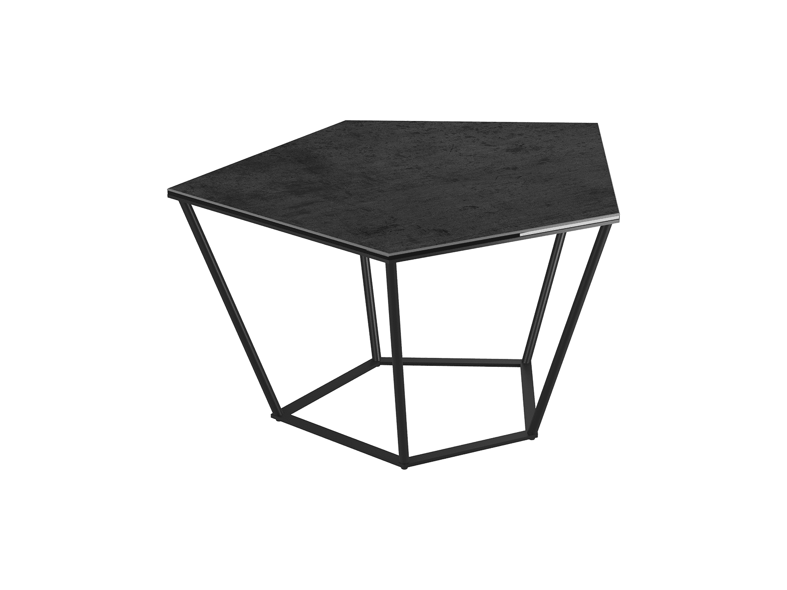 La table basse ENIGMA est unique et originale. C’est une table basse pentagonale qui se compose d’un pied en acier laqué noir et d’un plateau en céramique titane de 3mm collée sur un vitrage de 6mm. Ces deux matériaux procurent une résistance à toute épreuve pour votre plateau. La forme hexagonale permet de combiner votre table Enigma que ce soit de petite dimension (72x 54) ou de grande dimension (110 x 83). Ici, il s’agit de la table basse Enigma de petite dimension avec une hauteur de 38cm