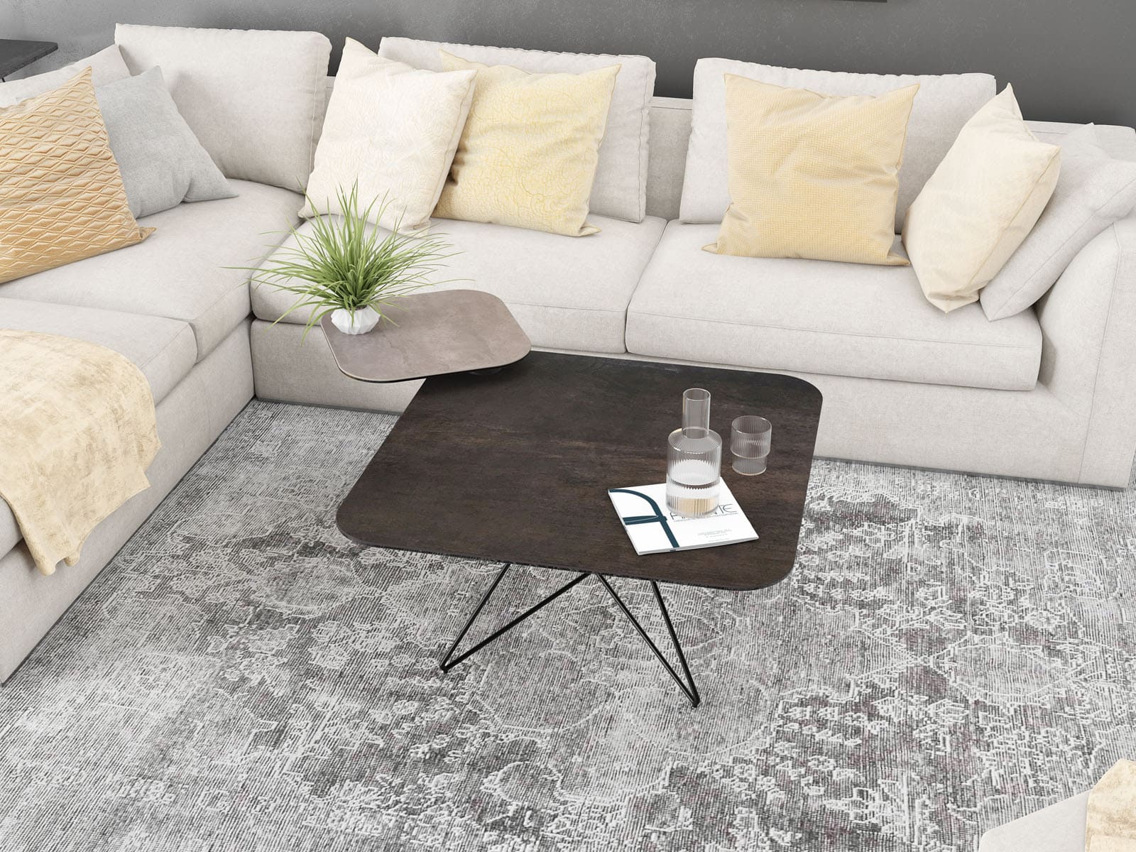 Les couleurs naturelles de la table basse Comète rappellent les matières brutes. Très tendance dans une décoration industrielle ou authentique, la céramique acier et argile donnera du cachet à votre salon. Ses pieds en acier laqué noir mat optimiseront vos espaces et lui donneront davantage de charme. S’accordant avec toutes les couleurs, ses céramiques de 3 mm sont collées sur un vitrage de 6 mm pour assurer à la table la meilleure solidité et résistance.