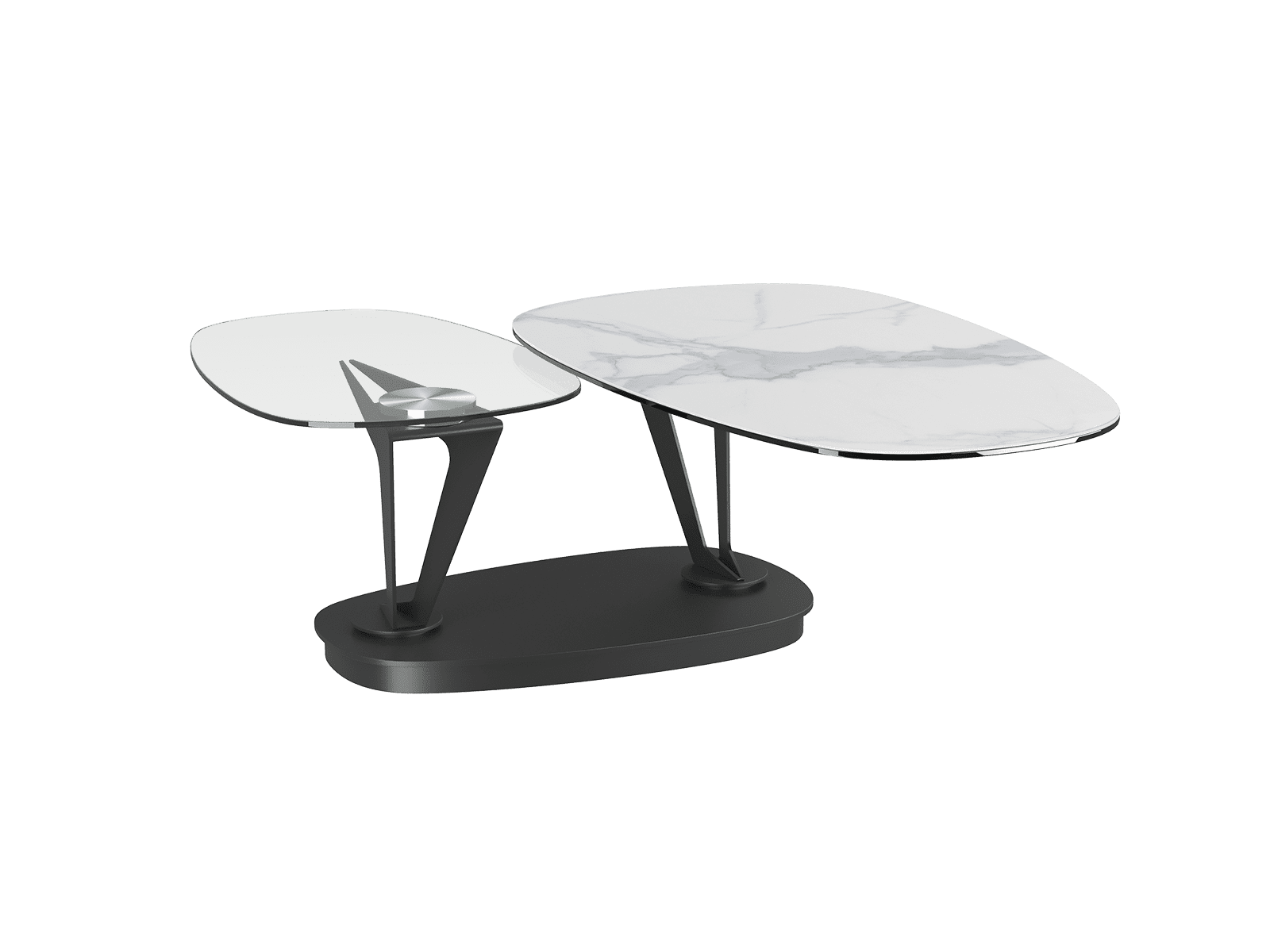 EXCLUSIVITE DU RESEAU CUIR CENTER EN FRANCE. Les plateaux pivotent à 360°. Piètement équipé de roulettes.