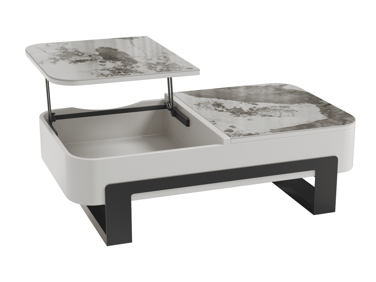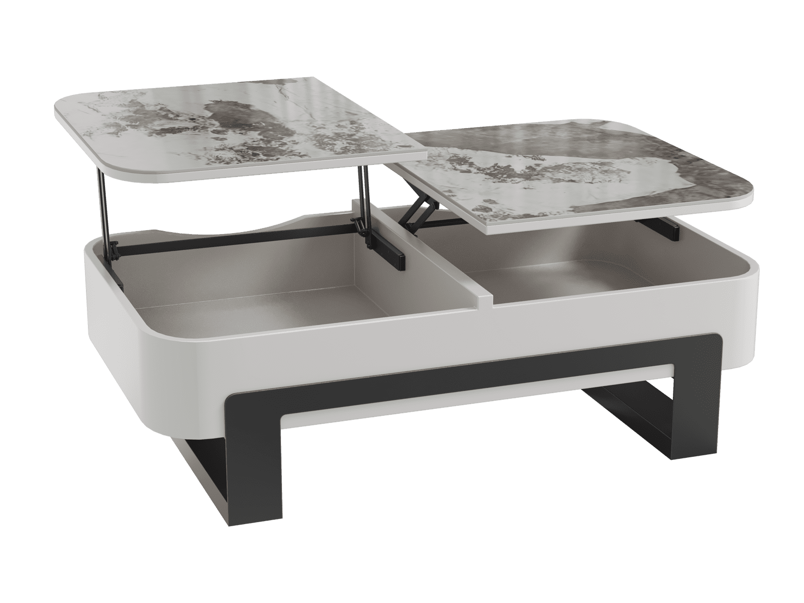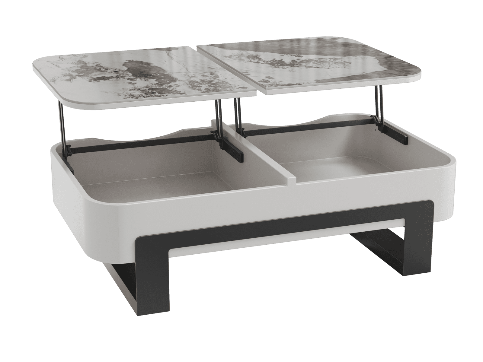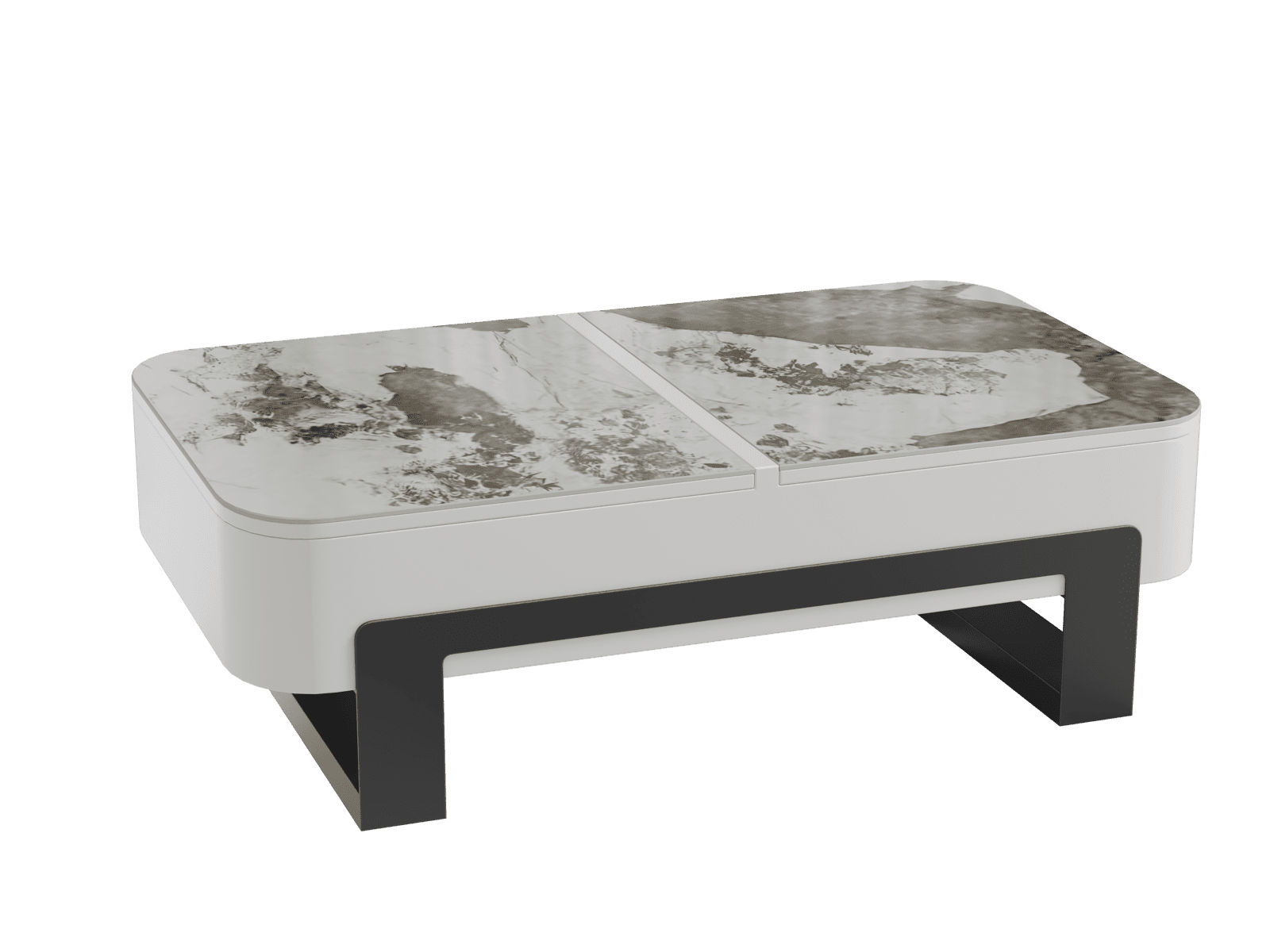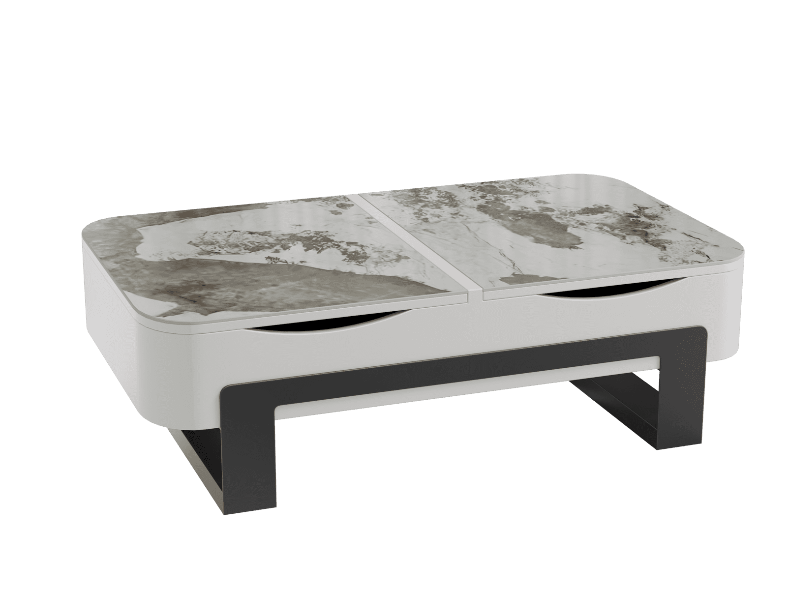Découvrez Sydney, une table basse dinette idéale pour créer un espace chaleureux et multifonctionnel. Elle dispose de deux plateaux astucieux qui se déploient facilement vers vous. Grâce à ses roulettes équipées de freins, subtilement intégrées dans son piétement, Sydney est facilement mobile. Sa structure est en MDF laqué gris anthracite, ses tablettes sont revêtues de 3 mm de céramique Marbre Calcatta. Sydney mesure 120 cm de longueur, 70 cm de largeur et 38 cm de hauteur. Exclusivité Chateau d'Ax