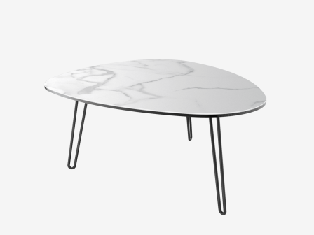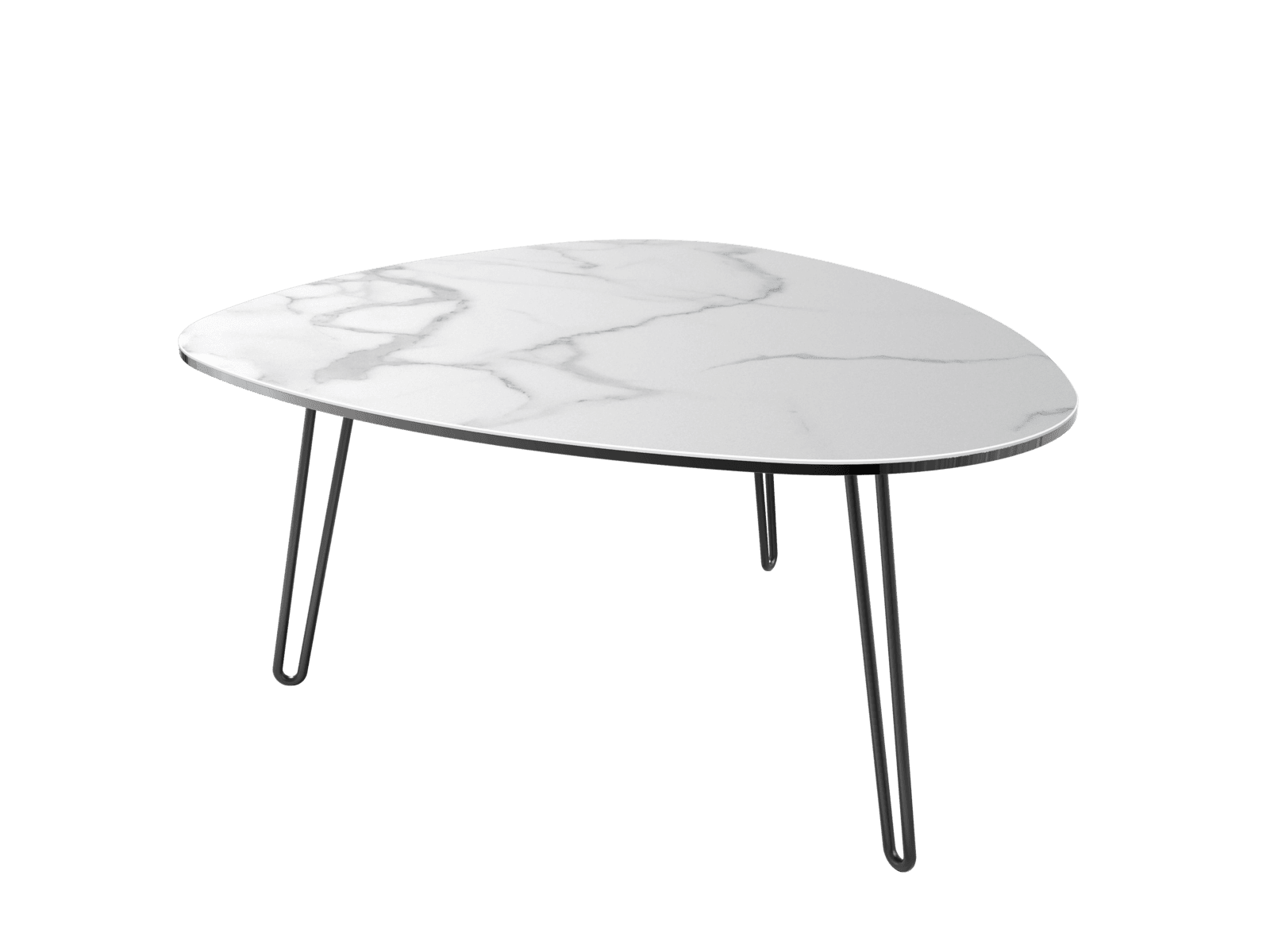 Ajoutez de la douceur à votre intérieur avec notre table basse incontournable : Baleares. Cette table basse possède un plateau organique de 92 cm de long sur 76 cm de large, conçu en céramique Marbre Mat de 3 mm collée sur un verre de 6 mm. Son piétement épingle est en acier laqué noir mat, il mesure 38 cm de hauteur.