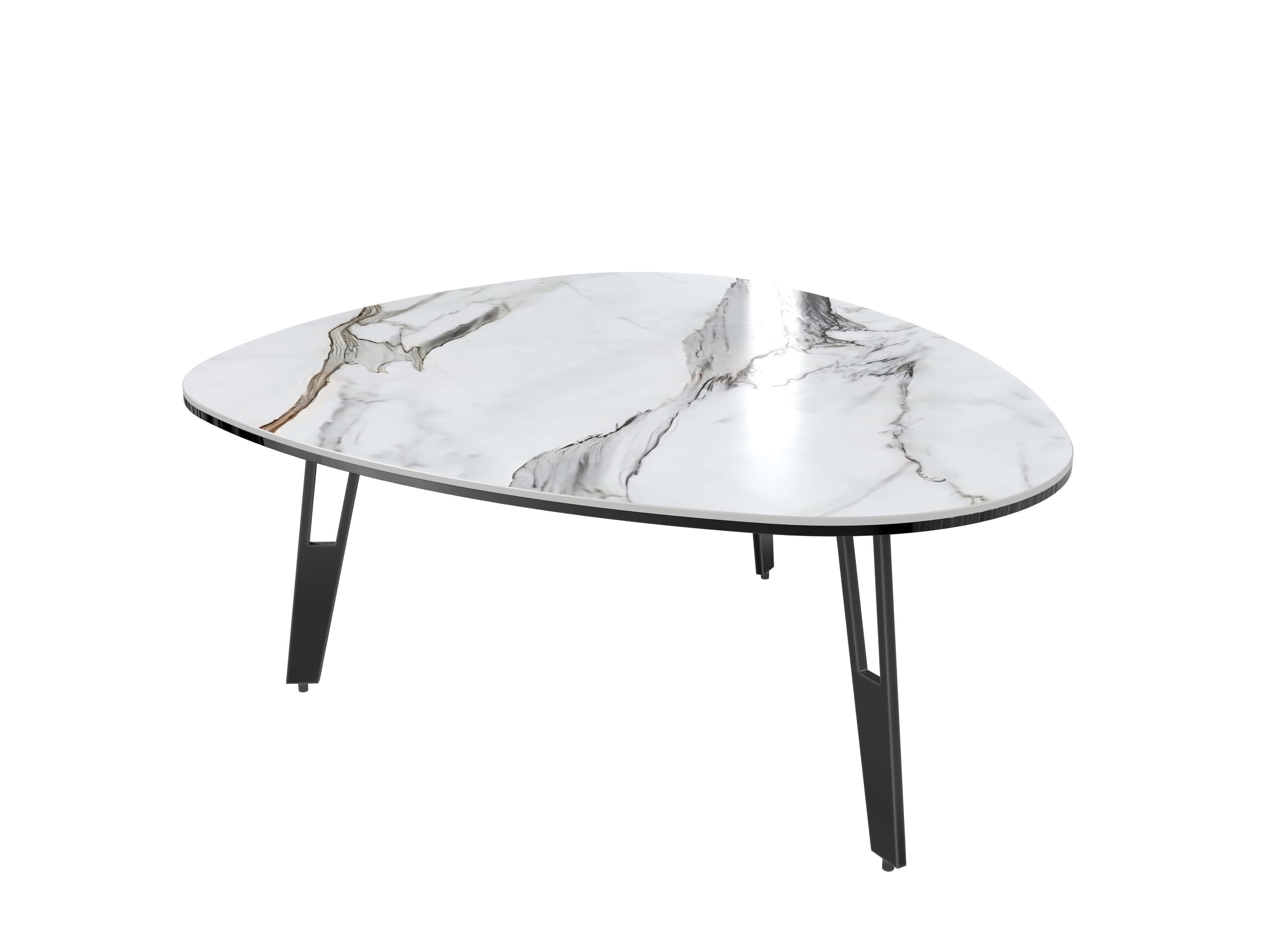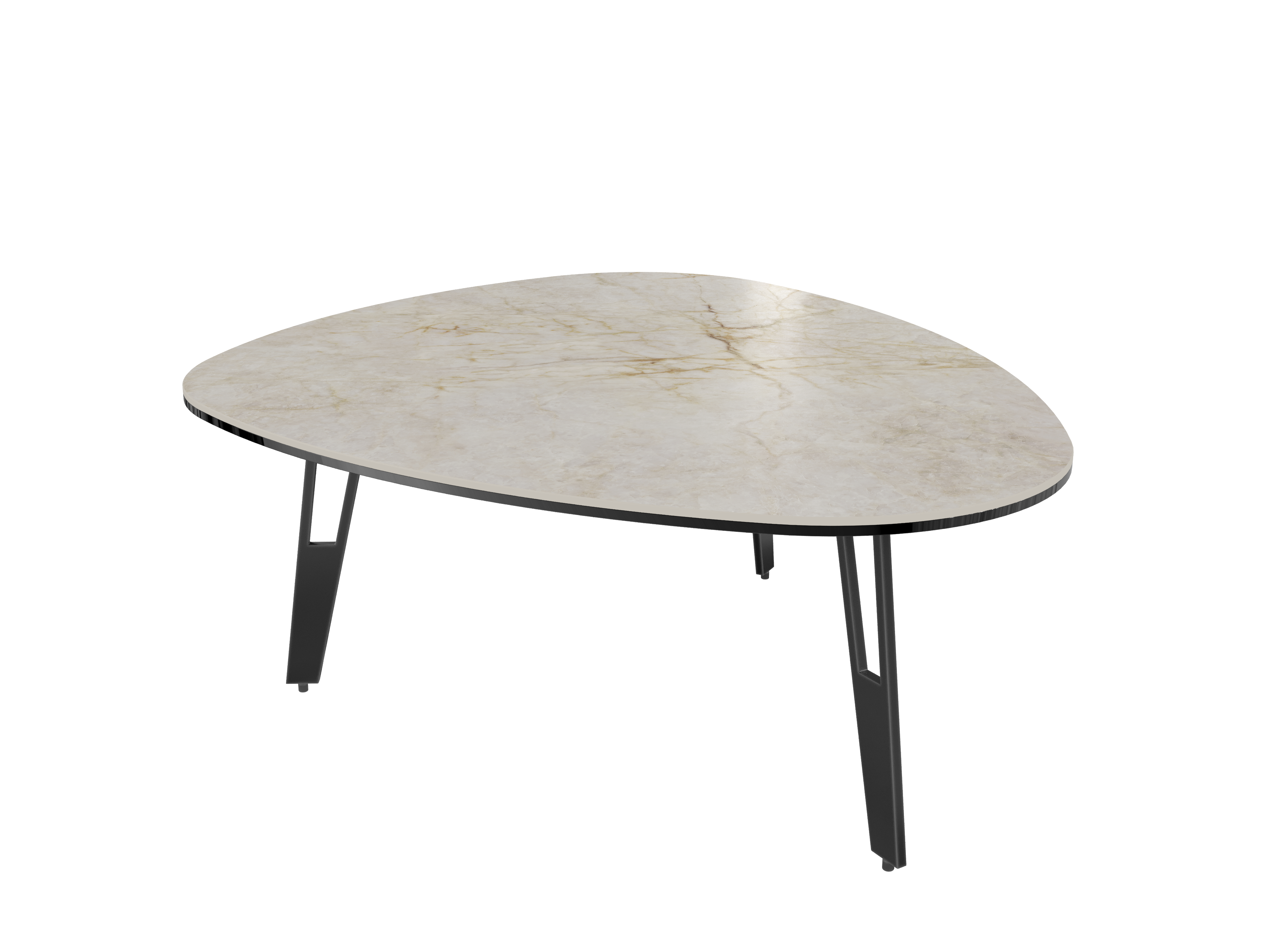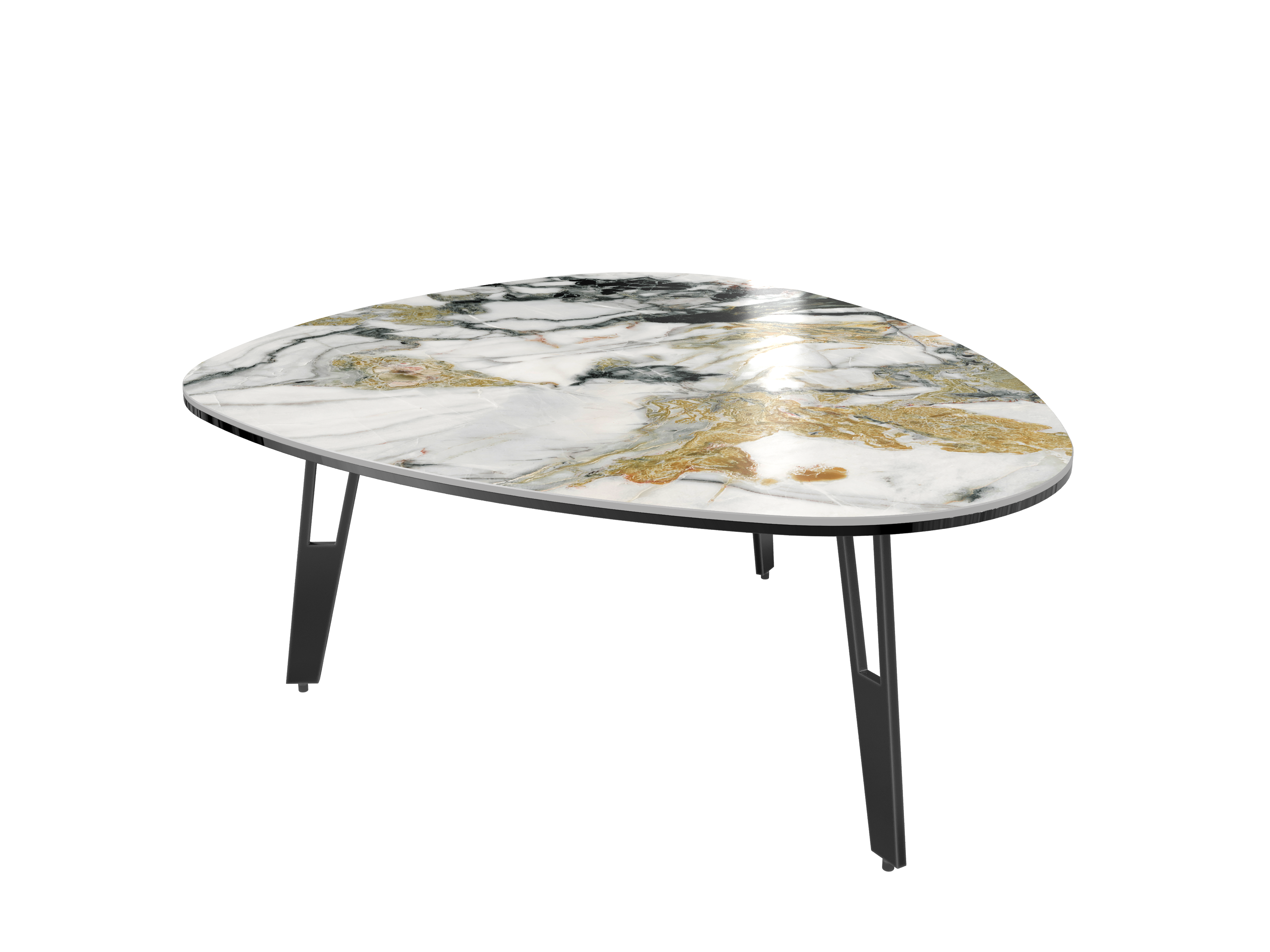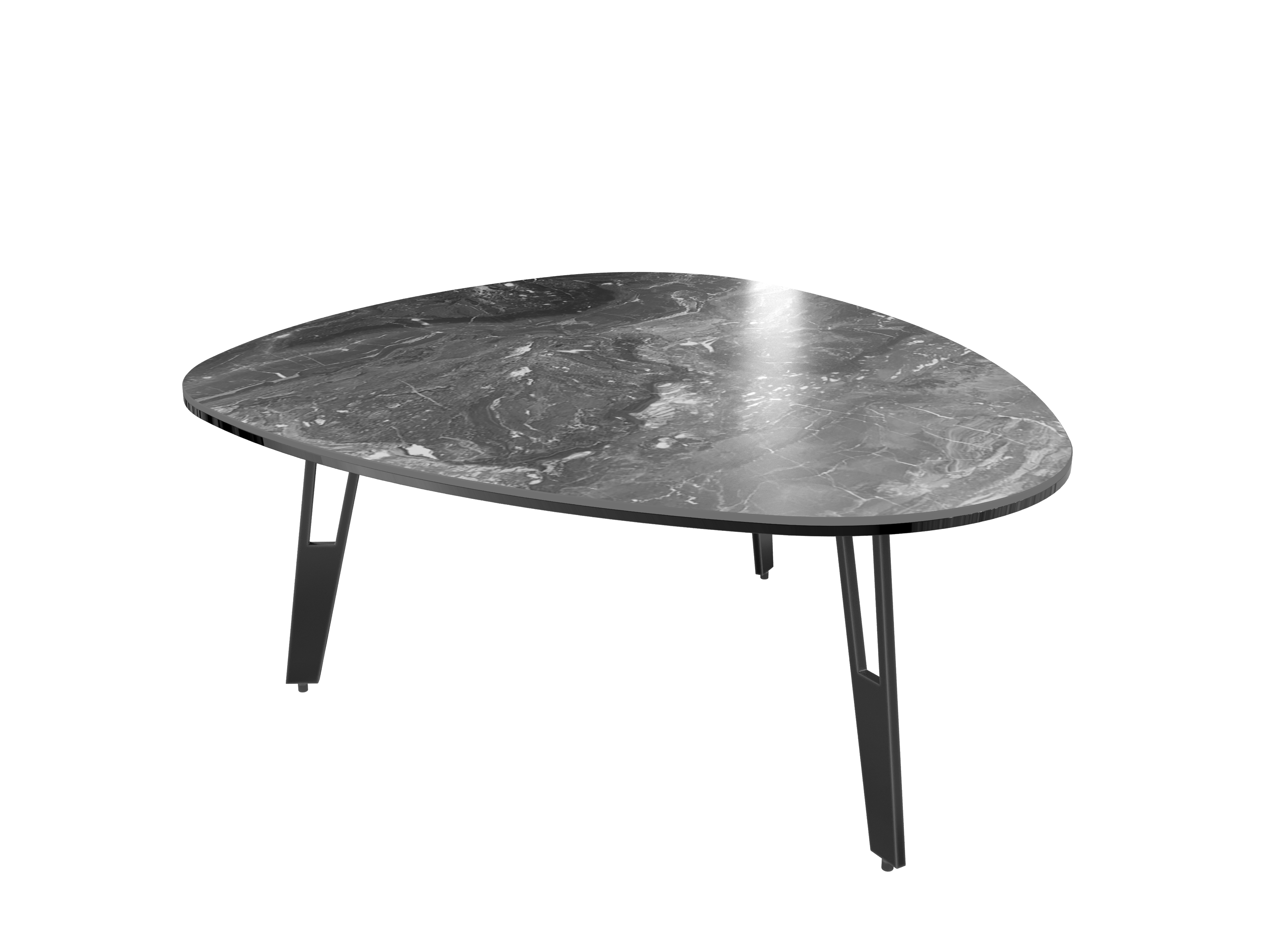 De la légèreté et de la douceur dans votre salon. Découvrez la table basse Galet en céramique marbré et ses pieds ajourés en acier laqué noir pour une alliance aérienne et moderne. Le plateau en céramique fait 3 mm d’épaisseur et est collé sur un vitrage de 6 mm pour lui assurer une meilleure solidité.
