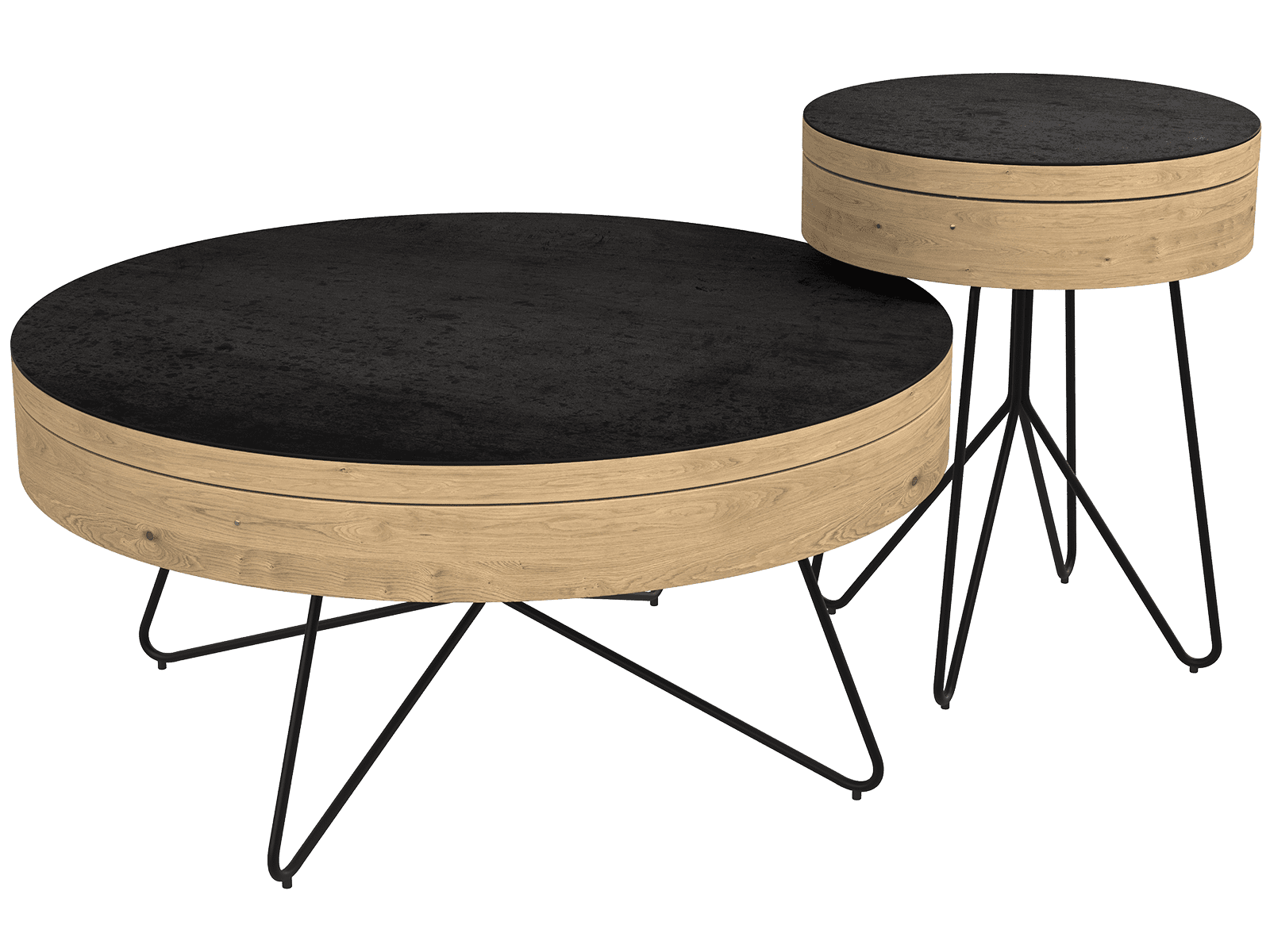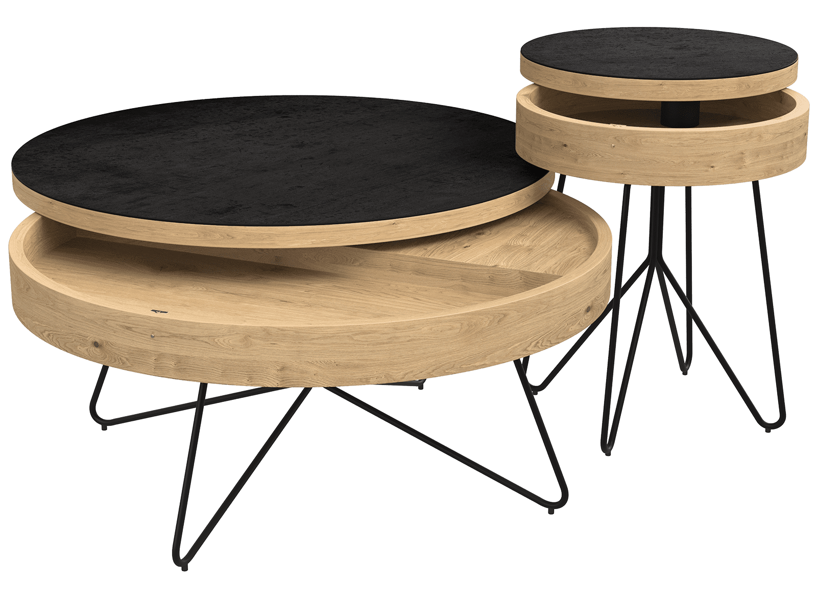 • Plateau supérieur : Céramique titane de 3 mm sur MDF plaqué chêne