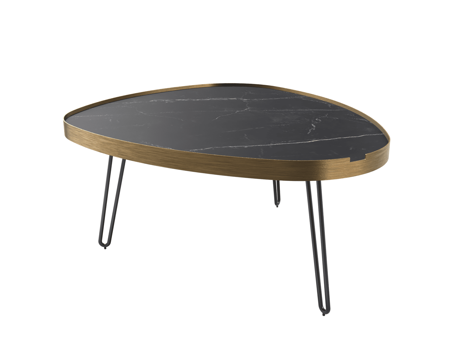 Sublimez votre espace de vie avec notre table basse Verona de 92 x 76 x 38 cm. Le plateau en céramique marbre Marquina et sa ceinture en acier effet bronze apportent une touche luxueuse à votre salon. Sa céramique pleine masse mesure 11 mm d’épaisseur. Le piétement en épingle en acier laqué noir ajoute une touche de modernité.