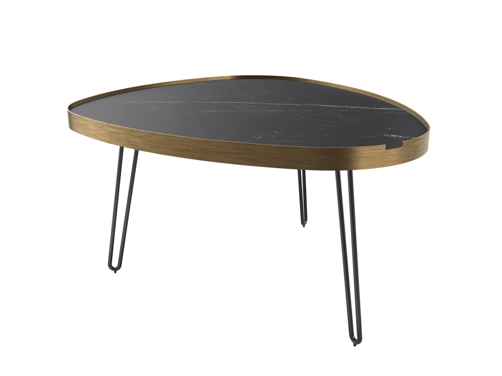 Découvrez l’alliance entre l’élégance et la modernité avec la table basse Verona de 92 x 76 x 43 cm. Le plateau en céramique marbre Marquina pleine masse d'une épaisseur de 11 mm évoque l'essence même du luxe. Il est entouré d’une ceinture en acier effet bronze. Les pieds épingles en acier laqué noir ajoutent une dimension contemporaine à la table.
