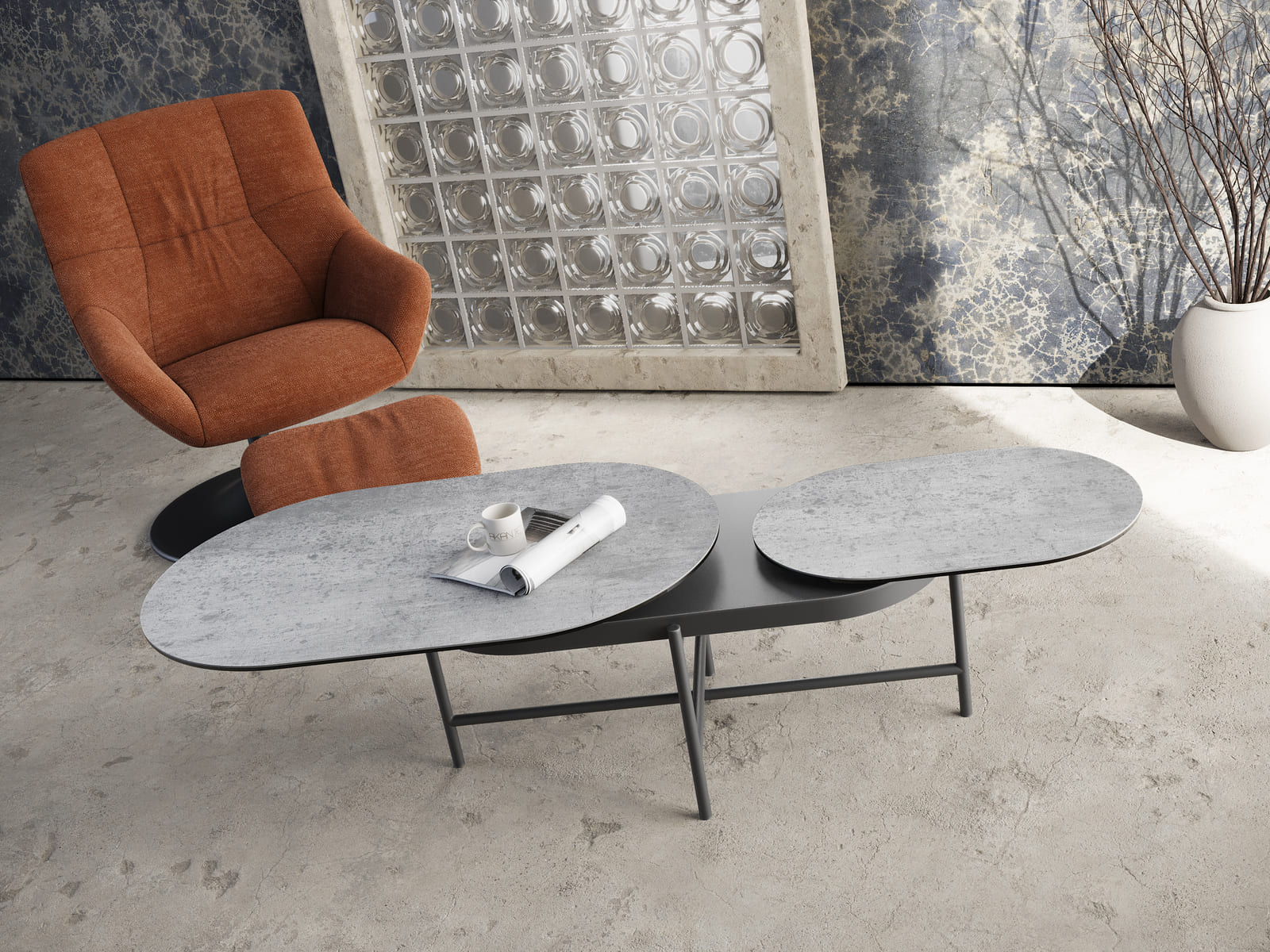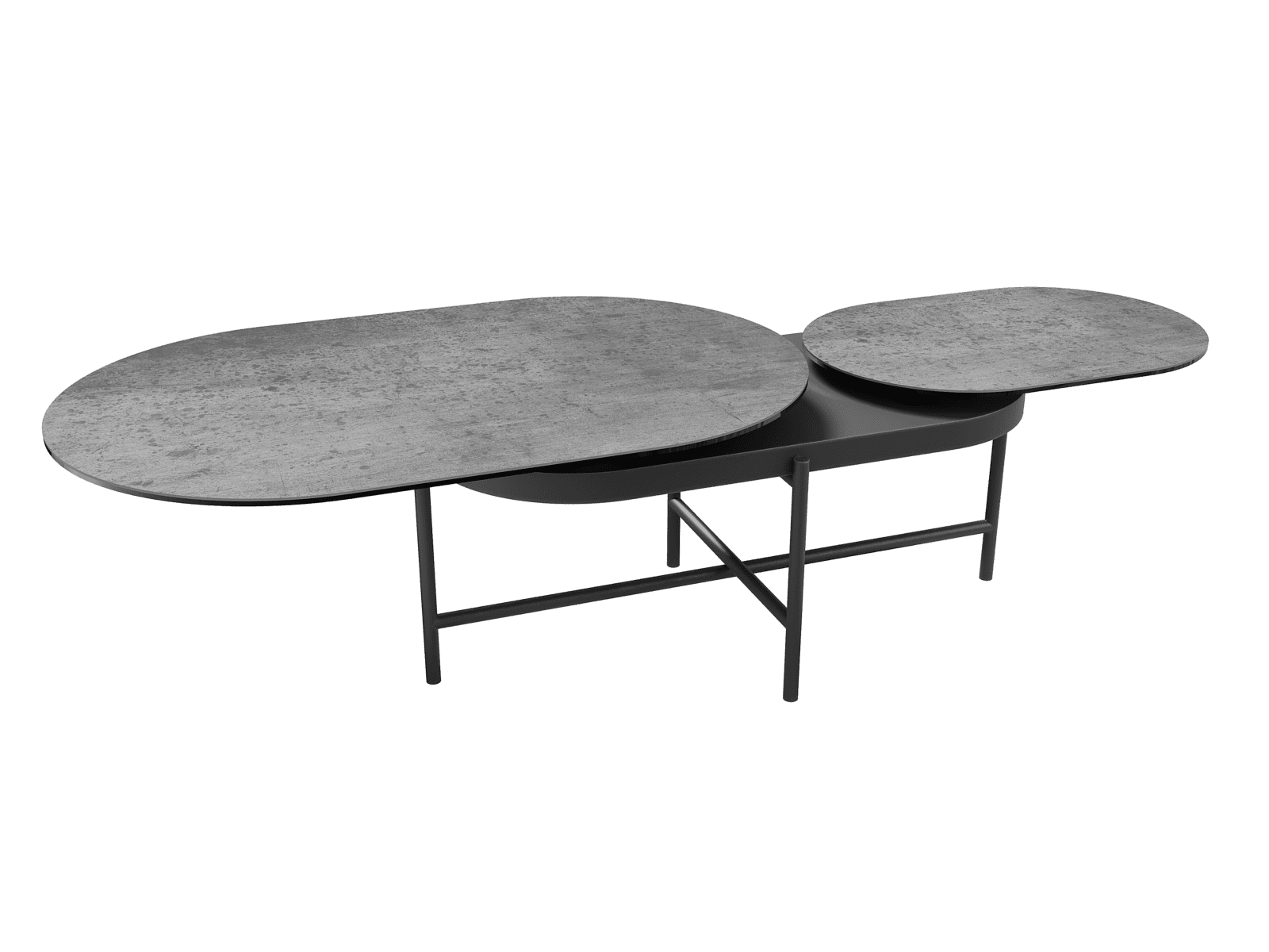 Faites de Paros la pièce maîtresse de votre salon. Cette table basse à deux plateaux mobiles vous offre modularité et polyvalence. Paros mesure 160 cm de long lorsqu’elle est entièrement déployée et mesure 95 cm une fois refermée, sa largeur est de 60 cm. Ses plateaux en céramique Silver de 3 mm, collés sur un verre de 6 mm, s’associent à une structure en acier laqué noir mat. Paros est une table basse à la fois fonctionnelle et contemporaine.