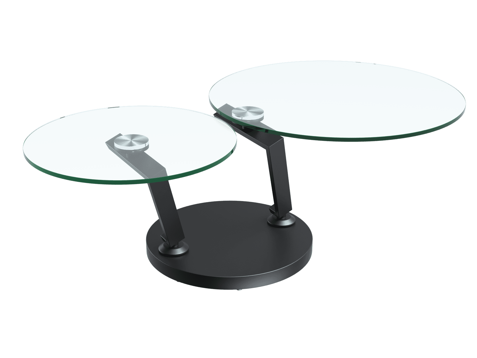 Découvrez la table basse Porto. Elle est unique grâce à un jeu de transparence avec ses 2 plateaux en verre clair amovibles. Le piétement en acier laqué noir mat ajoute une touche de modernité. La table basse mesure 75 cm fermée et elle peut aller jusqu’à 130 cm lorsqu’elle est ouverte. D’autres modèles sont aussi disponibles avec différents coloris de plateaux.