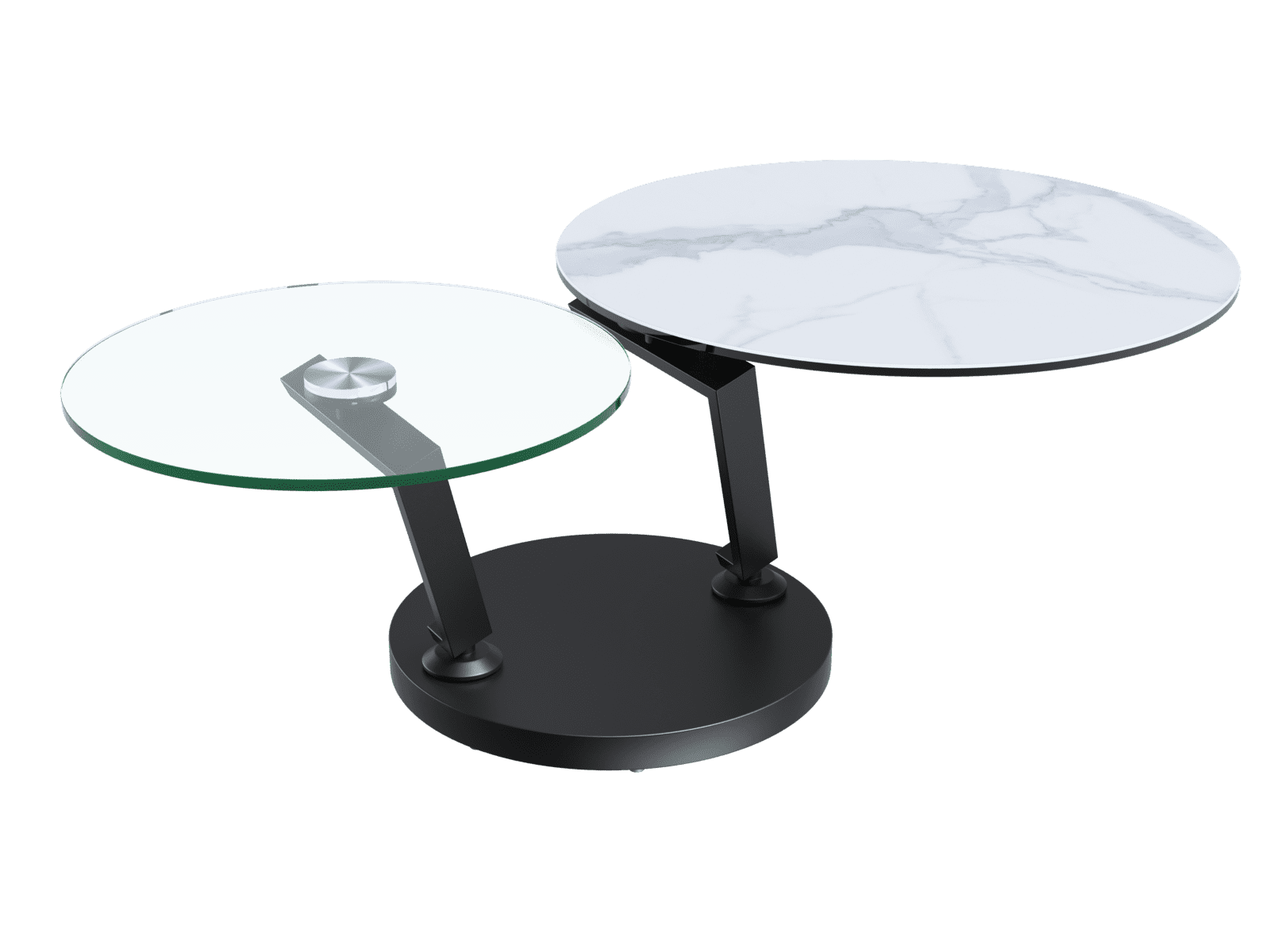 Démarquez-vous grâce à l’esthétisme et l’ingéniosité de la table basse Porto. Ses deux plateaux sont amovibles et permettent d’augmenter ou diminuer la taille de votre table. Choisissez la céramique Marbre mat de 3 mm d’épaisseur collée sur un verre de 6 mm pour un intérieur sobre. Le piétement en acier laqué noir mat crée un contraste avec le plateau clair. D’autres coloris de céramiques sont disponibles, découvrez celui qui vous correspond le plus.