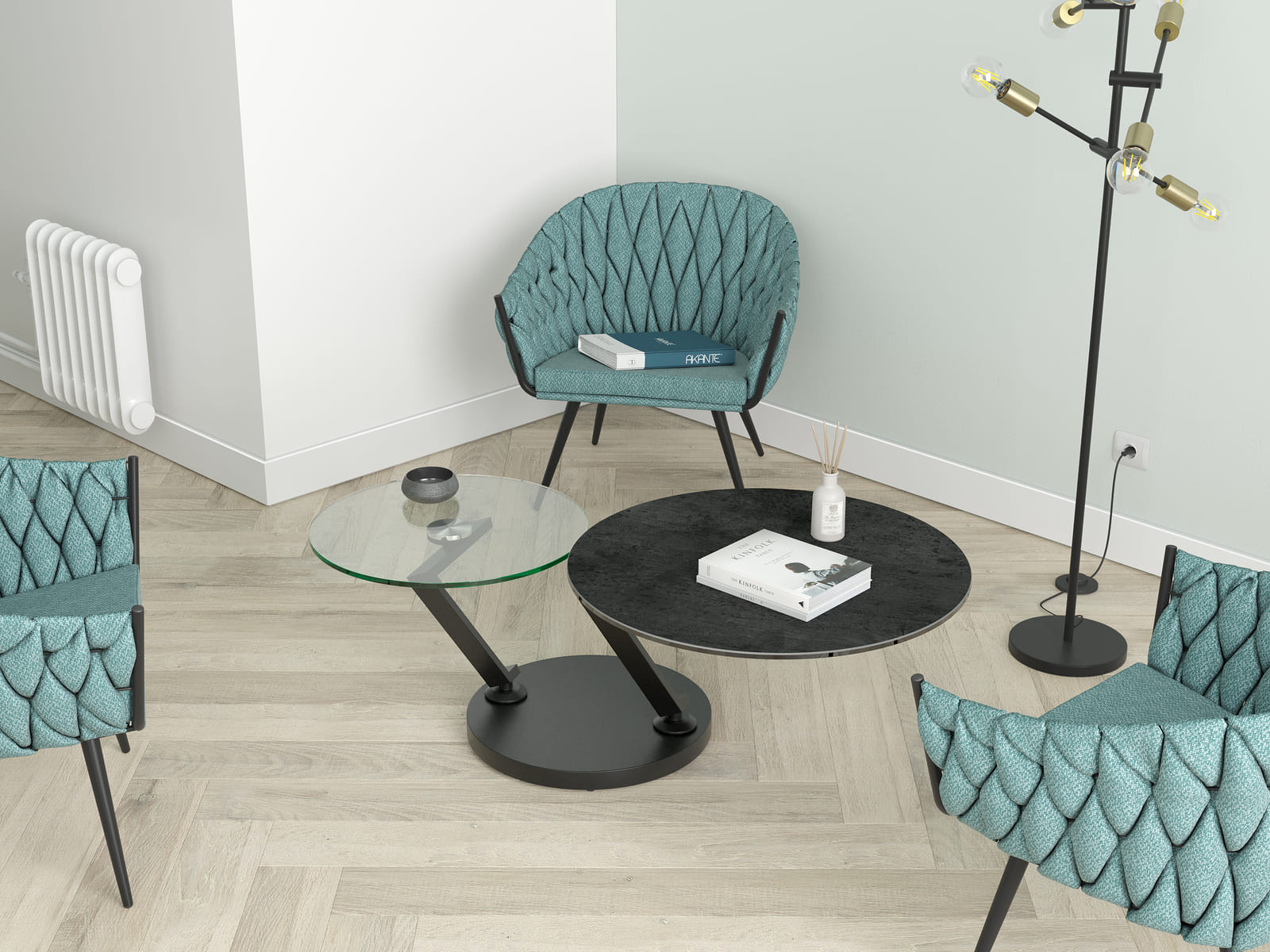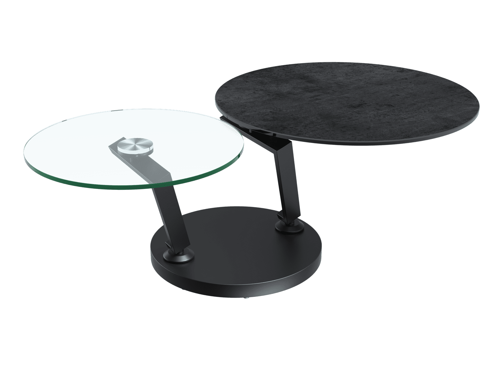Découvrez Porto : la table basse ingénieuse. Déployez-la grâce à ses plateaux amovibles en céramique Titane et en verre. La surface de la table peut passer de 75 cm à 130 cm de longueur. La céramique mesure 3 mm d’épaisseur et est collée sur un verre de 6 mm, ce qui apporte au plateau une forte robustesse.