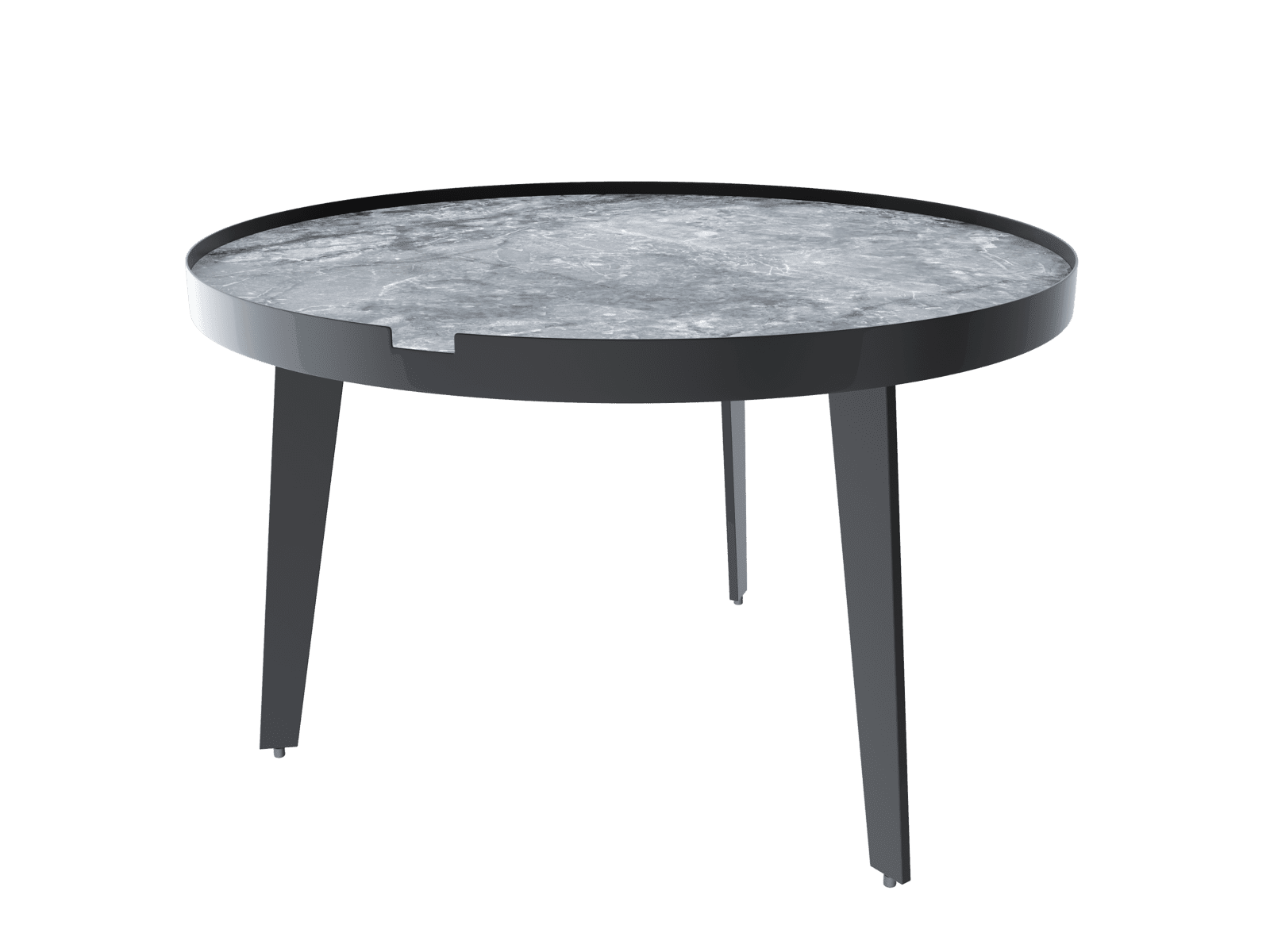 Un design moderne grâce à sa forme et à son plateau, découvrez la table basse Genoa. La céramique marbre Onyx bleu ajoute de la couleur et de l’originalité à la table. C’est une céramique pleine masse qui mesure 11 mm d’épaisseur. Le plateau est composé d’une ceinture en acier laqué noir qui modernise l’ensemble. Le piétement en acier laqué noir mat contraste avec la clarté du plateau. Avec des bouts de canapé de la même collection, créez votre ensemble de tables gigognes.