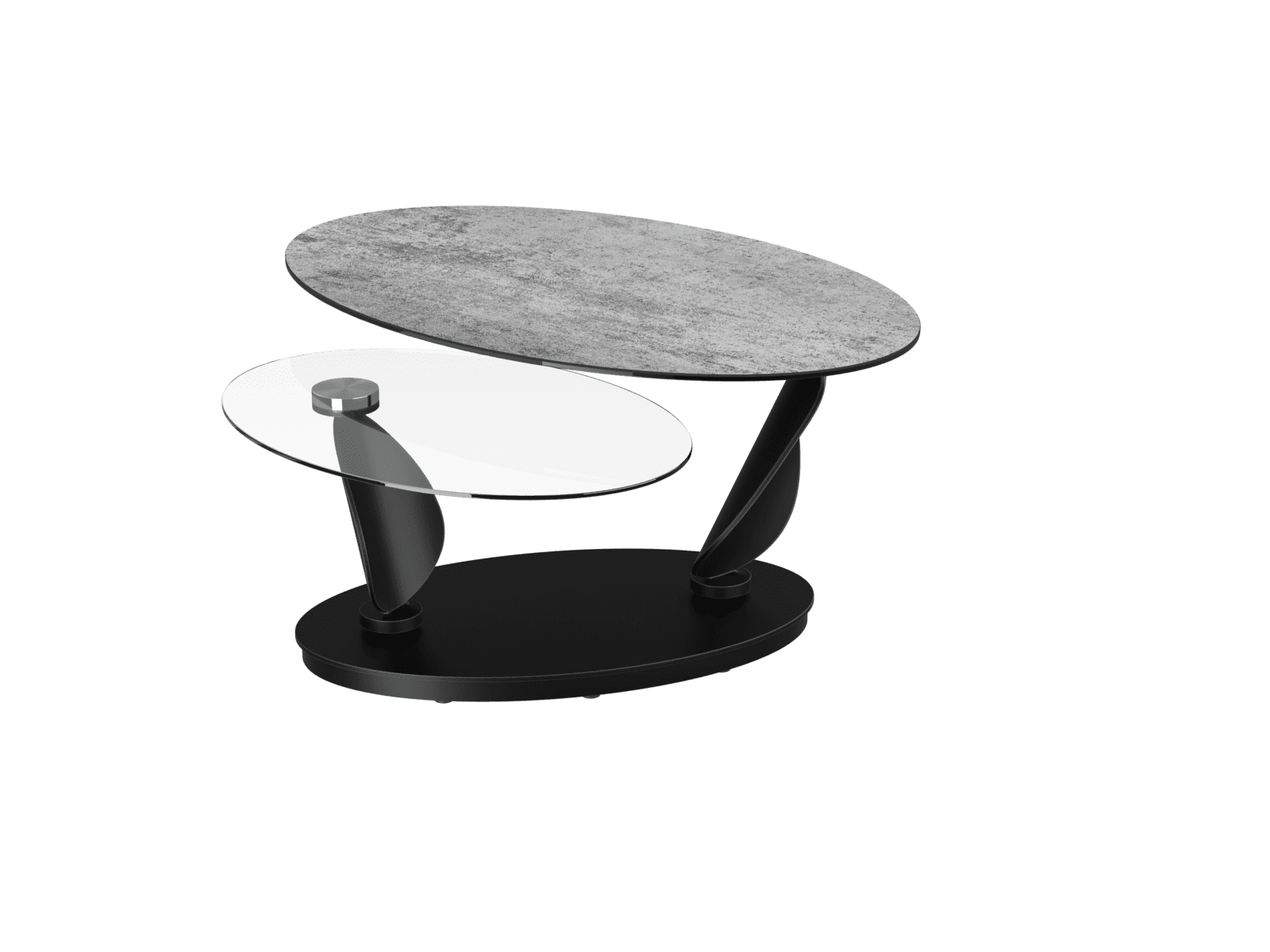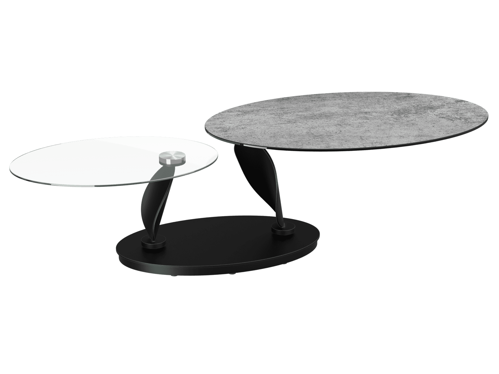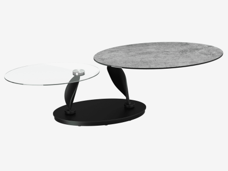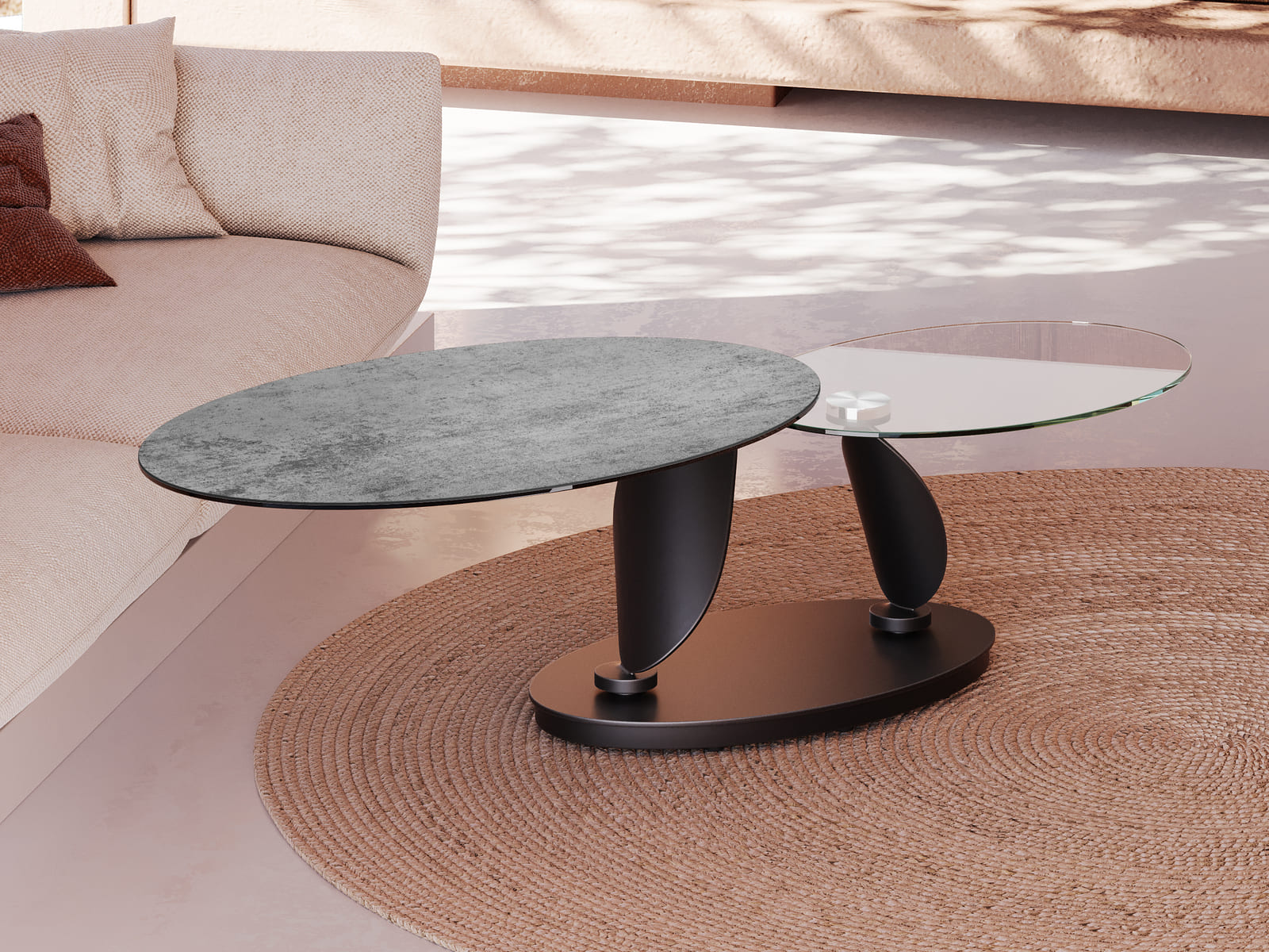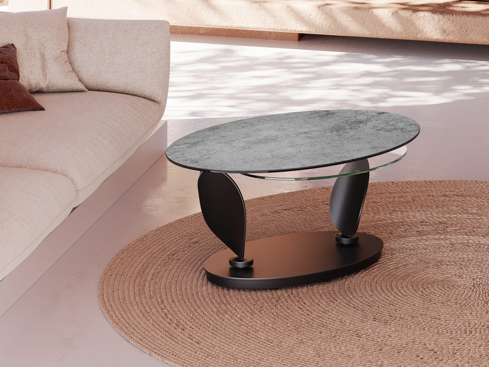 Adoptez le charme contemporain de la table basse Rosa. Équipée d’un double support pivotant à 360°, ajustez la surface de votre table basse en un seul geste. Son plateau supérieur est conçu en céramique silver de 3 mm collée sur un verre de 6 mm. Le plateau inférieur est en verre trempé, apportant transparence et légèreté à la table. Rosa mesure 95 cm à 1m50 de longueur, 60 cm de largeur et 43 cm de hauteur. Son élégant piétement en forme de pétale de fleur apporte une touche moderne. Il est conçu en acier laqué noir mat.