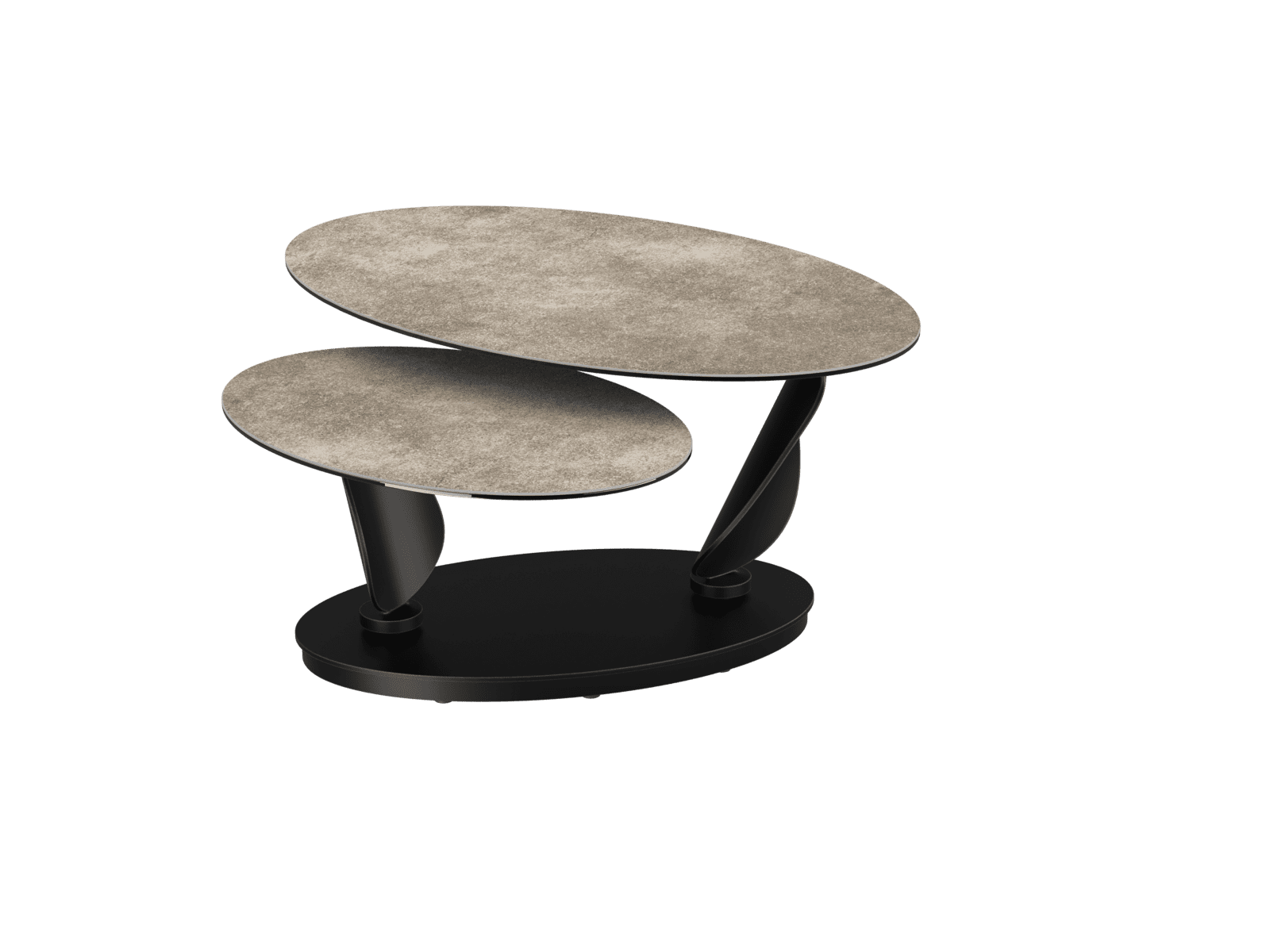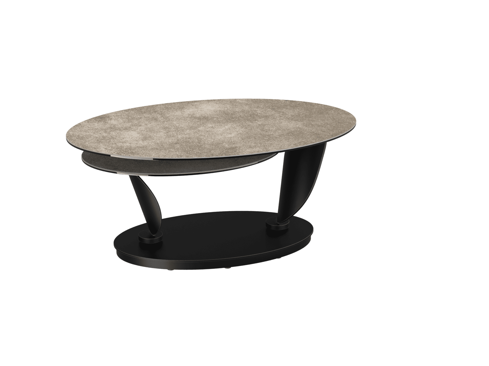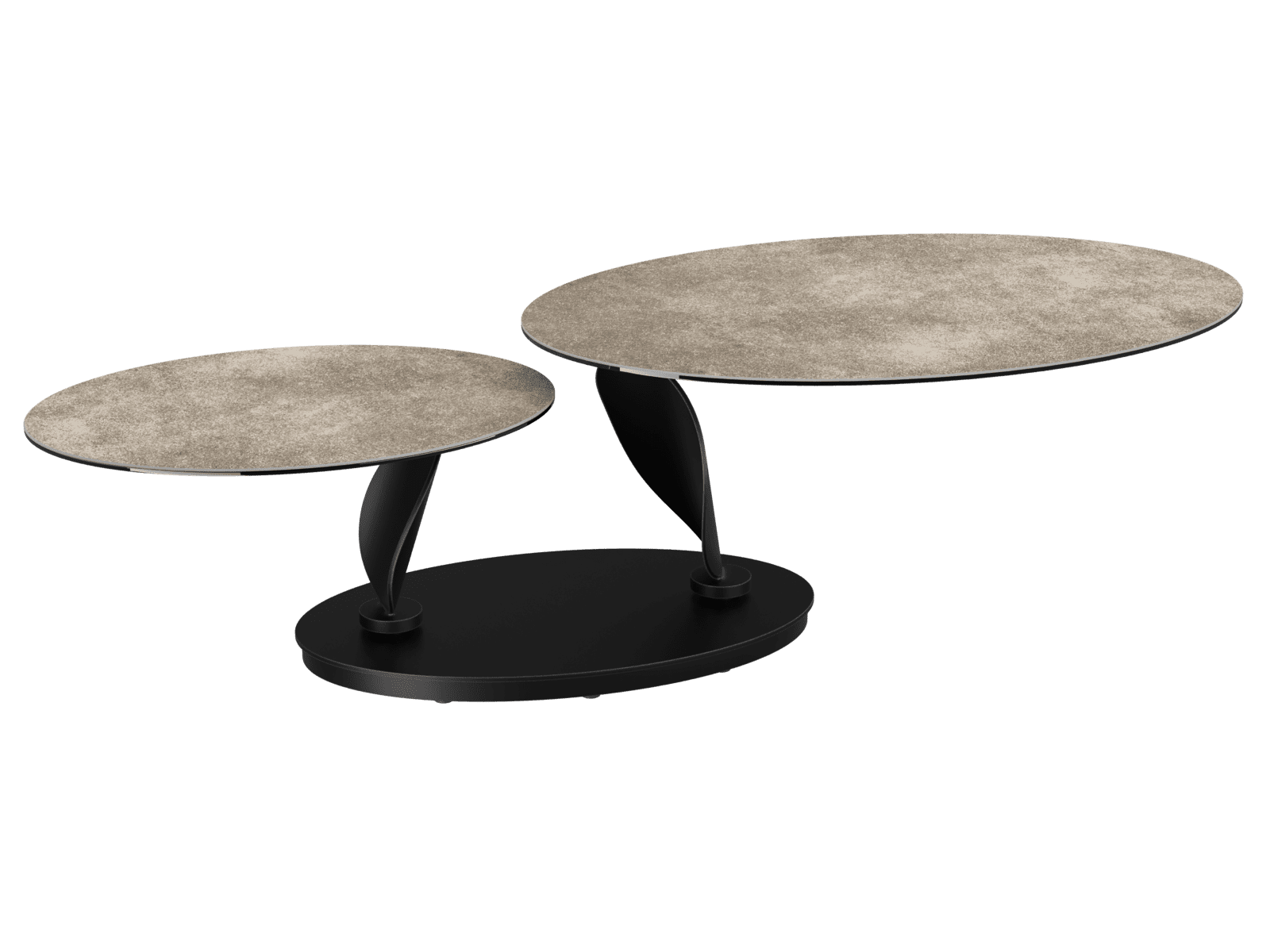 Moderne et contemporaine, la table basse Rosa possède deux élégants pieds en forme de pétale, solidement fixés sur une base en acier laqué noir mat. Cette table basse est dotée d’un mécanisme pivotant à 360°, elle offre un mouvement de rotation à ses deux plateaux. Ajustez la surface de votre table en un seul geste et passez de 95 cm à 1,50 m de longueur. La céramique Argile apportera une touche naturelle à votre intérieur. Les plateaux sont conçus en céramique de 3 mm collée sur un verre de 6 mm.