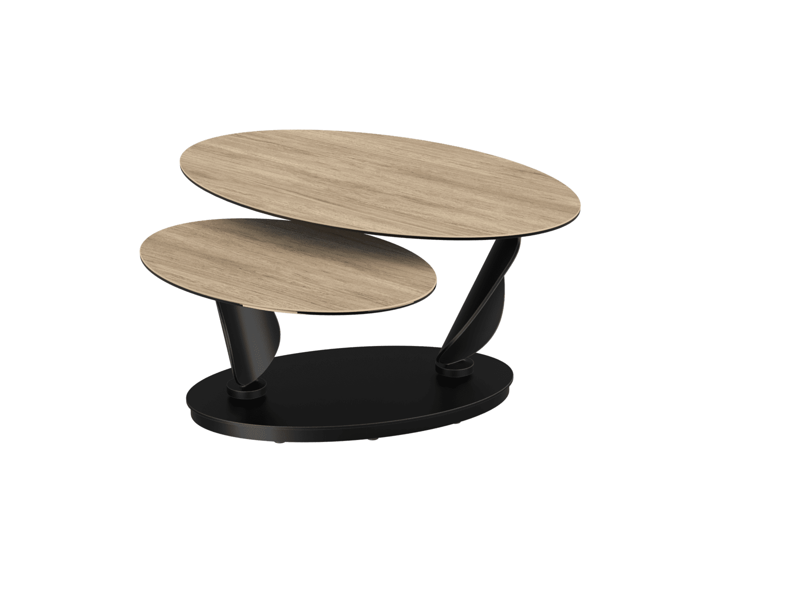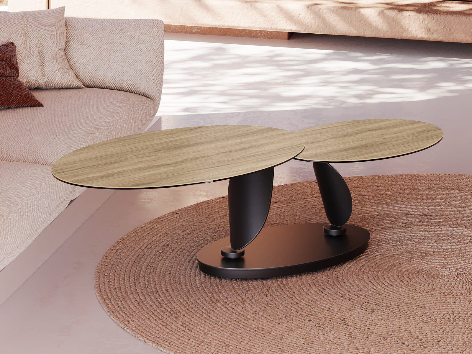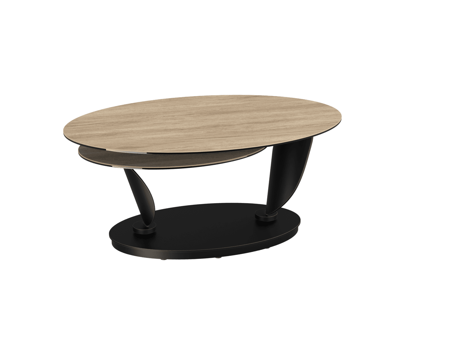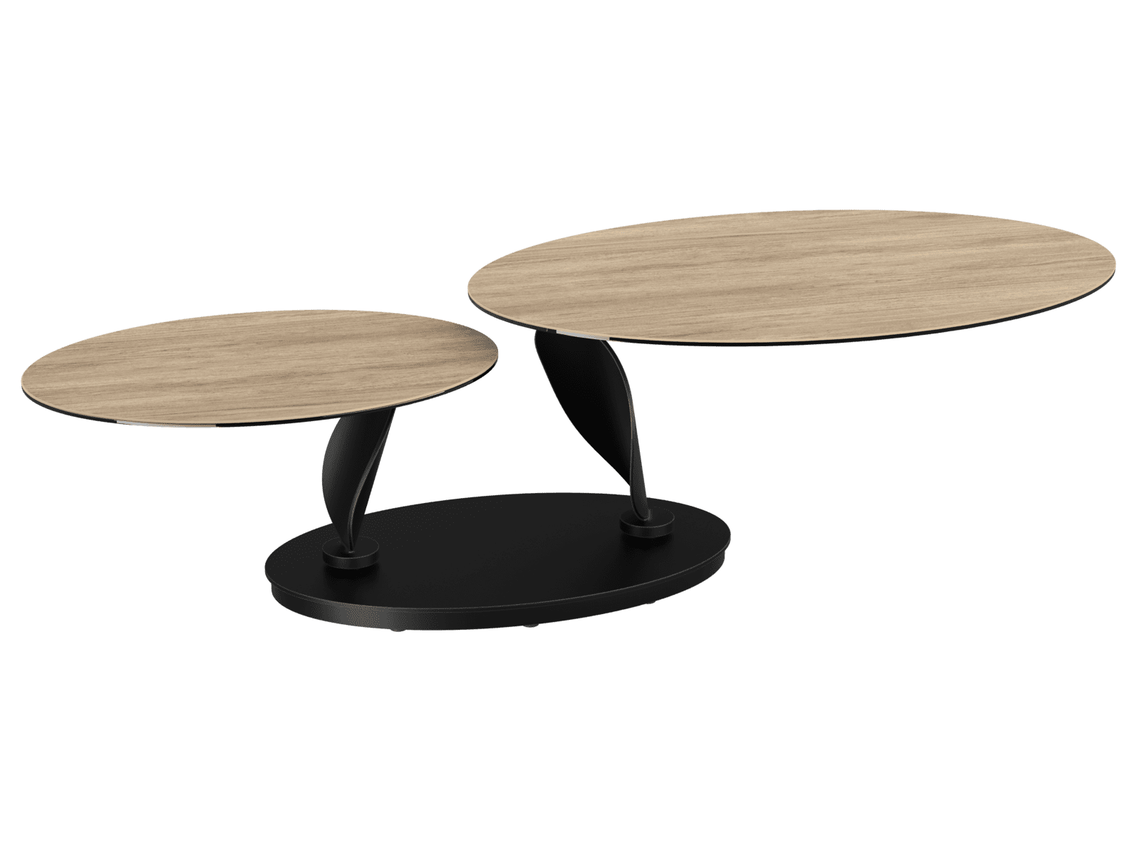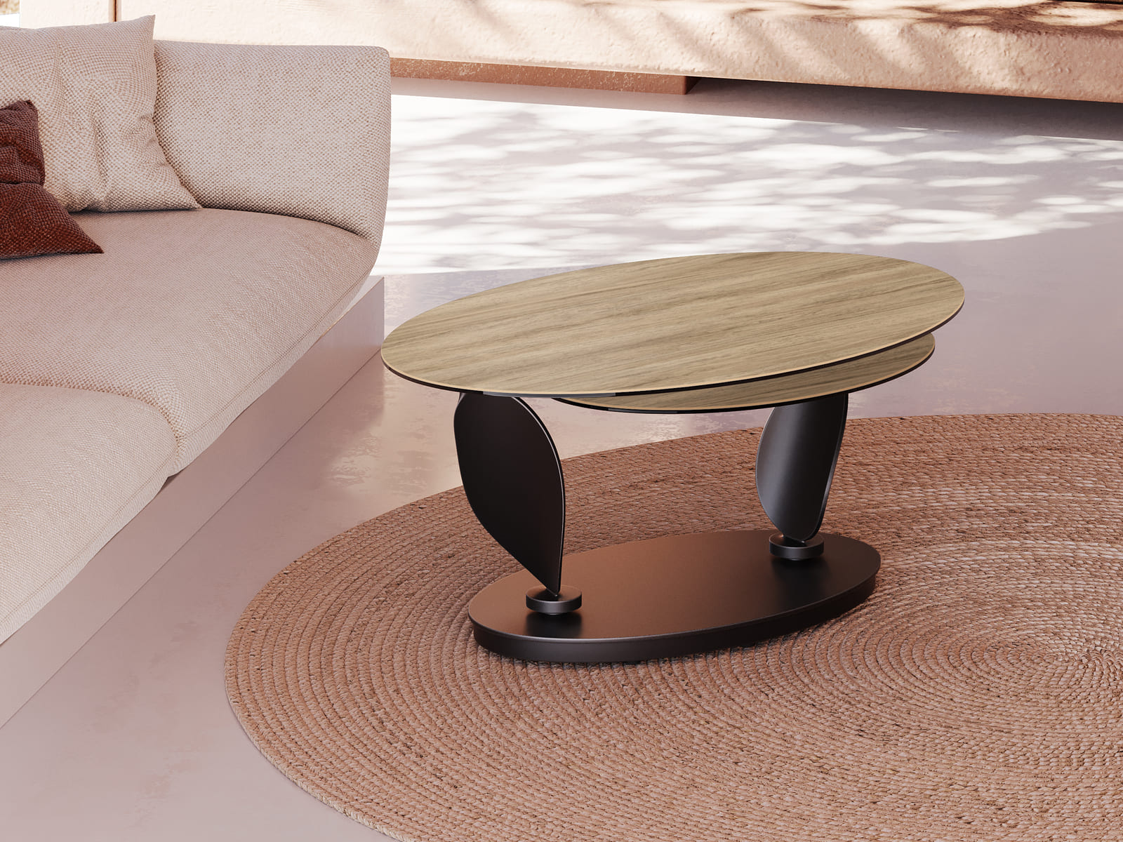 Intégrez cette table basse pleine de charme et d’authenticité dans votre intérieur. Rosa est une nouveauté Akante, sa particularité réside dans son piétement en forme de pétale conçu en acier laqué. Cette table possède un mécanisme pivotant à 360° pour permettre une rotation à ses deux plateaux conçus en céramique chêne clair de 3 mm collé sur un verre de 6 mm. Concernant ses dimensions, la longueur varie de 95 cm (plateaux fermés) à 1m50 (plateaux ouverts), Rosa mesure 60 cm de largeur et 43 cm de hauteur.