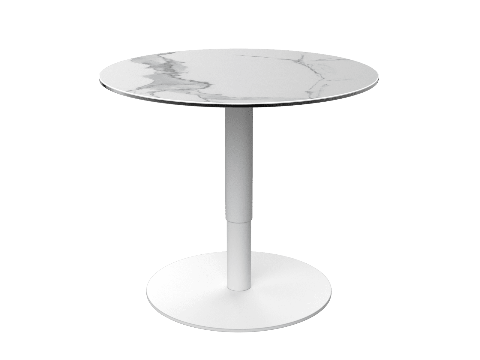 Découvrez notre table basse Orlando Lift, une création élégante et minimaliste signée Akante. Cette table basse est dotée d’une manette qui vous permet d’ajuster sa hauteur entre 45 et 65 cm. Son design épuré apportera du cachet à votre salon. Son plateau mesure 75 cm de diamètre, il est conçu en céramique Marbre Mat de 3 mm collée sur un verre de 6 mm. Son piétement possède des proportions équilibrées, il est en acier laqué blanc.