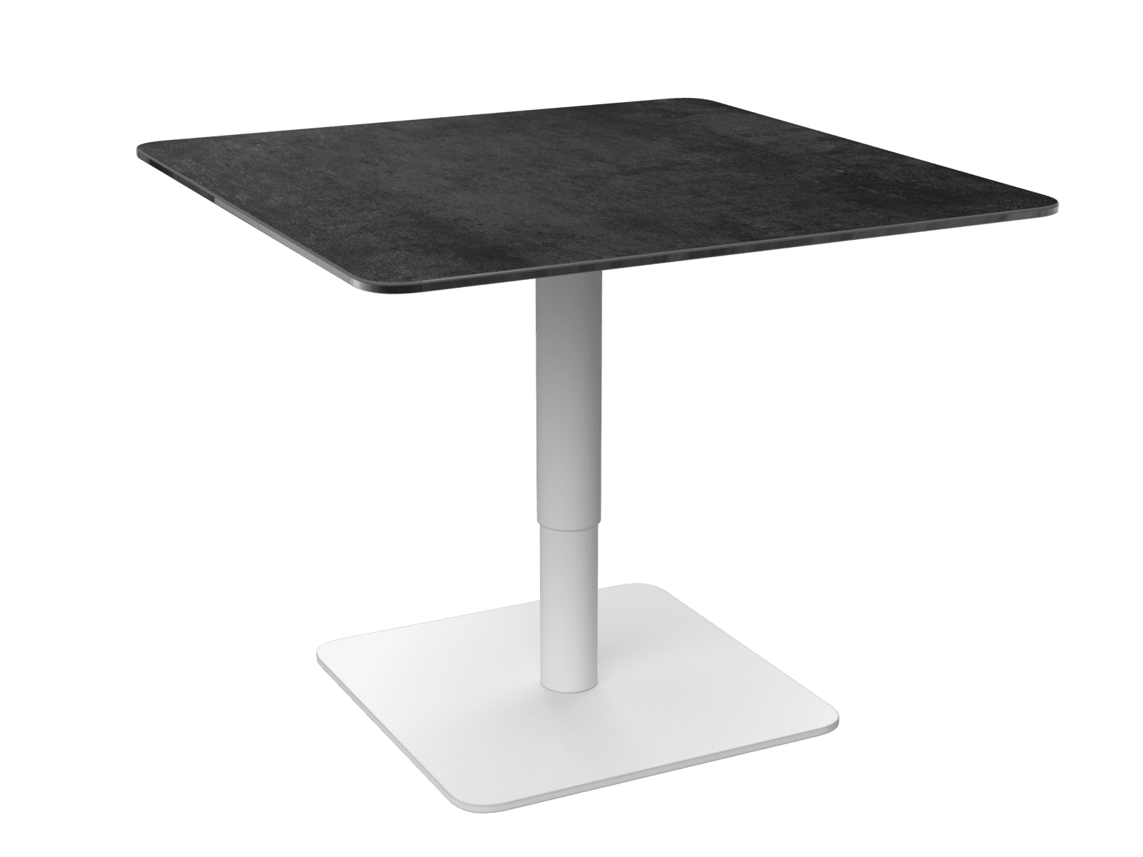 Découvrez Orlando Lift une table basse originale et pratique. Dotée d’un mécanisme, sa hauteur varie entre 45 et 65 cm. Son plateau carré mesure 80 x 80 cm, il est conçu en céramique Titane de 3 mm collée sur un verre de 6 mm. Son piétement est en acier laqué blanc pour ajouter une touche de modernité.