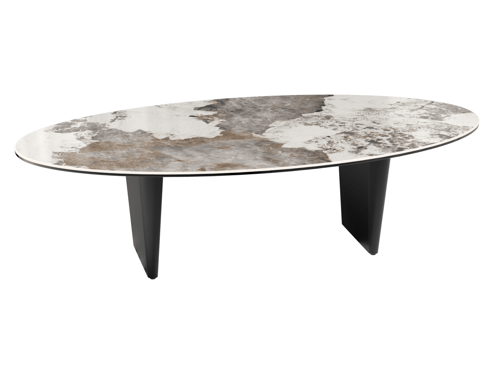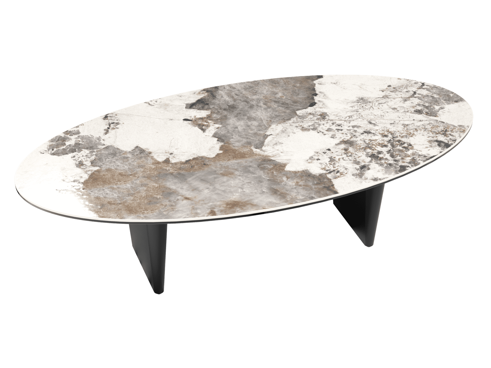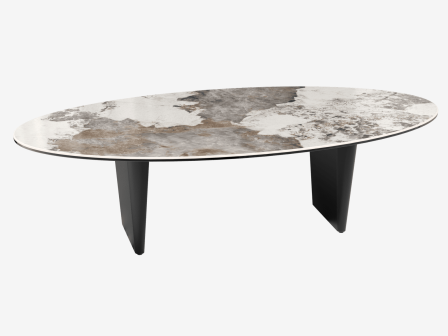 Adoptez la table basse Goliath dans votre salon, sa forme ovale favorise une ambiance conviviale. Son plateau est composé de 6 mm de céramique sur 8 mm de verre, pour une meilleure résistance. Cette table basse mesure 140 cm de longueur, 70 cm de largeur et 38 cm de hauteur. Son piètement affiné en acier laqué noir mat apporte un bel équilibre à sa structure. La découpe de la céramique Marbre Calcatta donne naissance à une pièce unique ; vous ne retrouverez nulle part ailleurs deux tables basses Goliath identiques.