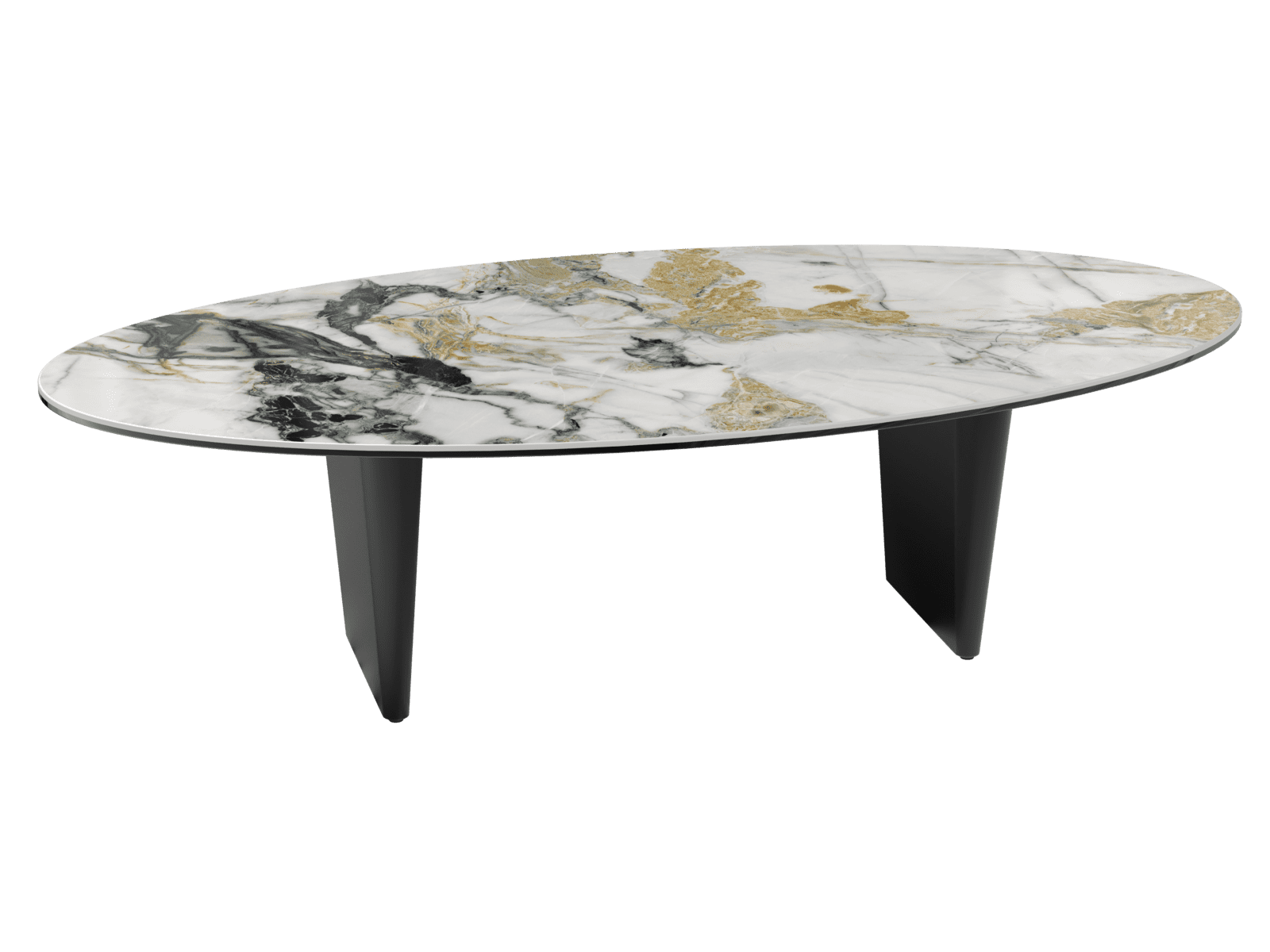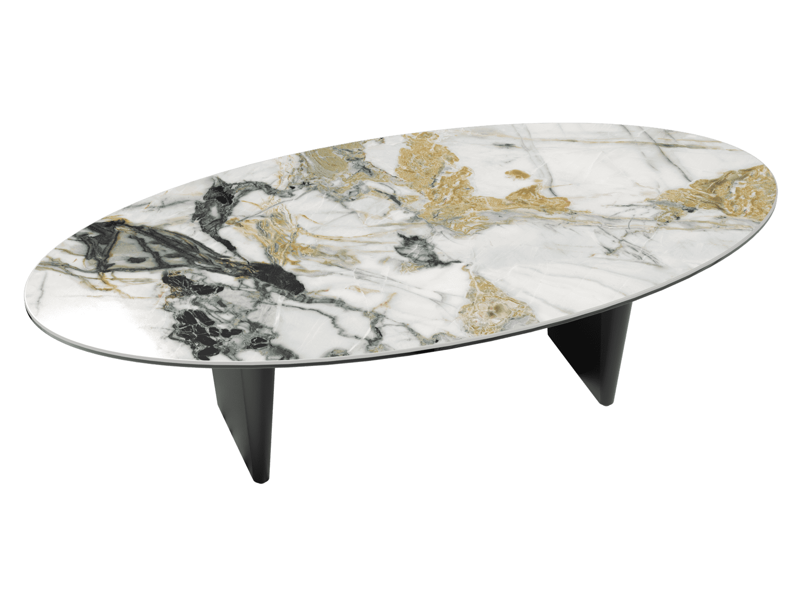 EXCLUSIVITÉ DU RÉSEAU CHATEAU D'AX. La table basse Goliath est la pièce idéale à avoir dans son salon. Parfaite pour les grands espaces, son large plateau mesure 140 cm de longueur sur 70 cm de largeur. Disponible en céramique Marbre Doro d’une épaisseur de 6 mm soigneusement collée à un verre de 8 mm, cette table basse est soutenue par son piètement affiné en acier laqué noir mat de 38 cm de hauteur. Sa surface lisse est facile à nettoyer. Recevez un grand nombre de convives grâce à la table basse Goliath.