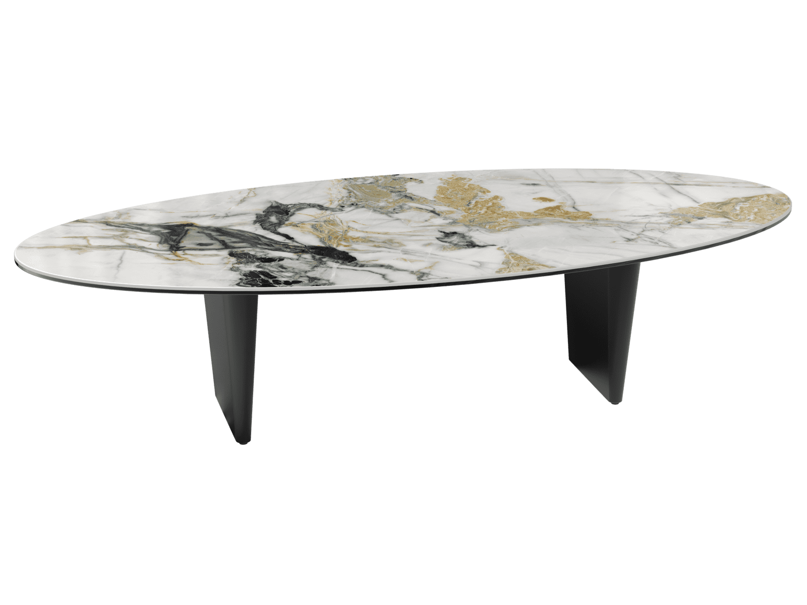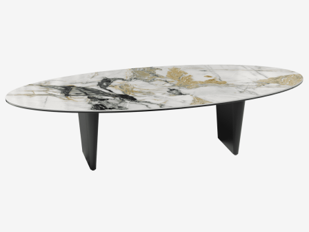 Intégrez la table basse Goliath dans votre salon pour une ambiance chaleureuse. Sa forme ovale favorise la convivialité. Son plateau en céramique Marbre Doro d’une épaisseur de 6 mm est soigneusement collé sur un verre de 8 mm. Son piètement en acier laqué noir mat ajoute à votre salon un style moderne et contemporain. La table mesure 160 cm de longueur sur 70 cm de largeur et possède une hauteur de 38 cm. Personnalisez votre intérieur en y associant la table de repas de la même collection.