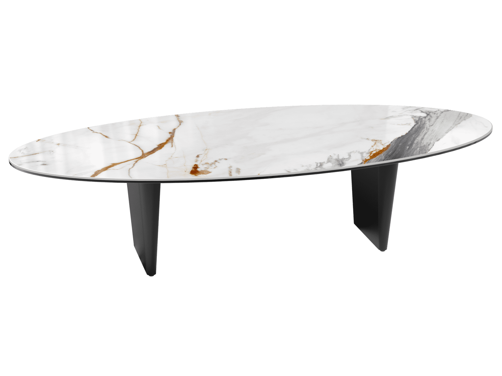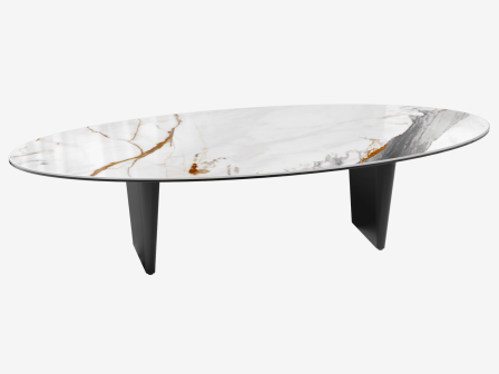 Apportez une ambiance accueillante à votre salon grâce à la table basse Goliath. Sa forme ovale est propice à la convivialité, cette table possède un plateau en céramique Marbre Fiorentino de 6 mm d'épaisseur et est collé sur un verre de 8 mm. Son piètement en acier laqué noir mat apporte une touche moderne et contemporaine à votre espace. Elle mesure 160 cm de long, 70 cm de large et 38 cm de hauteur. Akante vous offre la possibilité de personnaliser votre espace en y intégrant la table de repas de la même collection pour une belle harmonie.