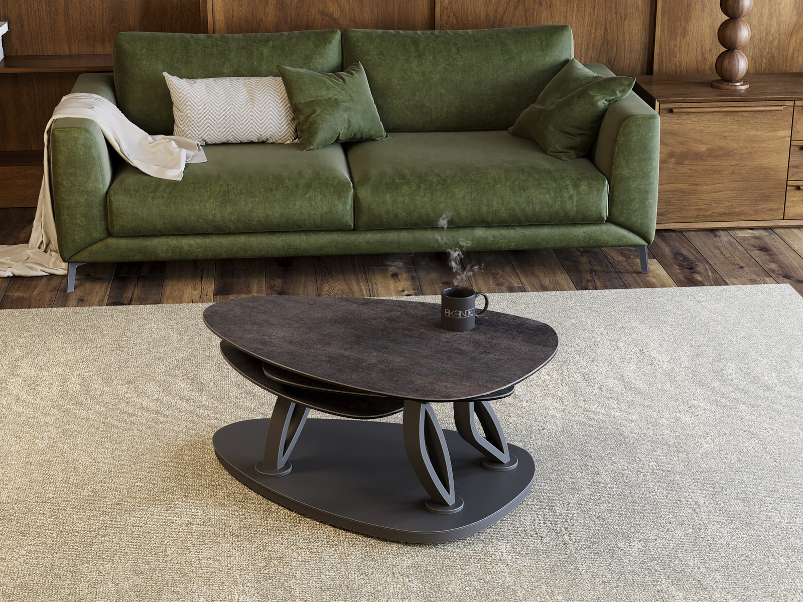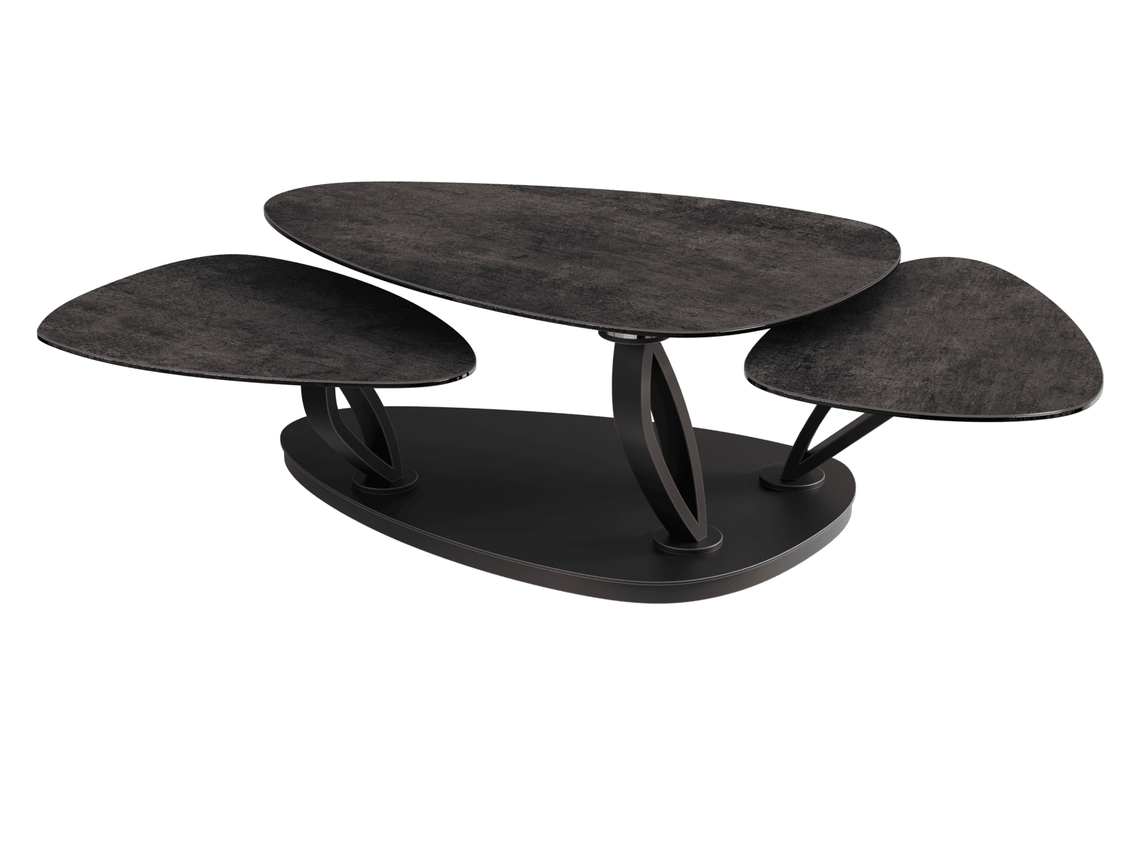 Osez l’originalité avec la table basse Magnolias en céramique Acier. Cette table basse modulable offre un équilibre parfait entre douceur et modernité. Lorsque ses trois plateaux sont déployés, cette table basse mesure 155 x 71 cm. Son piétement ajouré en acier laqué noir mat lui confère un design contemporain et unique. Ses trois plateaux sont conçus en céramique de 3 mm, collée sur 6 mm de verre.