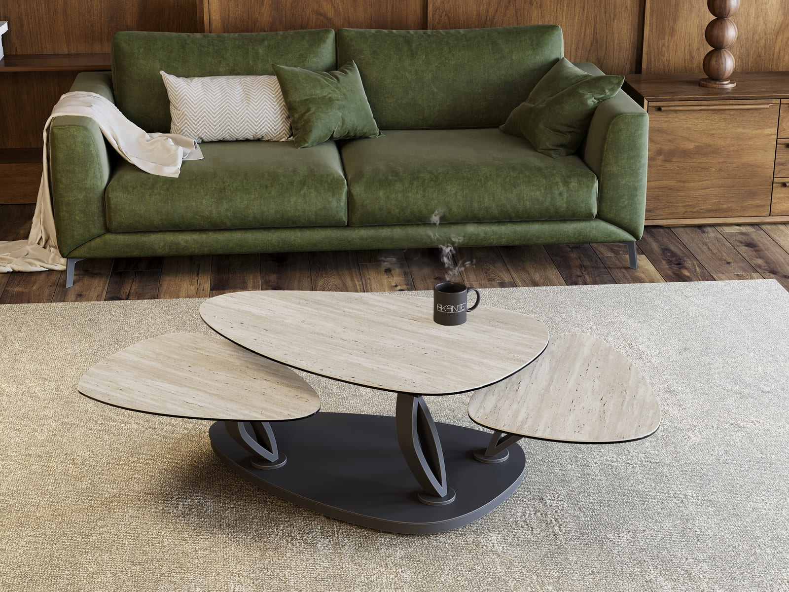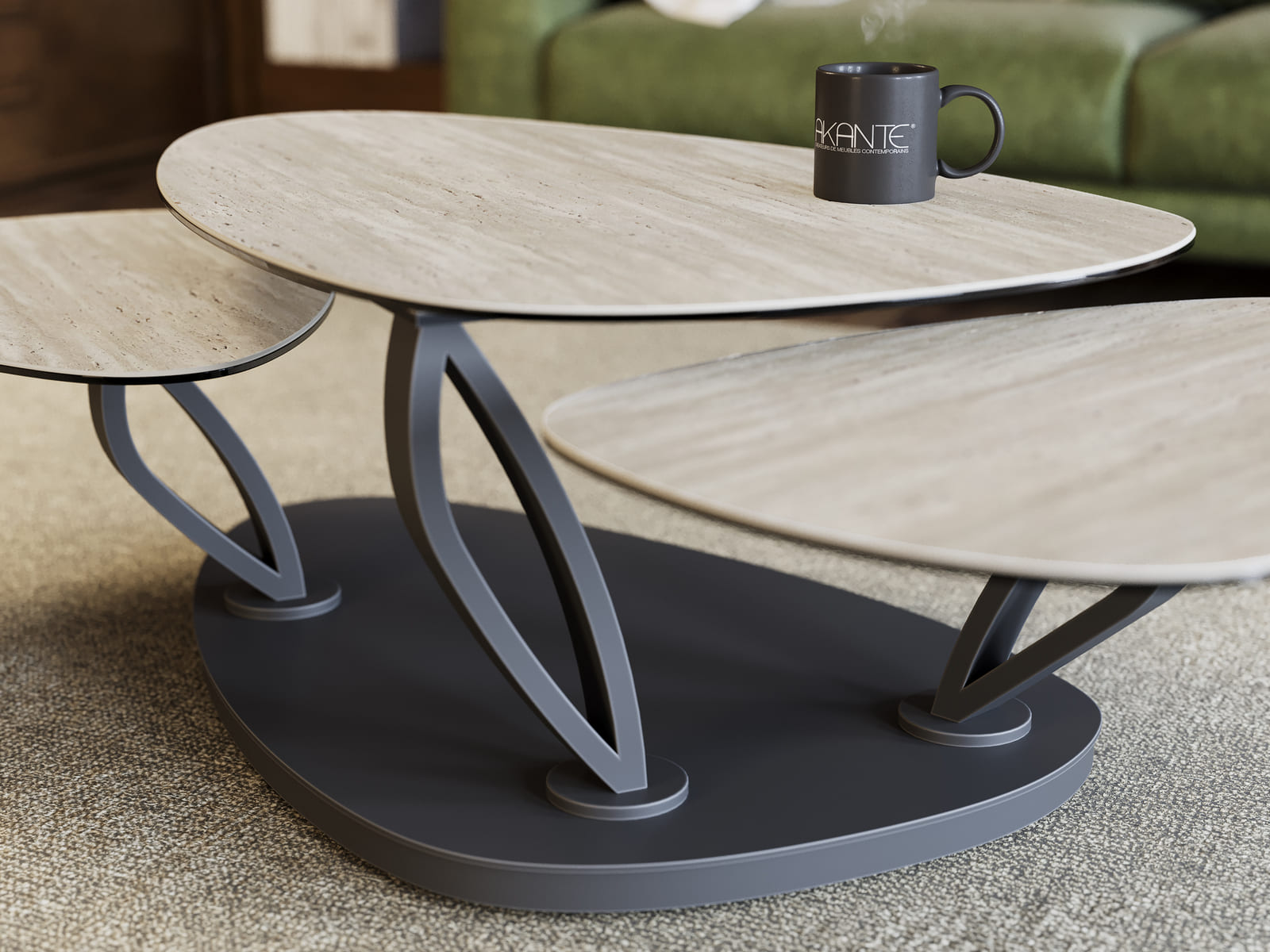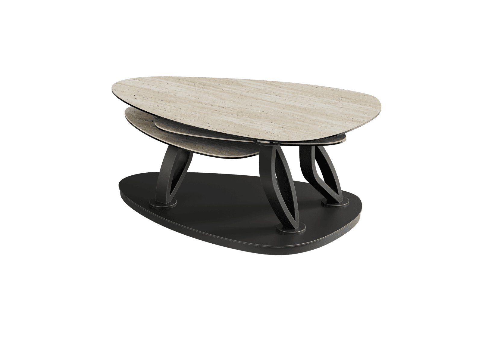 Magnolias est une table basse élégante, contemporaine et pratique. En effet, elle est dotée de trois plateaux pivotants qui lui permettent d’atteindre 1,55 mètre de longueur sur 1 mètre de largeur. Ses plateaux sont conçus en céramique Travertin de 3 mm, collée sur 6 mm de verre. L’aspect doux et le style authentique du Travertin apporte un côté chaleureux à son design. Magnolias est dotée d’une structure ajourée, conçue en acier laqué noir mat. Ses roulettes dissimulées sous sa base, lui permettent un déplacement simplifié. Ce modèle mesure : 100 x 65 cm lorsque ses plateaux sont refermés et mesure 155 x 71 cm lorsque ses plateaux sont ouverts.