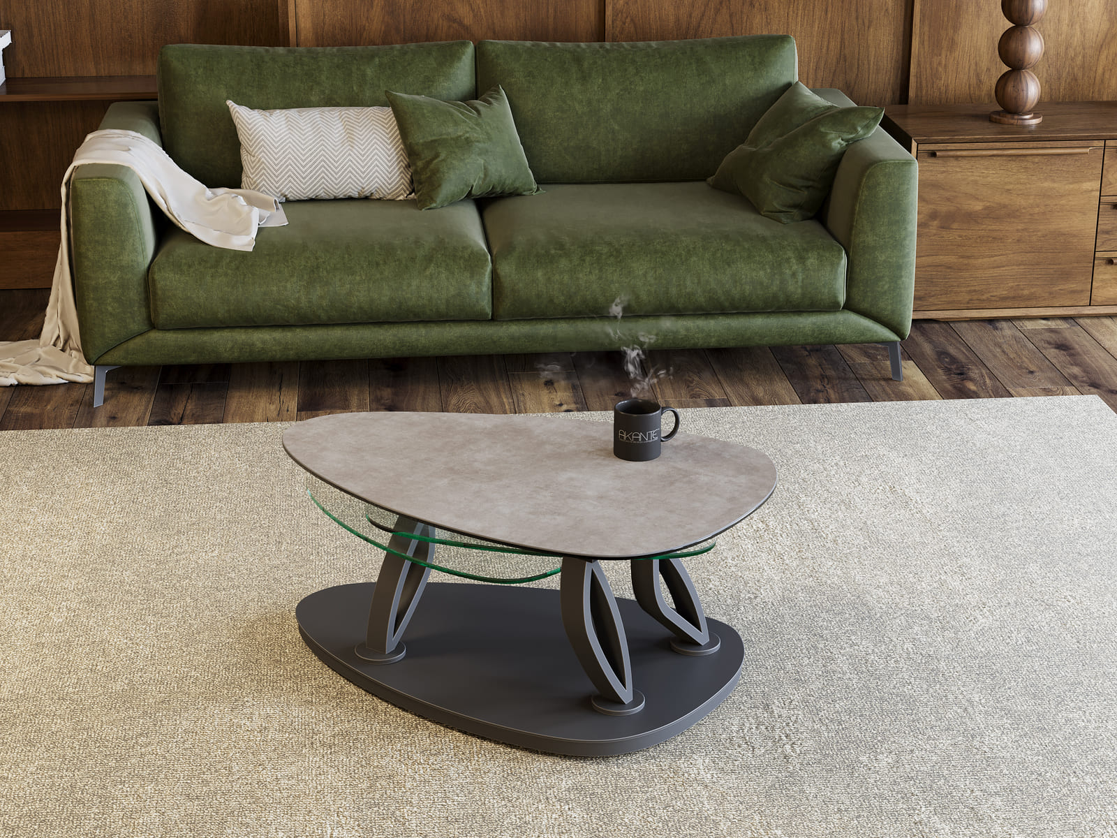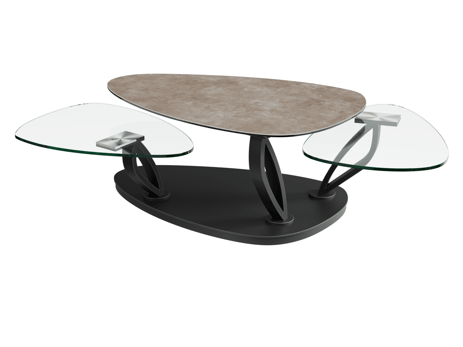 Accueillez vos convives avec raffinement grâce à la table basse Magnolia. Cette table basse est dotée de trois plateaux pivotants, ce qui vous permet d’ajuster sa surface jusqu’à 155 x 71 cm. Elégante et distinguée sa forme de pétale ajoute une touche rétro-contemporaine dans un intérieur. Son plateau principal est conçu en céramique Argile de 3 mm, collée sur un verre de 6 mm. Ses deux plateaux inférieurs sont en verre trempé de 10 mm pour laisser entrevoir la lumière. Toute la structure est en acier laqué noir mat, ses détails ajourés subliment sa silhouette. Ce modèle est doté de roulettes pour faciliter son déplacement.