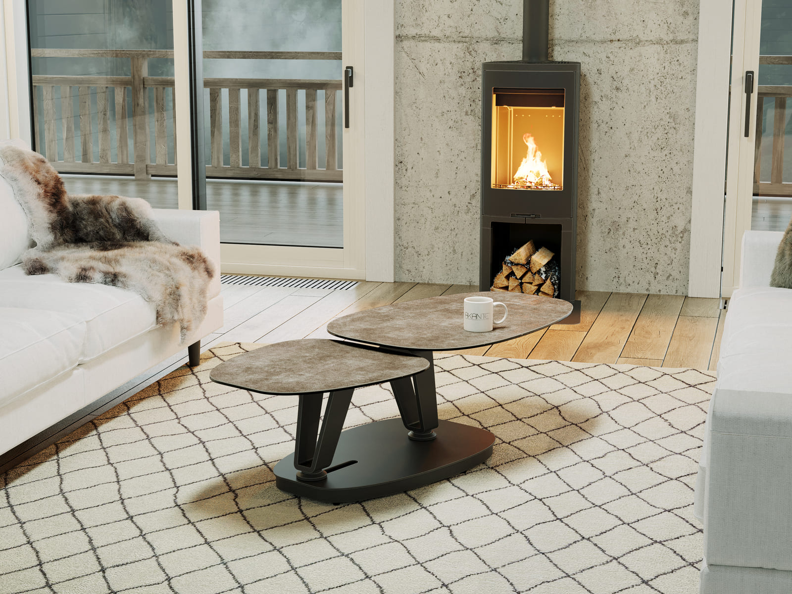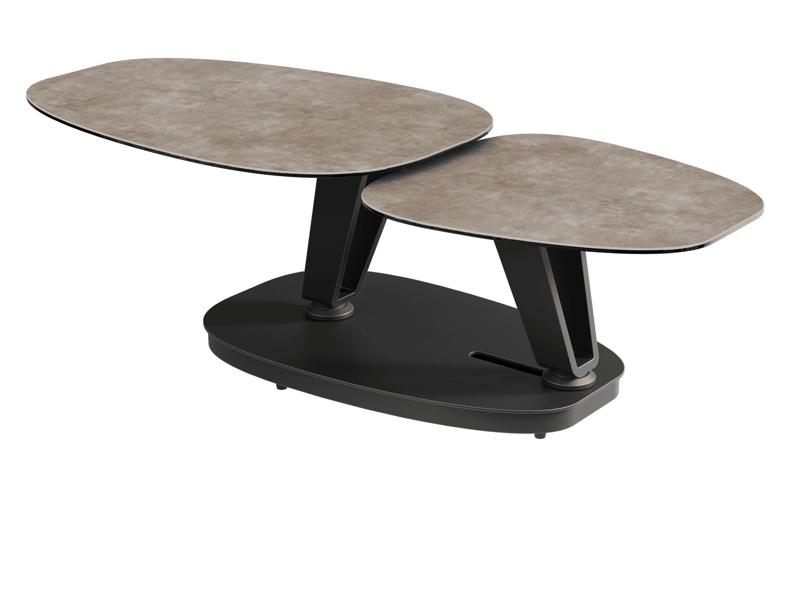 Découvrez Lotus, une nouvelle création signée Akante. Cette table basse innovante est dotée d’un nouveau mécanisme synchronisé à deux plateaux en mouvement. Le premier pivote sur lui-même, tandis que le second coulisse grâce à une glissière intégrée. Fermée, la table mesure 90 x 60 x 42 cm. Une fois ouverte, elle atteint 148,5 x 60 x 42 cm. Le modèle Lotus est réalisé en céramique Argile de 3 mm, collée sur un verre de 6 mm. Sa structure est entièrement conçue en acier laqué noir mat.