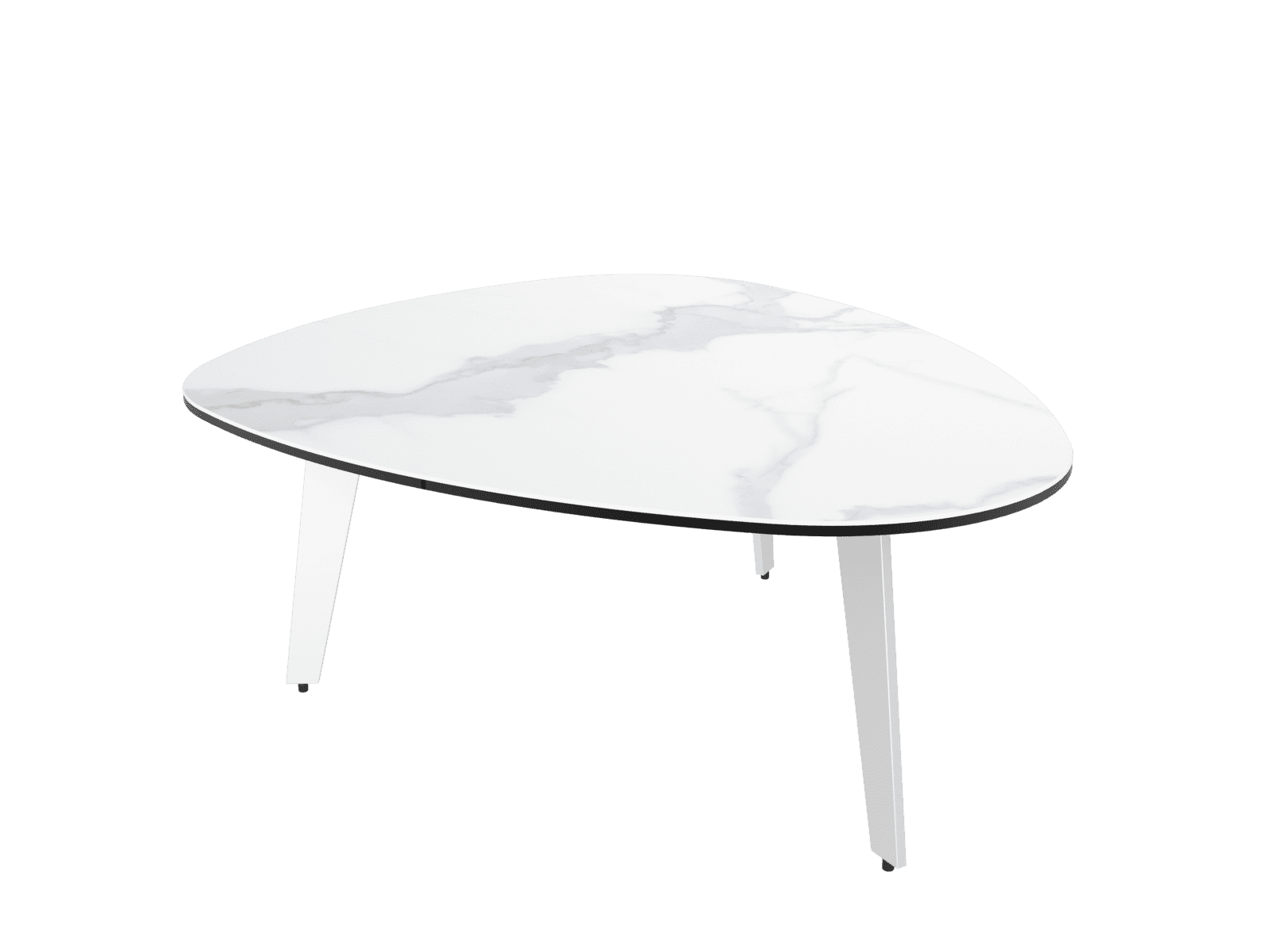 Fraîcheur et luminosité, c’est ce que promet la table basse Galet Outdoor. L’association de la céramique en marbre mat et des pieds en aluminium blanc procure une belle harmonie, qui illuminera votre extérieur. Ce total look clair se mariera parfaitement avec le reste de votre décoration extérieure. Optez pour une ambiance 100 % lumineuse, ou jouez avec le contraste de la céramique marbre mat de votre table basse. Cette céramique mesure 3 mm d’épaisseur et est collée à un vitrage de 6 mm.