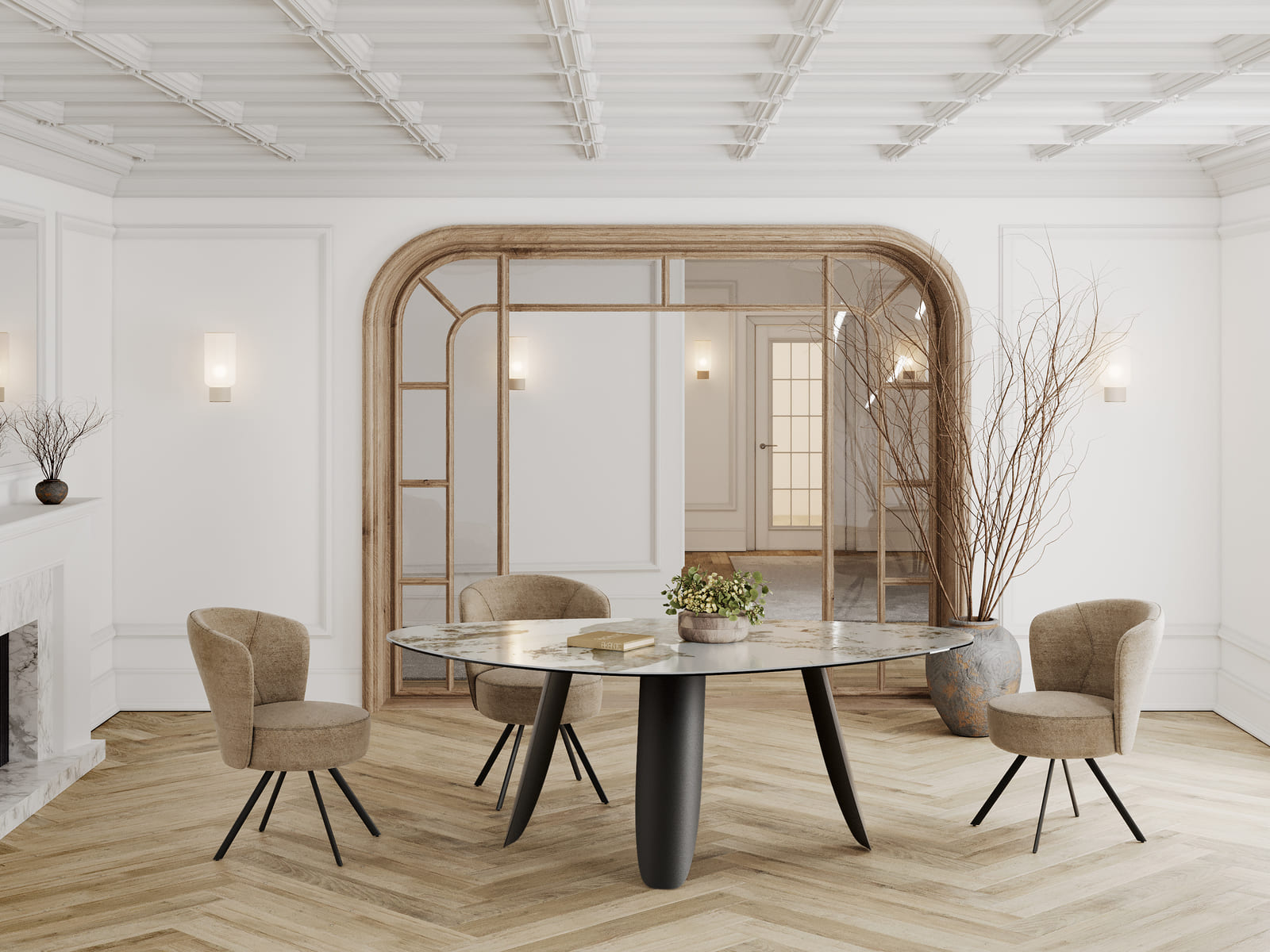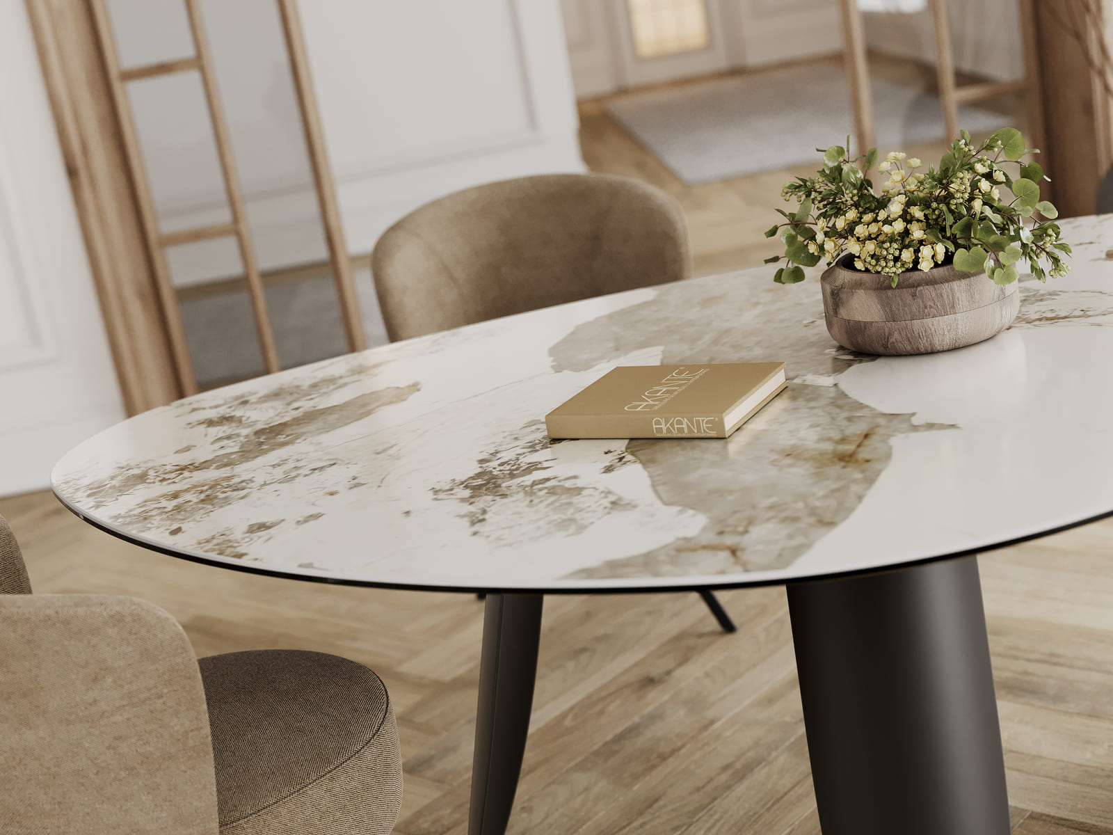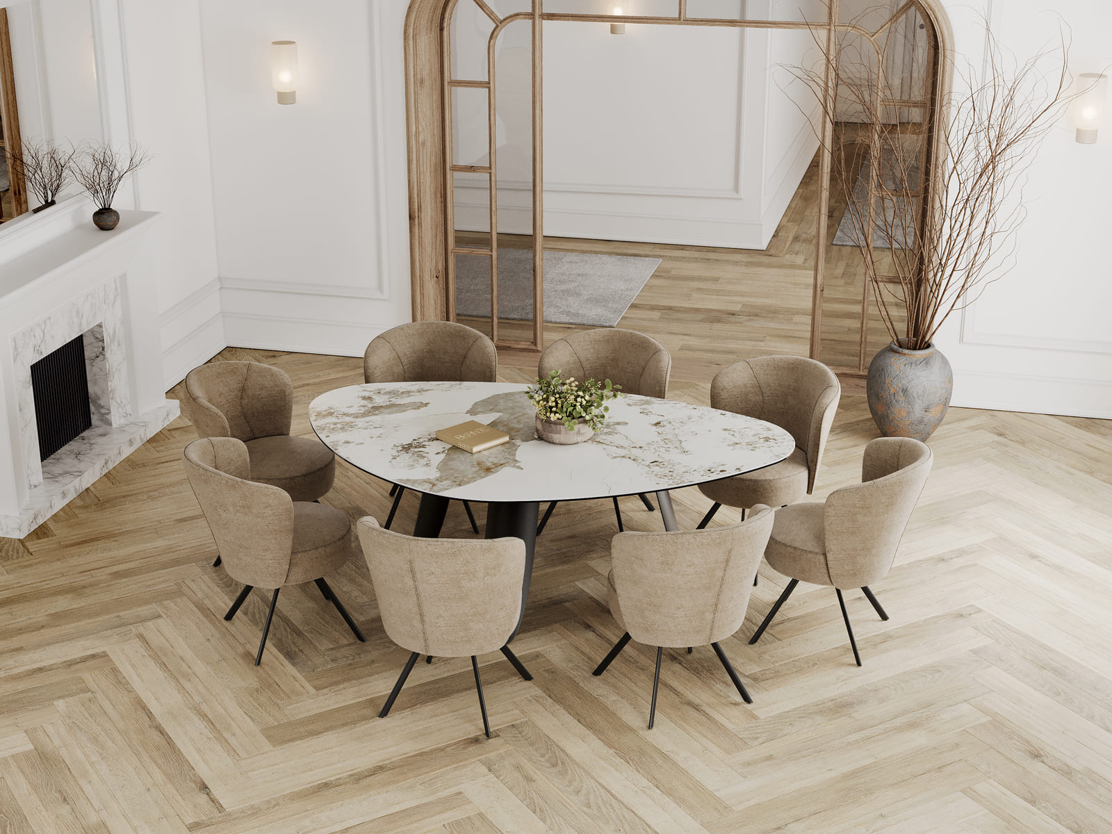 À tous les fervents de formes organiques, découvrez Bonifacio, la nouvelle table Akante au plateau tendance. Sa forme géométrique apporte une touche unique et conviviale à cette table de repas. Elle mesure 2,10 m de longueur et 1,30 m de largeur. Elle vous est présentée en céramique Marbre Calcatta de 6 mm, collée sur un verre de 8 mm. Son piétement pétale ajoute une touche de raffinement et de modernité à l’ensemble de sa structure. Accueillez entre 6 et 8 personnes en l’associant à notre élégante chaise Vienna.