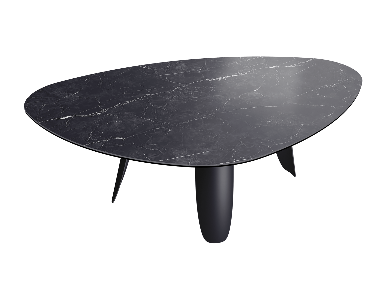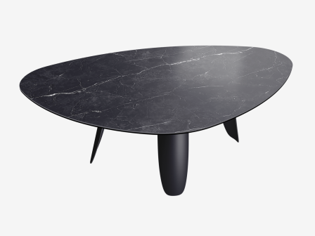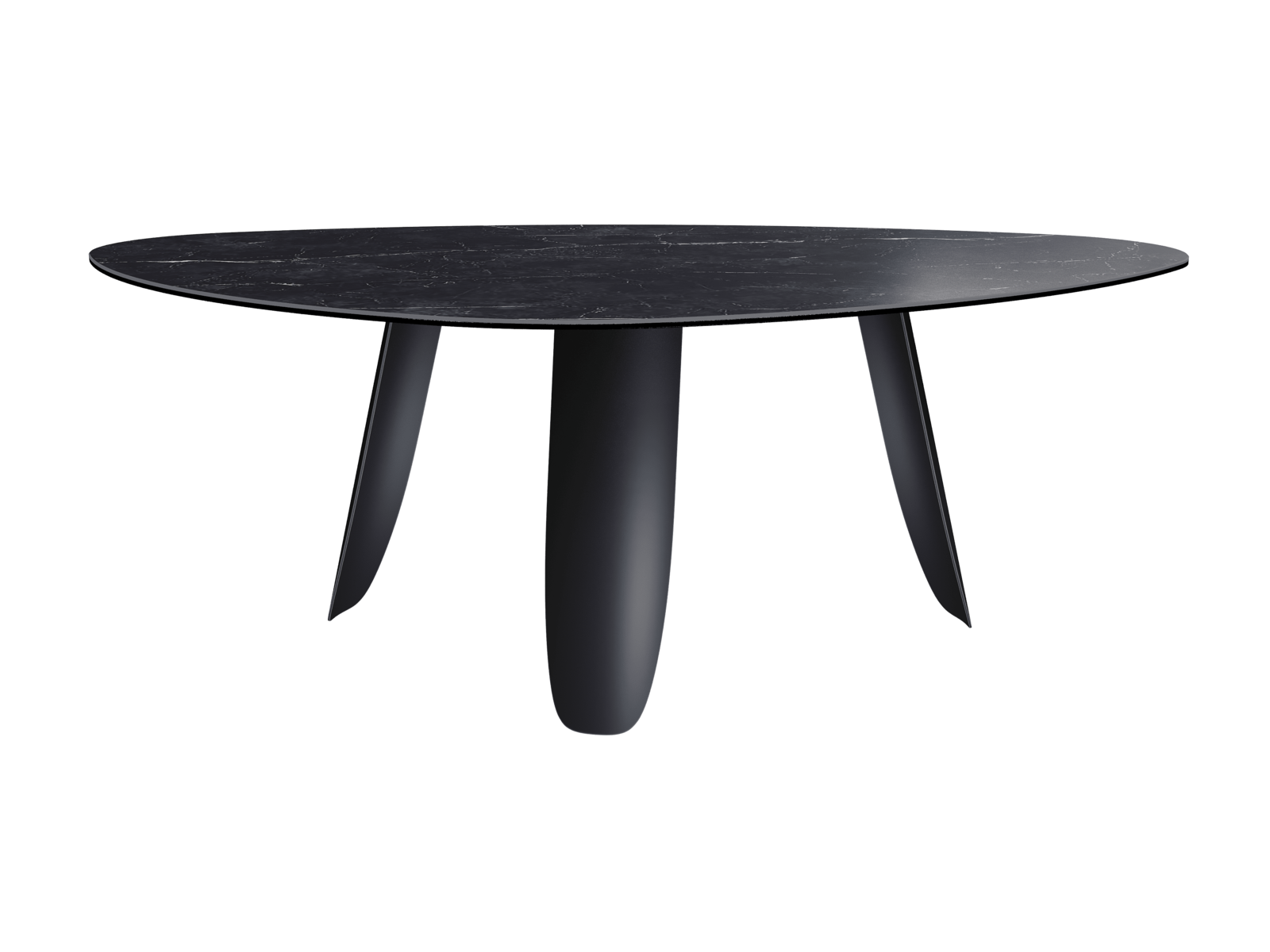 Offrez à votre salle à manger une ambiance à la fois moderne et chaleureuse avec la table de repas Bonifacio. Sa forme organique et géométrique est pensée pour une convivialité optimale. Son plateau mesure 2,10 m sur 1,30 m. Fabriqué en céramique Marbre Marquina de 6 mm, collée sur un verre de 8 mm. Son piétement pétale apporte une dimension aérienne et contemporaine. Associez-la à la chaise Vienna pour accueillir entre 6 et 8 convives.