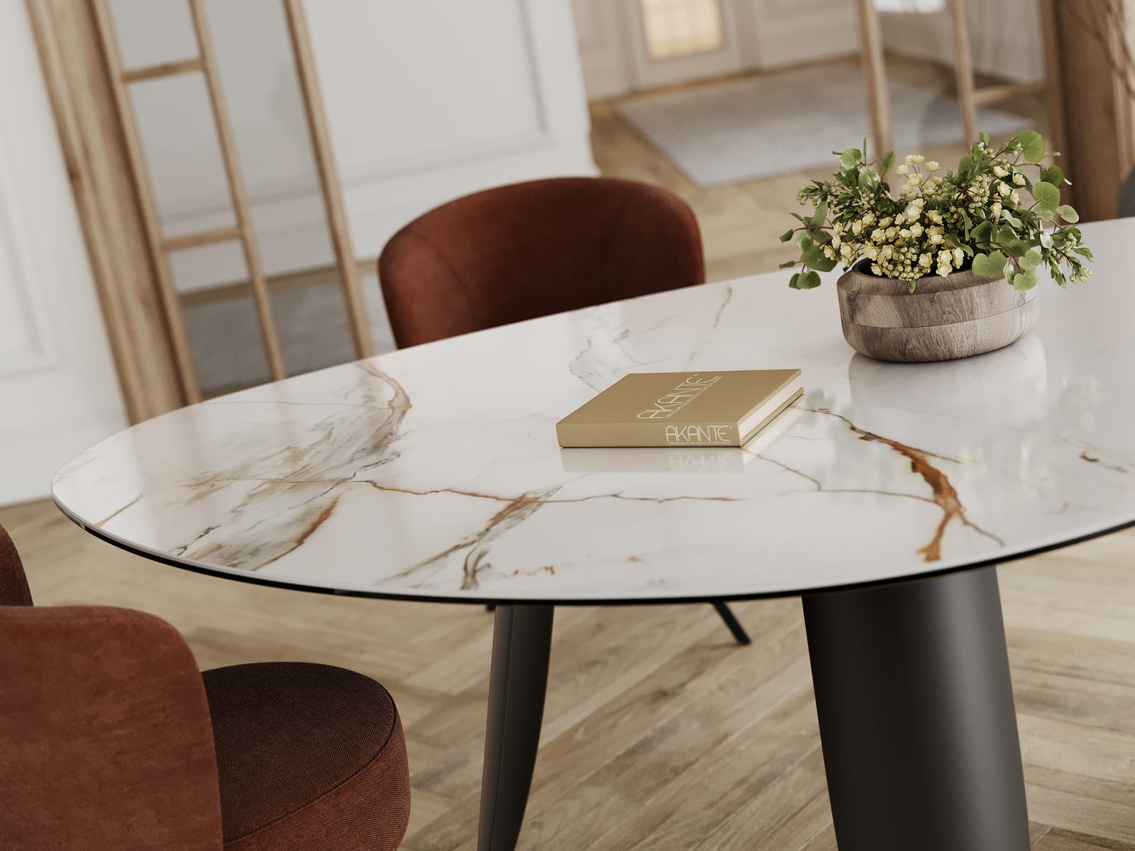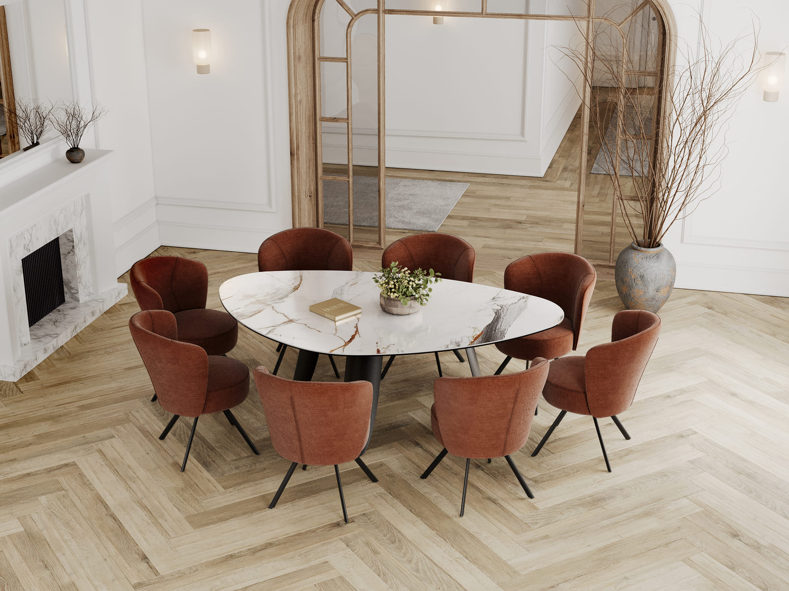 Sublimez votre espace repas avec la table Bonifacio, conçue pour ceux qui apprécient les lignes organiques et les matériaux nobles. Son plateau spacieux de 2,10 m sur 1,30 m, vous permet d’accueillir entre 6 et 8 convives. Il est conçu en céramique Marbre Fiorentino de 6 mm collée sur un verre de 8 mm. Son piétement pétale, finement dessiné, garantit une stabilité optimale tout en ajoutant une touche de légèreté.