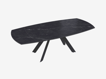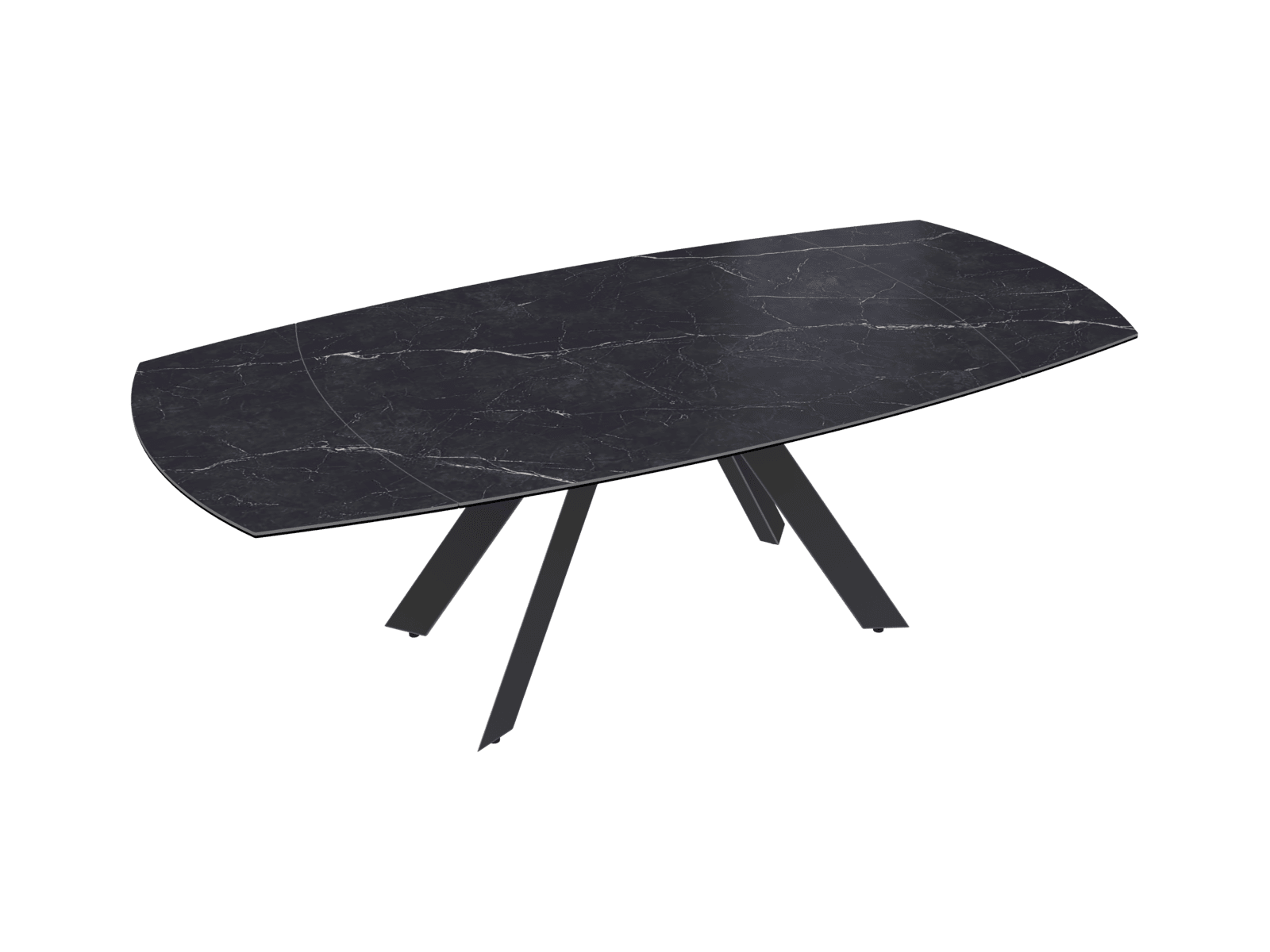 Avec son « total look black », la table de repas Missouri affiche un style contemporain. Son plateau en céramique Marbre Marquina de 6 mm est collé sur un verre de 8 mm. Grâce à ses deux rallonges latérales de 40 cm, elle passe de 1,50 m à 2,30 m de long, pour une largeur de 1,10 m. Son piétement longiligne en acier laqué noir mat souligne son design raffiné. La table Missouri peut accueillir 8 à 10 convives.